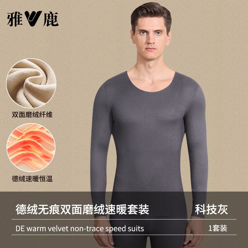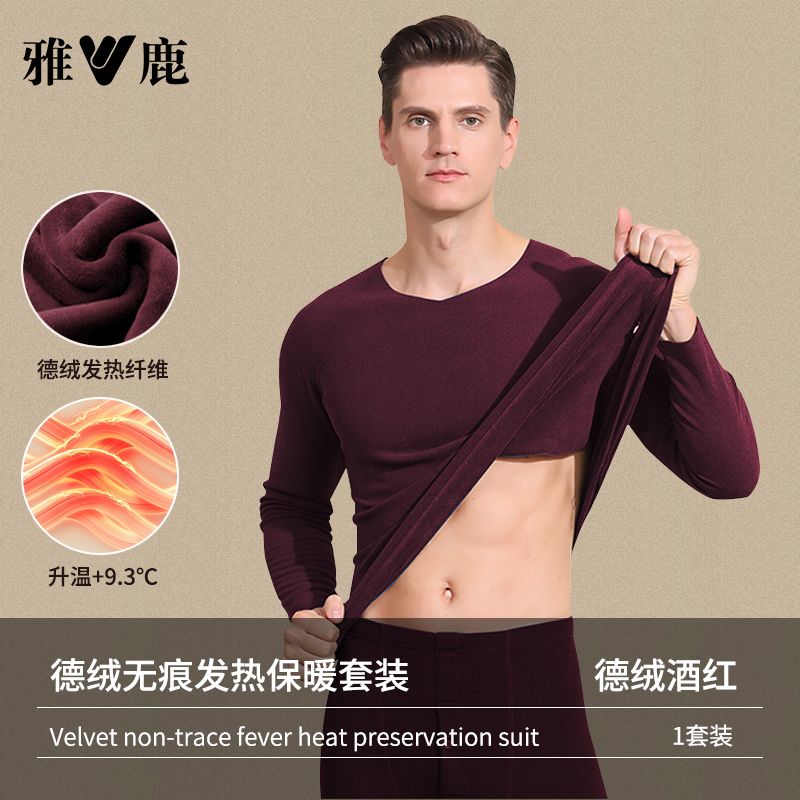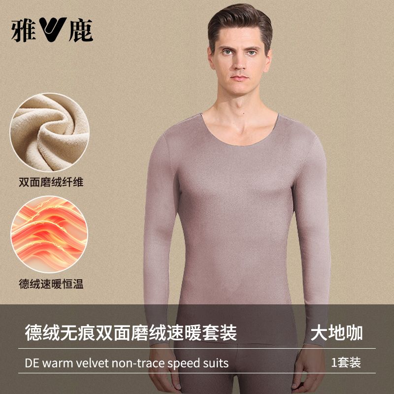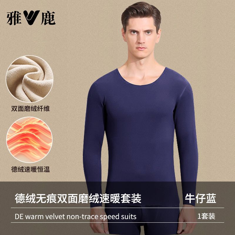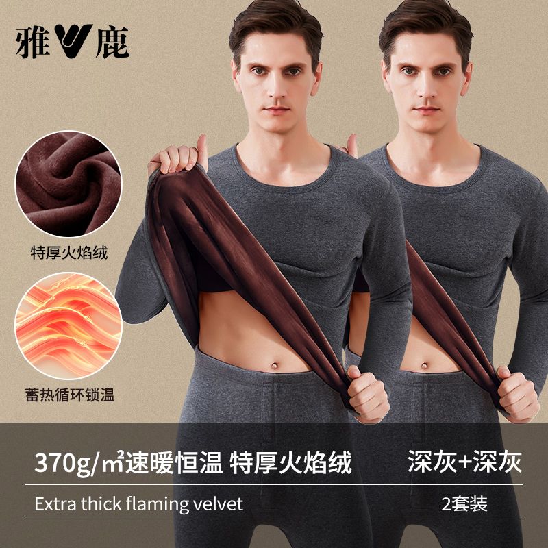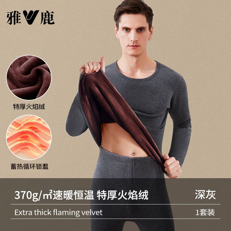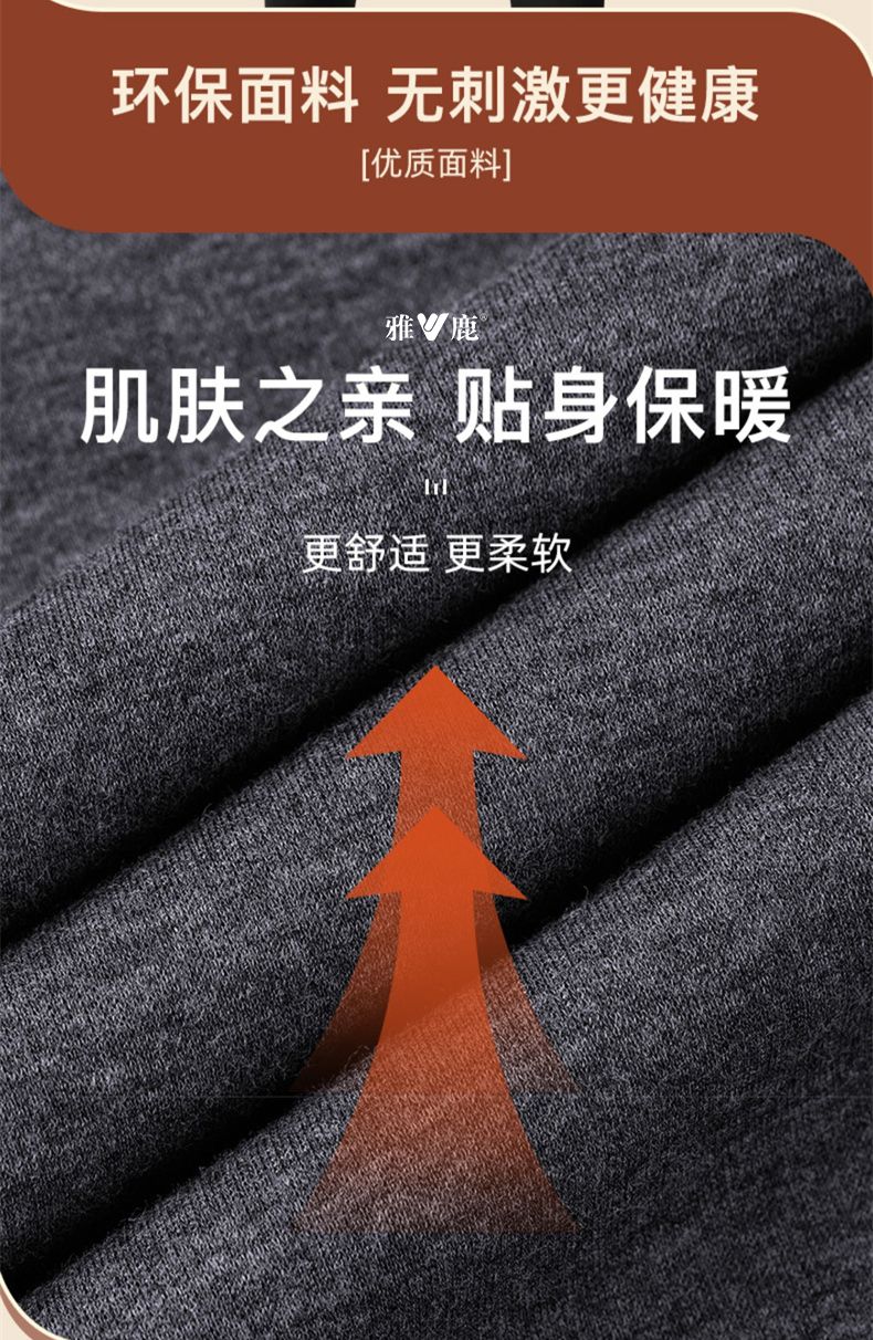 雅鹿保暖内衣男士加绒加厚套装秋衣秋裤冬天打底棉毛衫保暖衣男