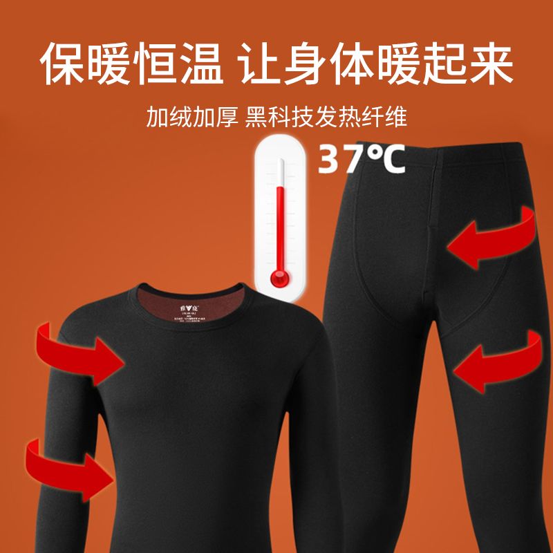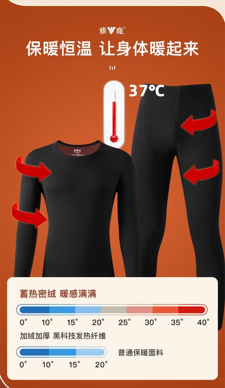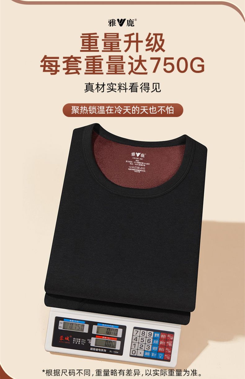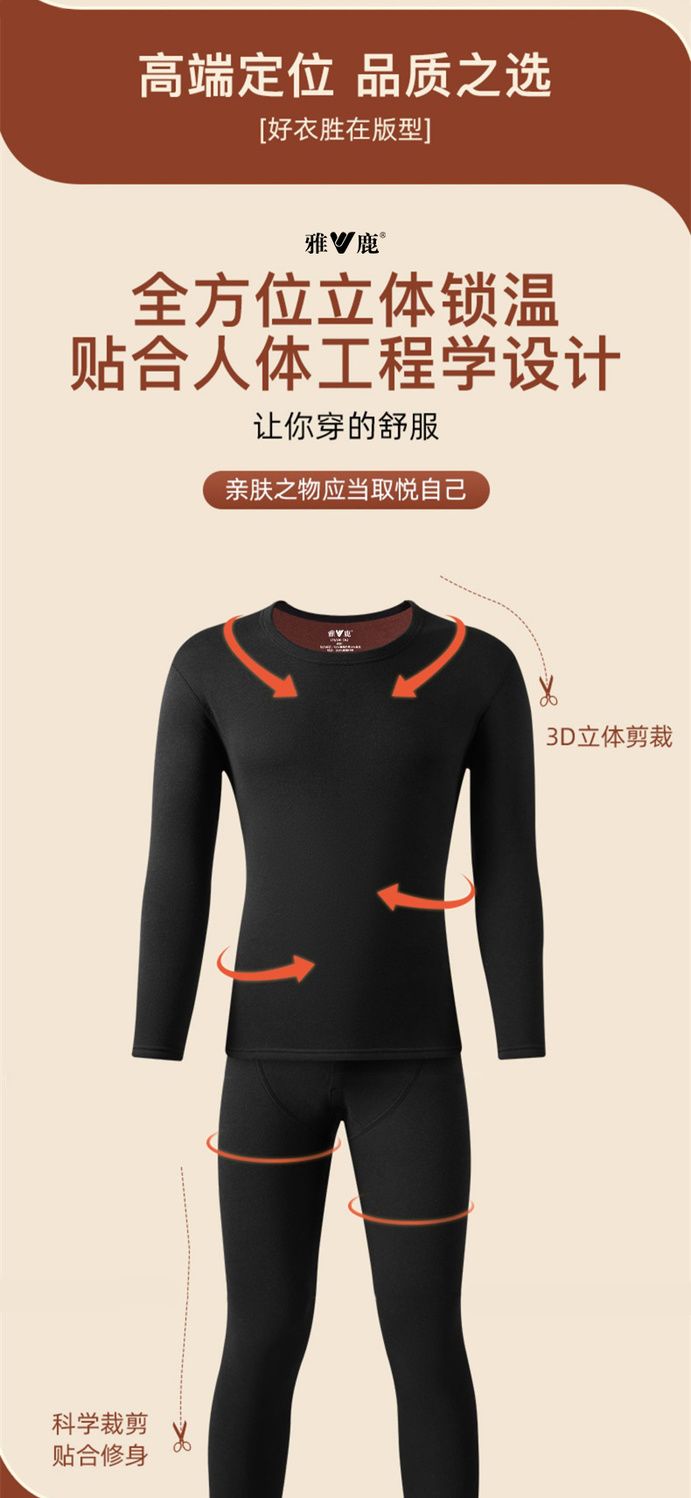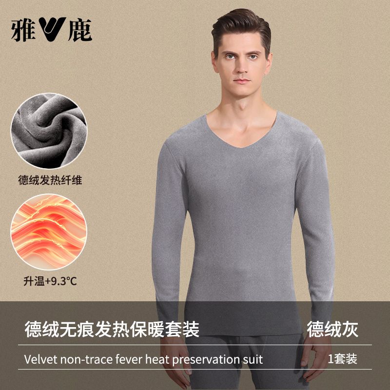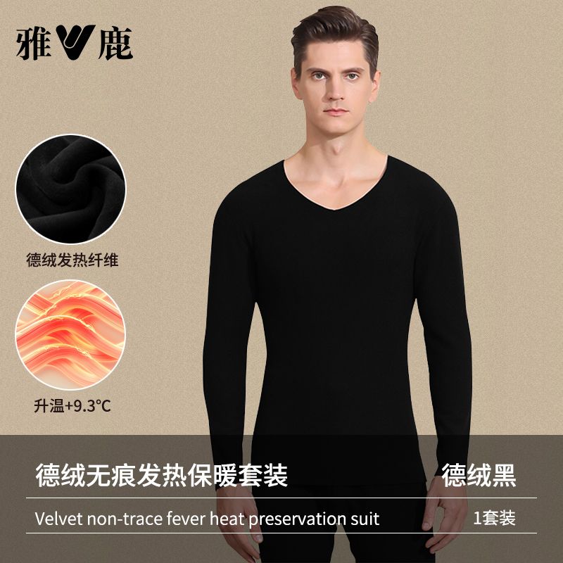 雅鹿保暖内衣男士加绒加厚套装秋衣秋裤冬天打底棉毛衫保暖衣男