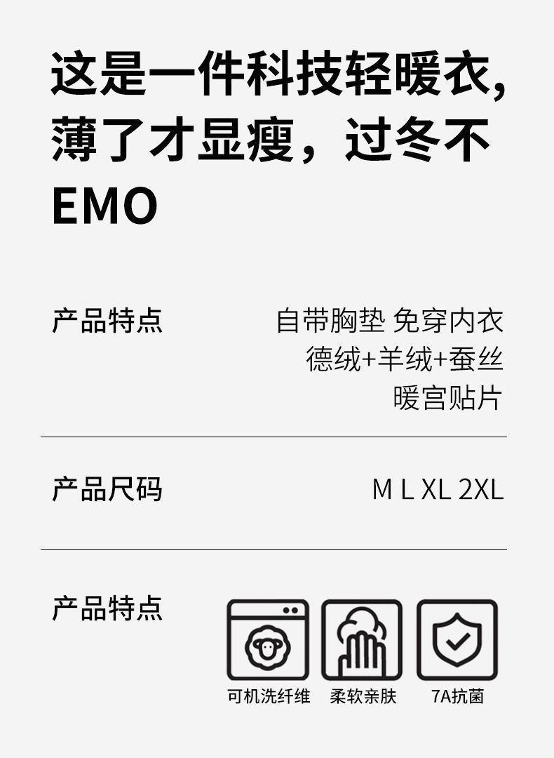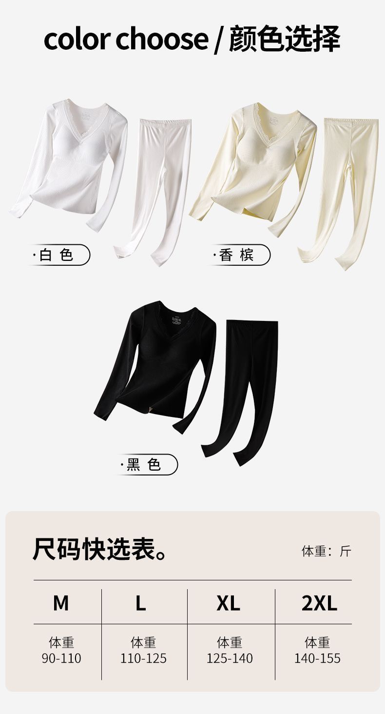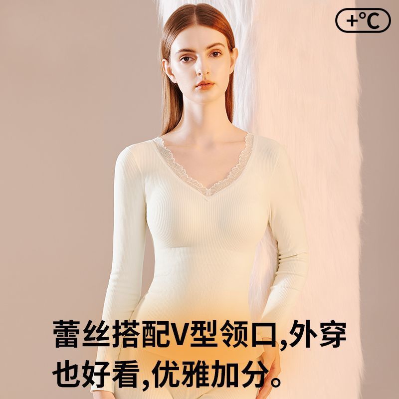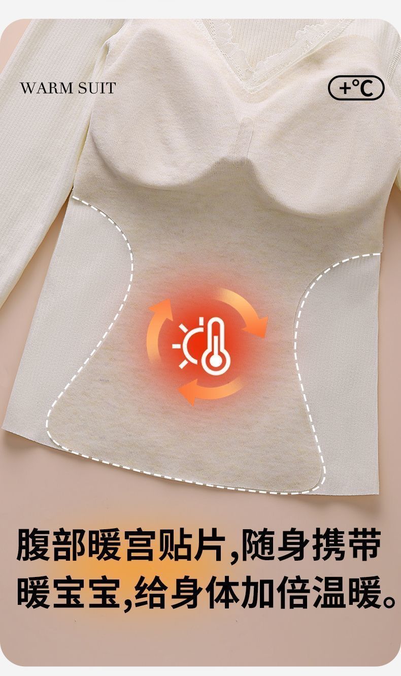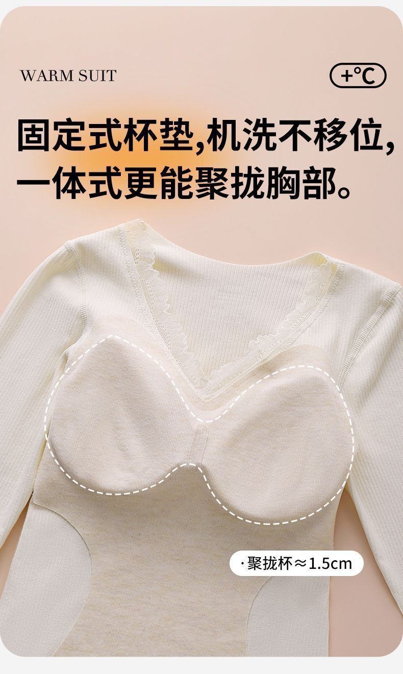 秋冬季保暖羊绒带胸垫套装女加绒秋衣时尚蚕丝打底衫新品热卖推荐