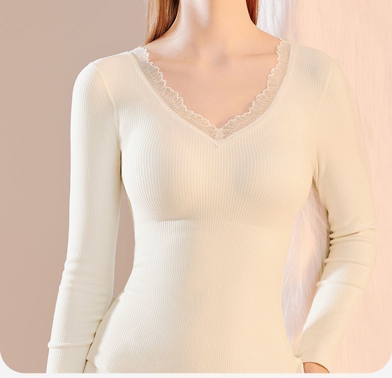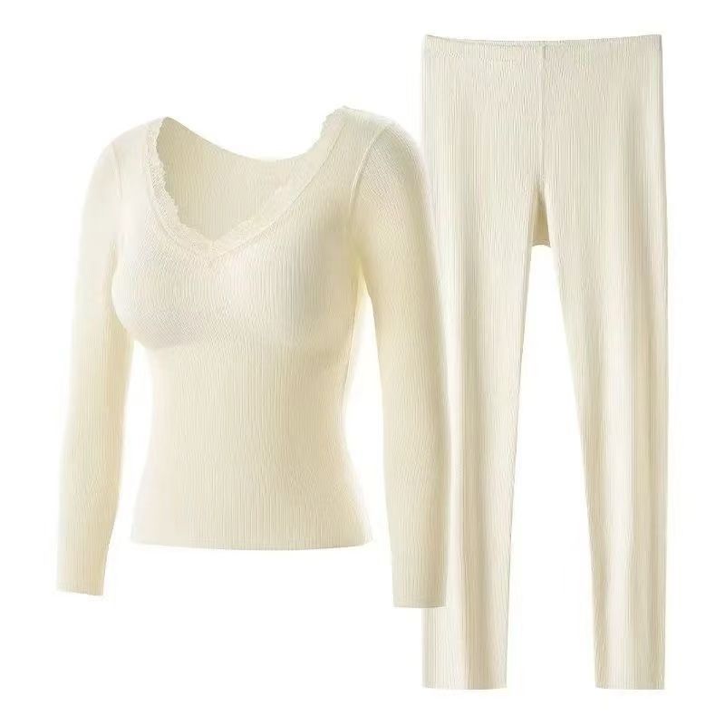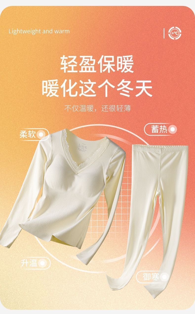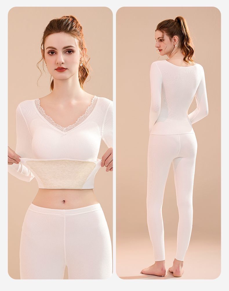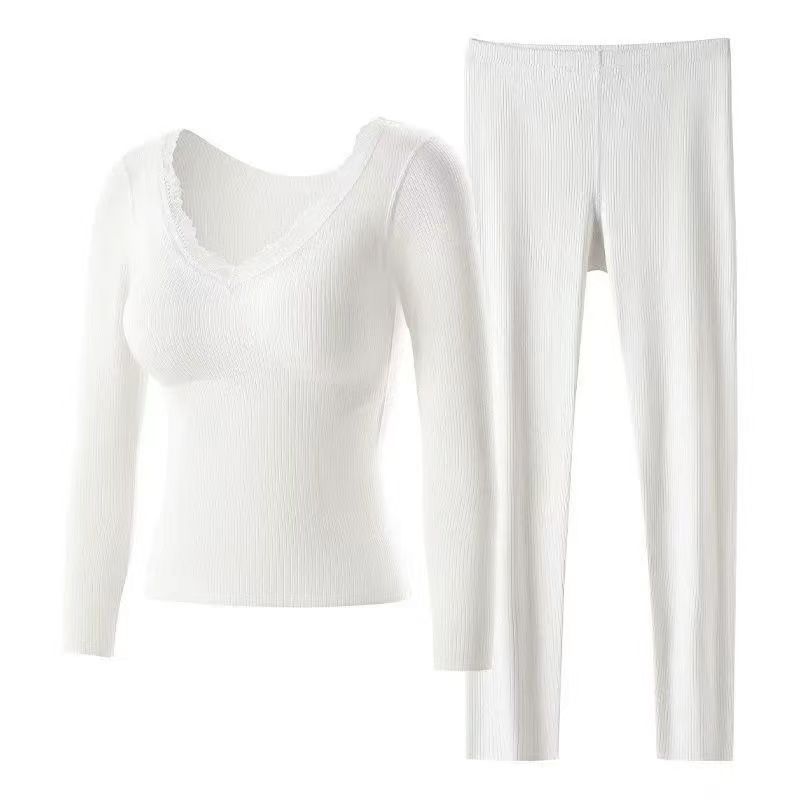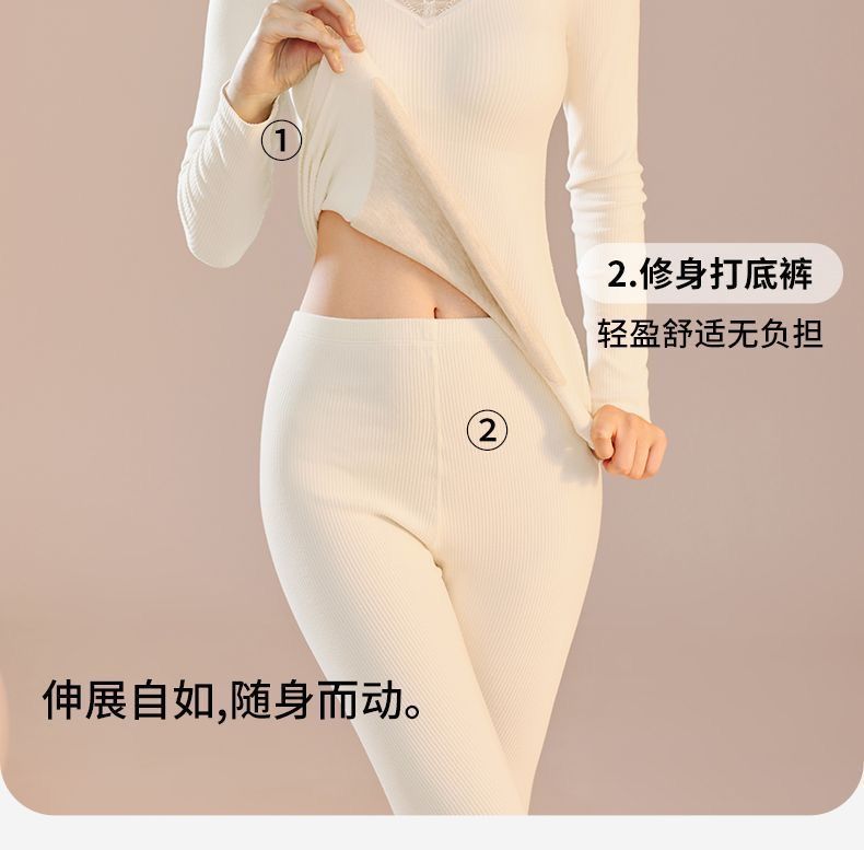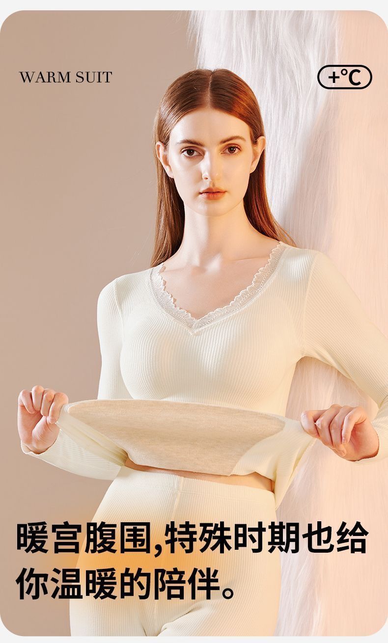 秋冬季保暖羊绒带胸垫套装女加绒秋衣时尚蚕丝打底衫新品热卖推荐
