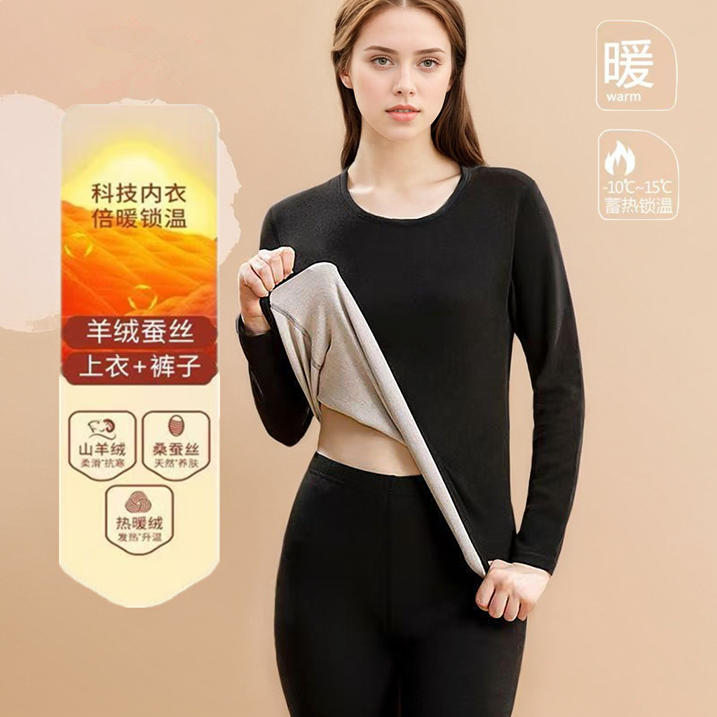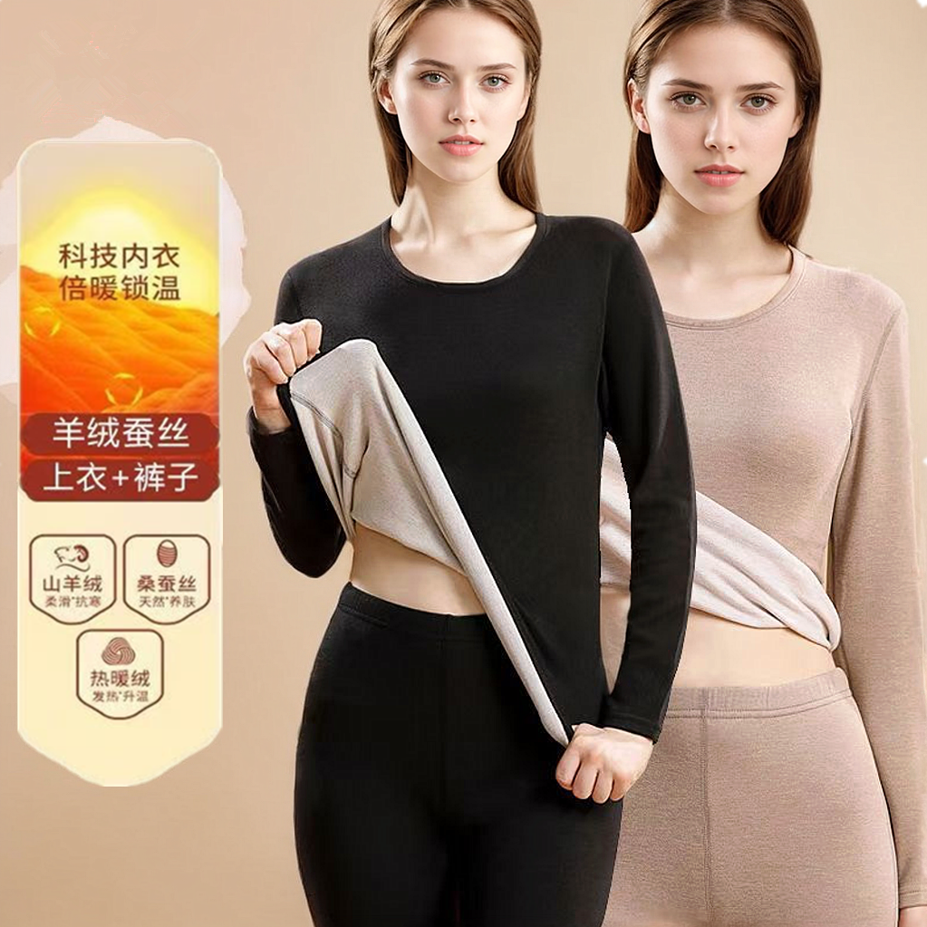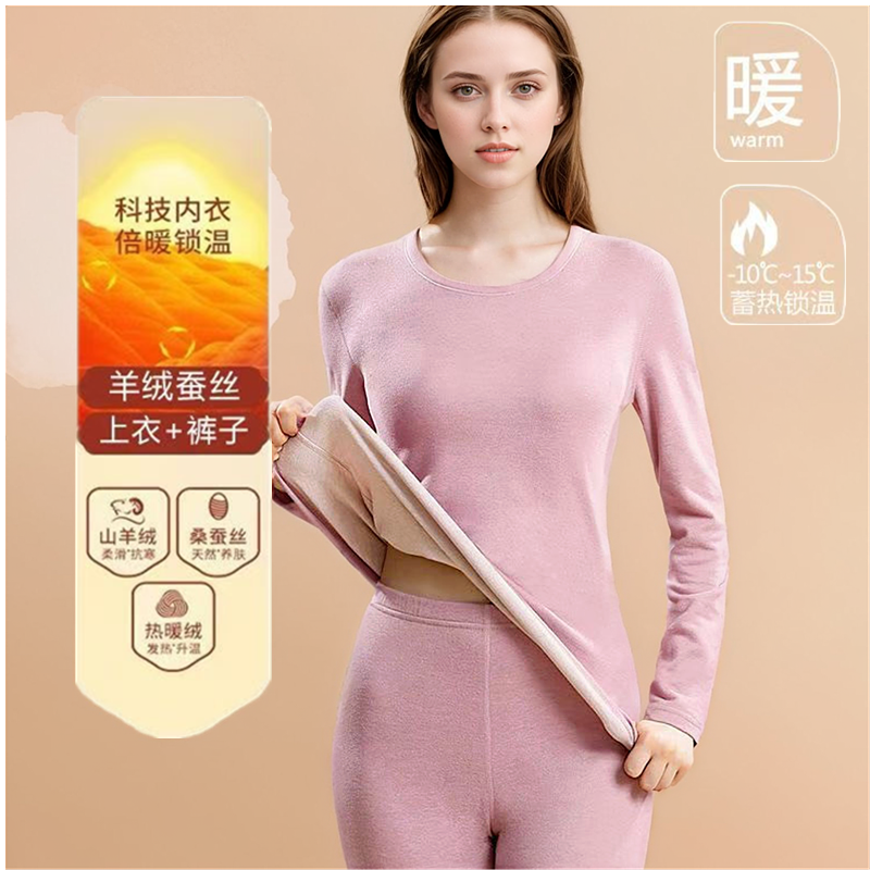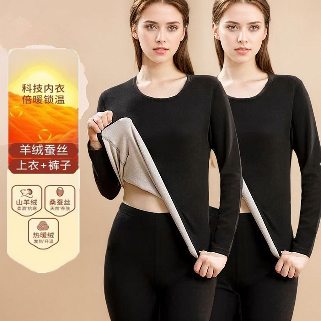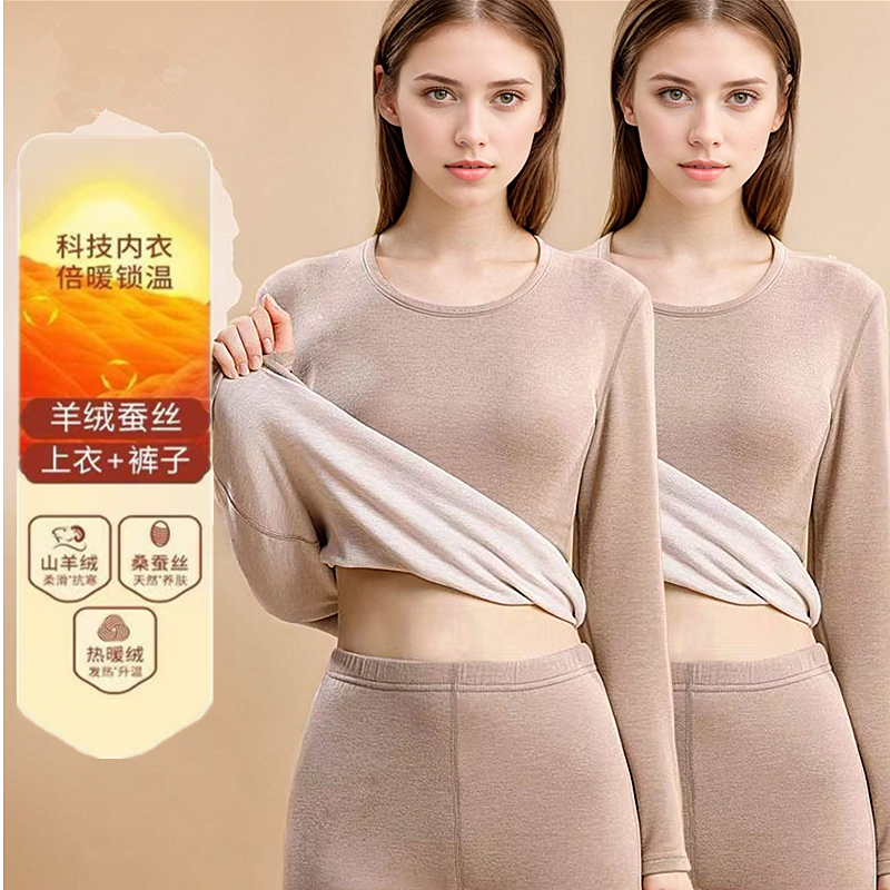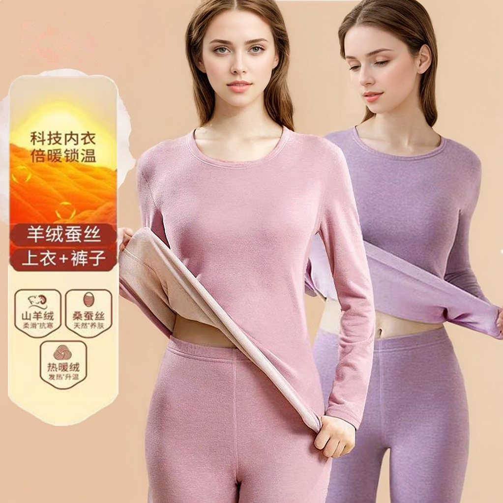 【薄绒亲肤】安舒心羊毛蚕丝保暖套装加厚加绒女款内衣秋冬季打底