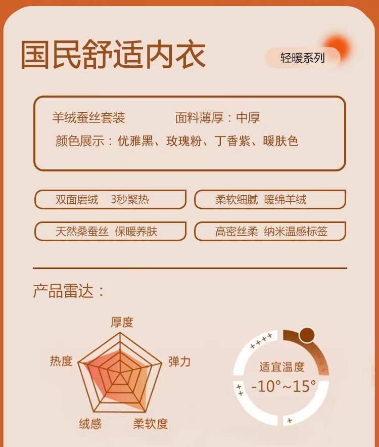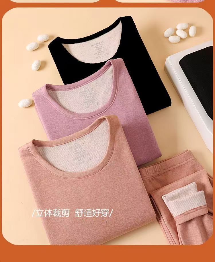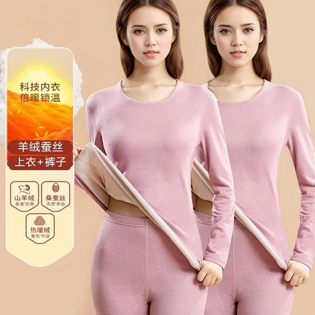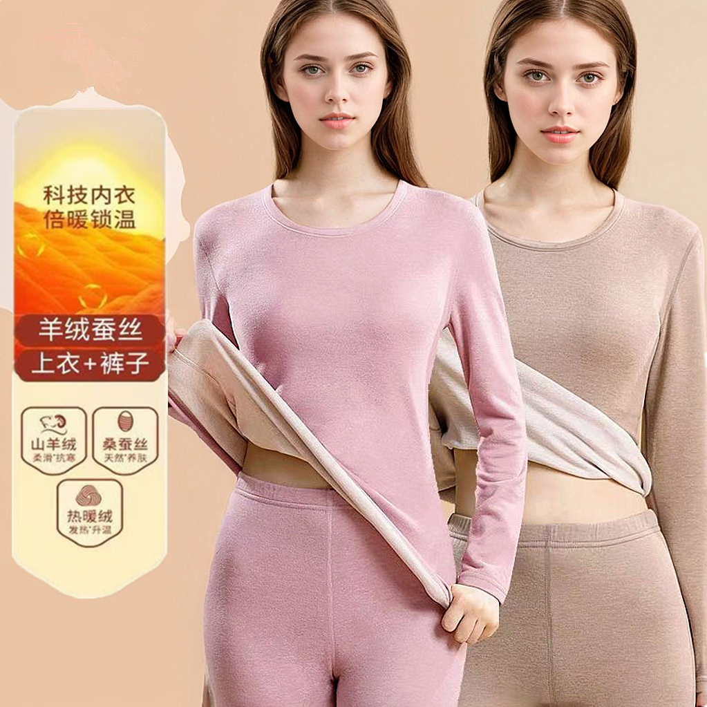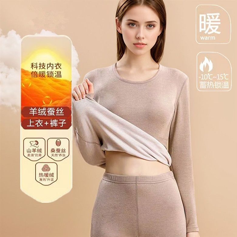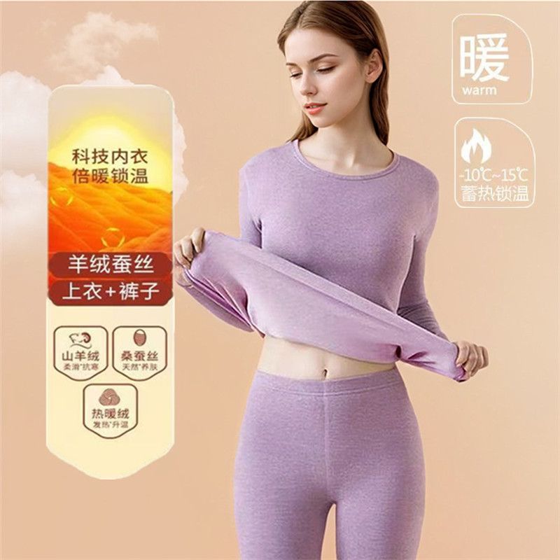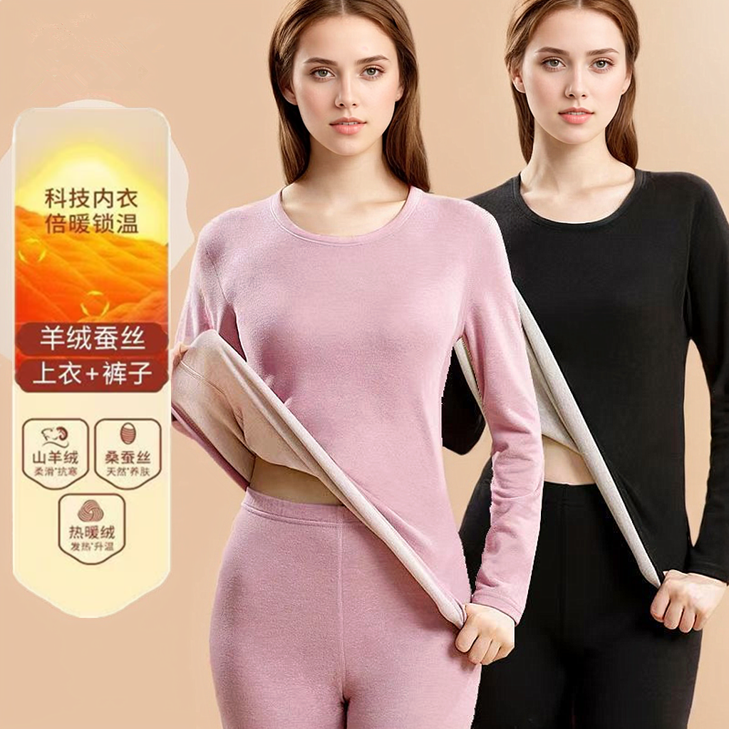 【薄绒亲肤】安舒心羊毛蚕丝保暖套装加厚加绒女款内衣秋冬季打底