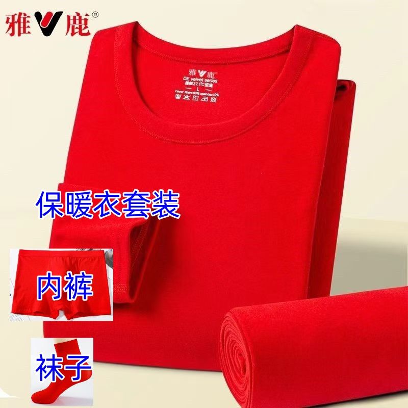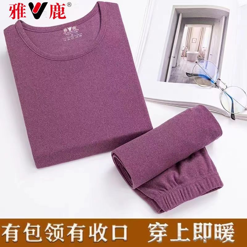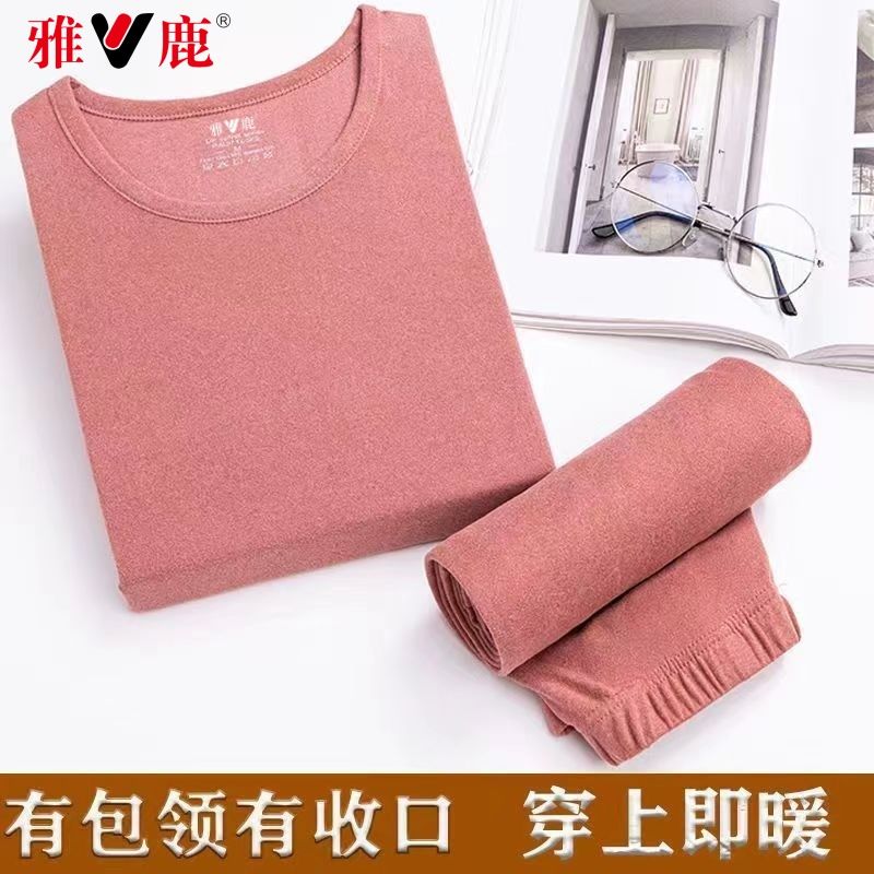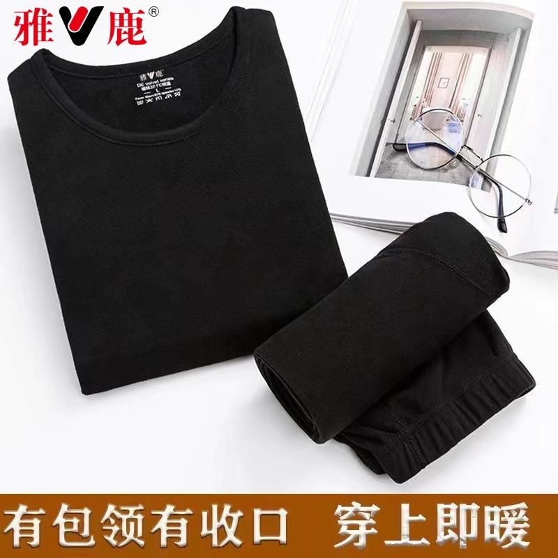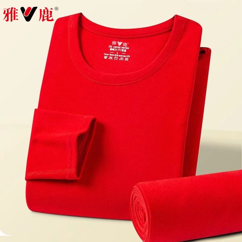 雅鹿秋冬款德绒保暖内衣男套装结婚双面磨毛恒温女打底衫秋衣秋裤