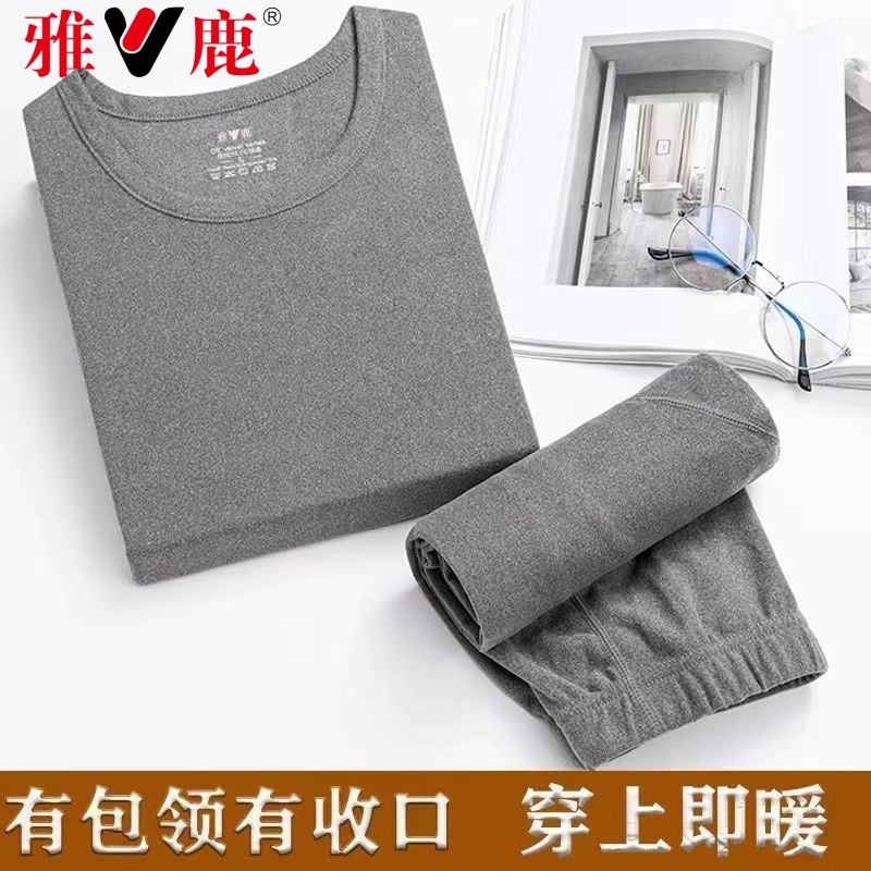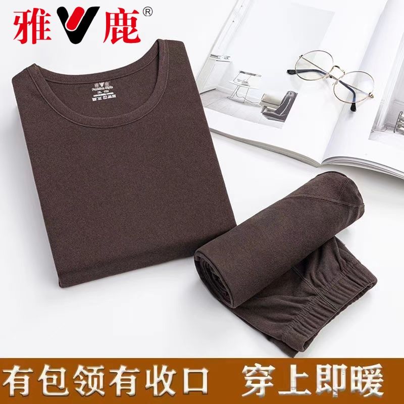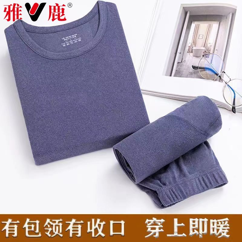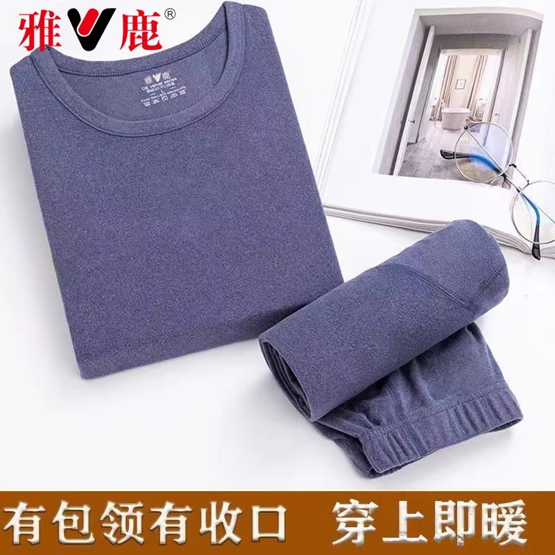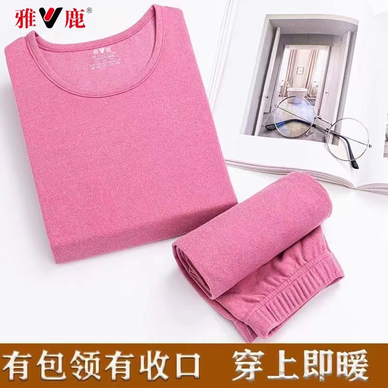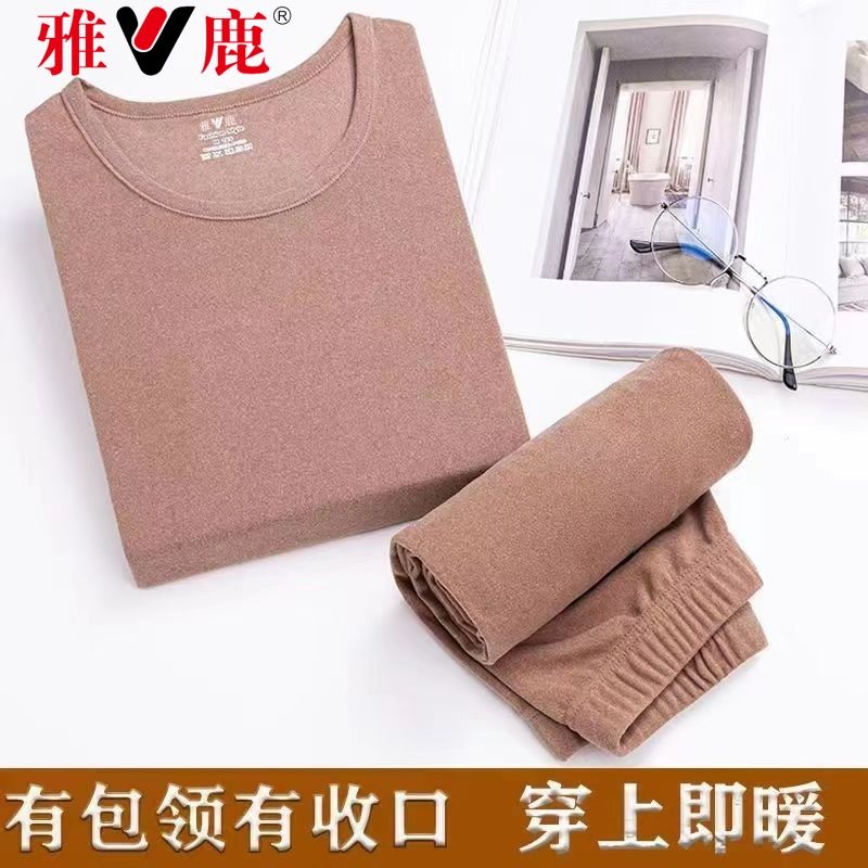 雅鹿秋冬款德绒保暖内衣男套装结婚双面磨毛恒温女打底衫秋衣秋裤
