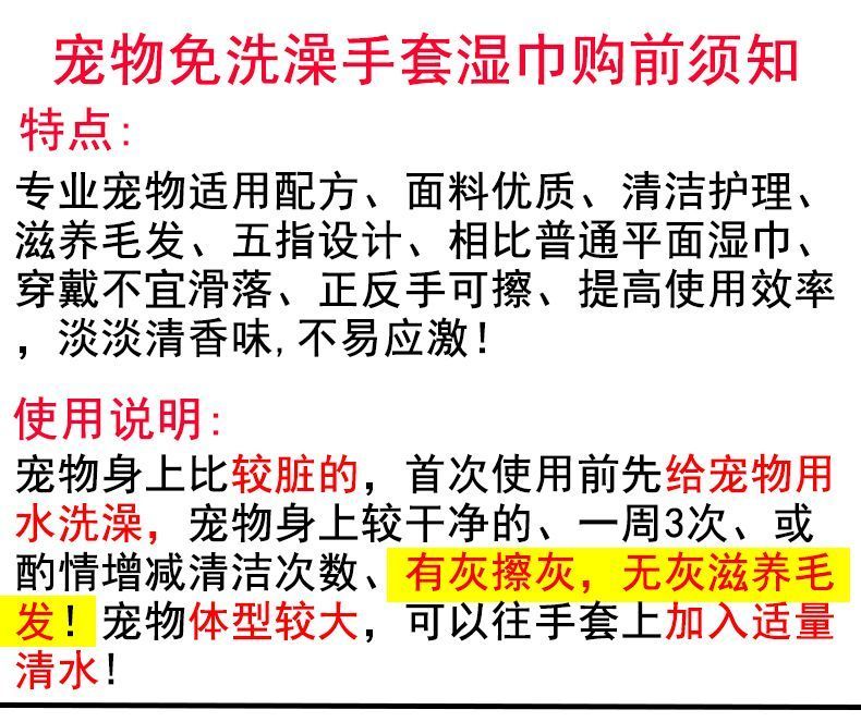 宠物免洗手套猫咪洗澡宠物湿巾狗狗干洗清洁手套杀菌除臭免洗神器