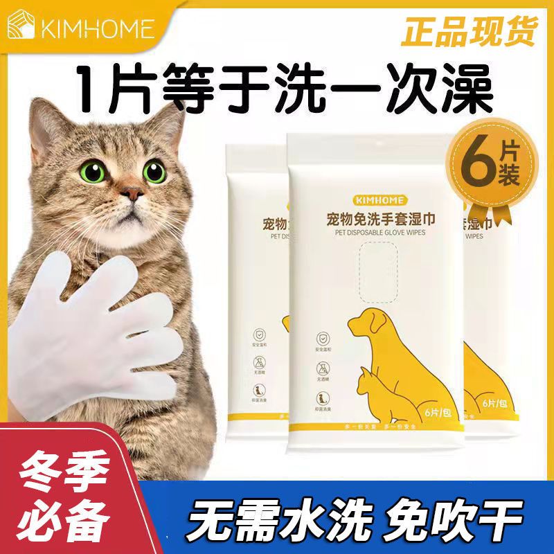 宠物免洗手套狗狗杀菌除臭湿纸巾狗狗干洗清洁手套猫咪洗澡神器