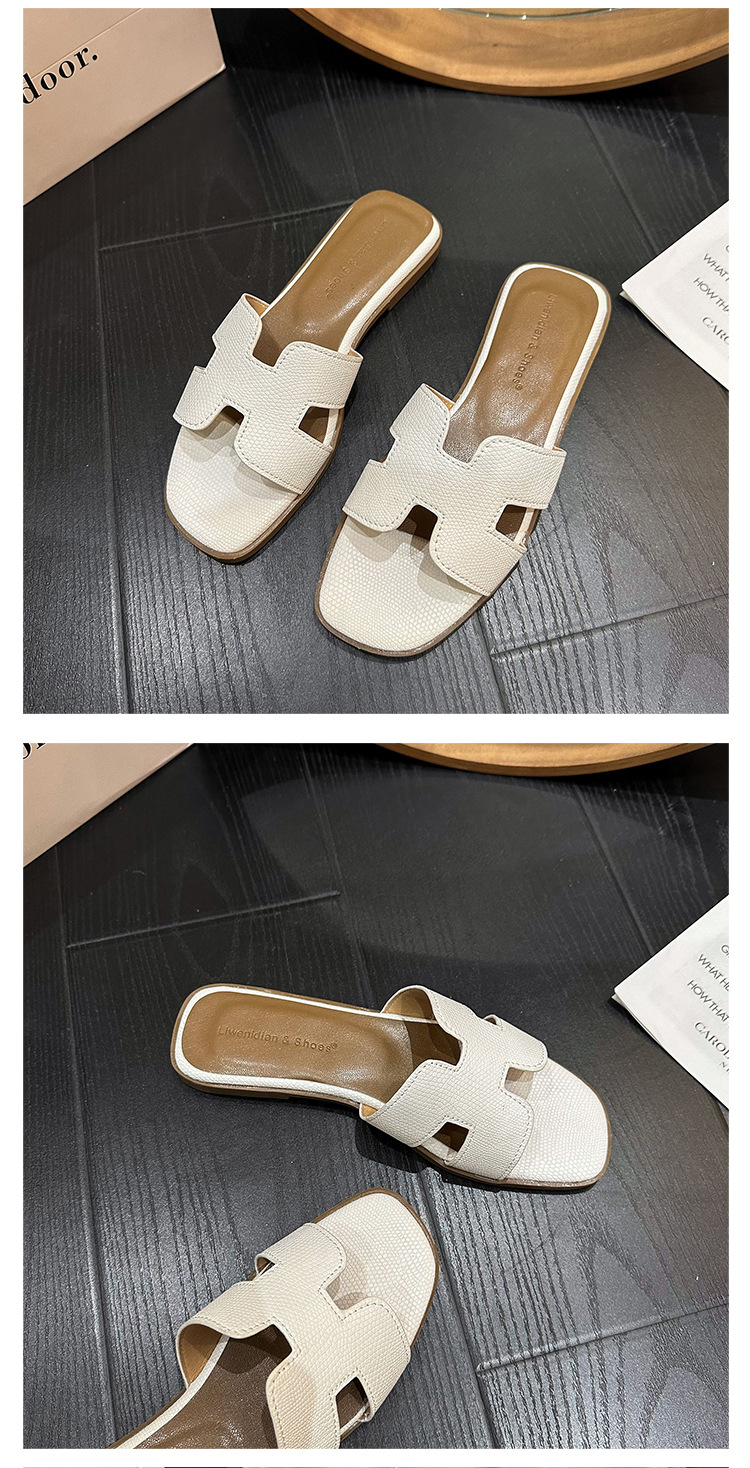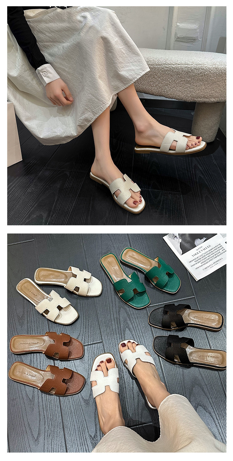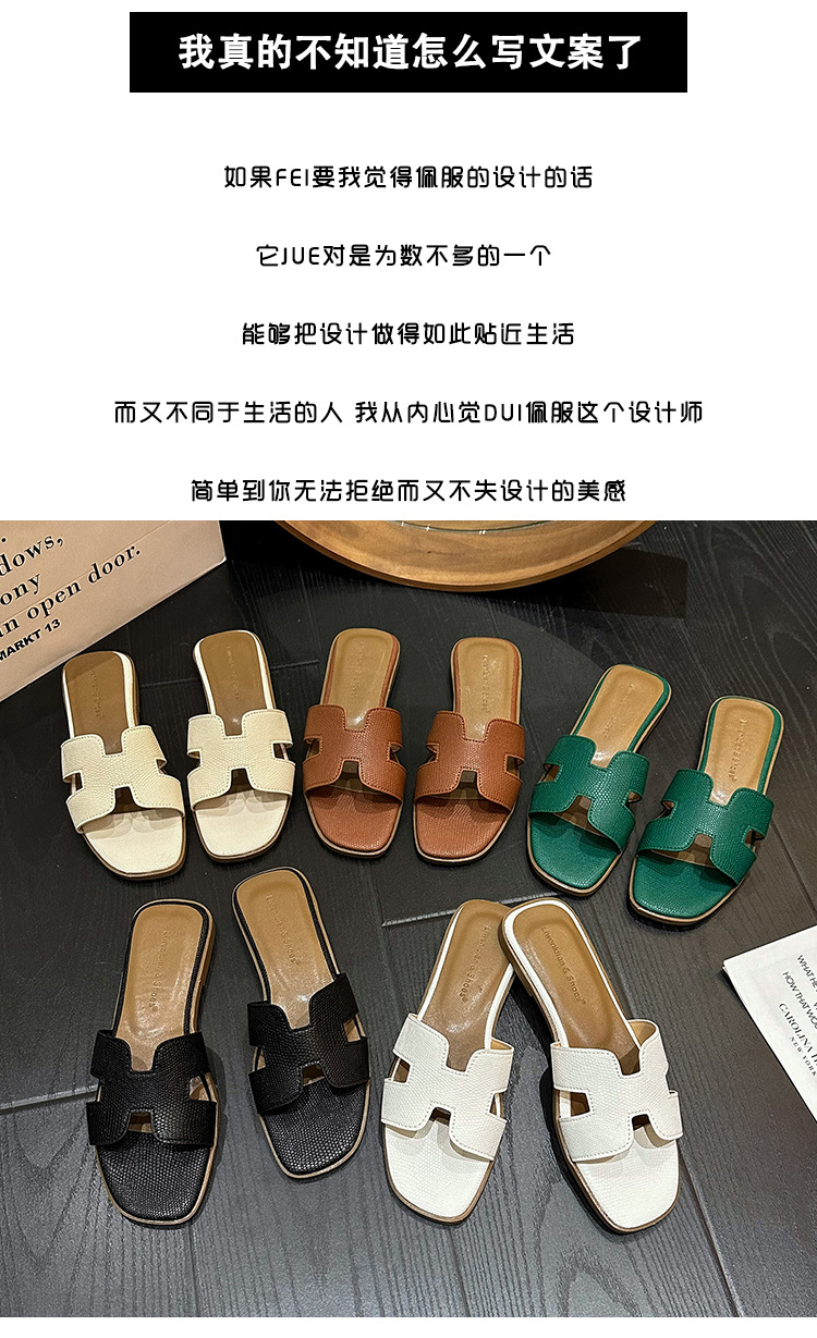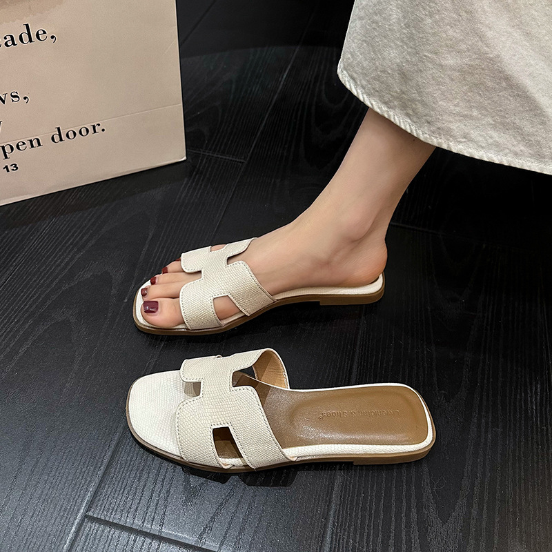潮牌平底凉拖鞋女2025夏季新款H型面一字拖 可湿水外穿沙滩鞋半拖