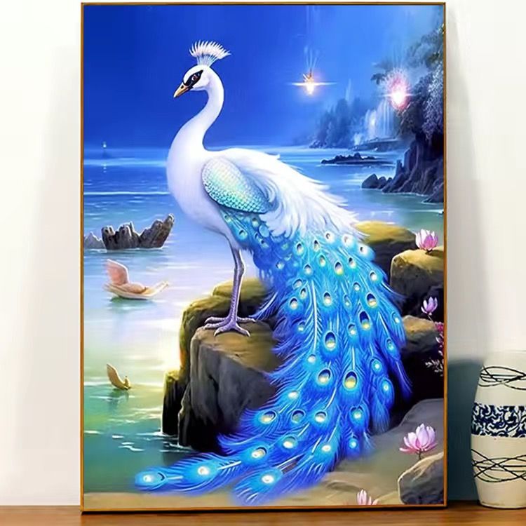 孔雀带框钻石画满钻玄关发财麋鹿2024新款竖版客厅十字绣粘贴砖画
