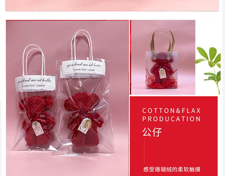 | 酒红色菠萝纹毛巾熊+ins手提袋 | USD $0.6 | 999999 piece available |