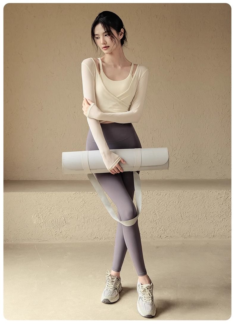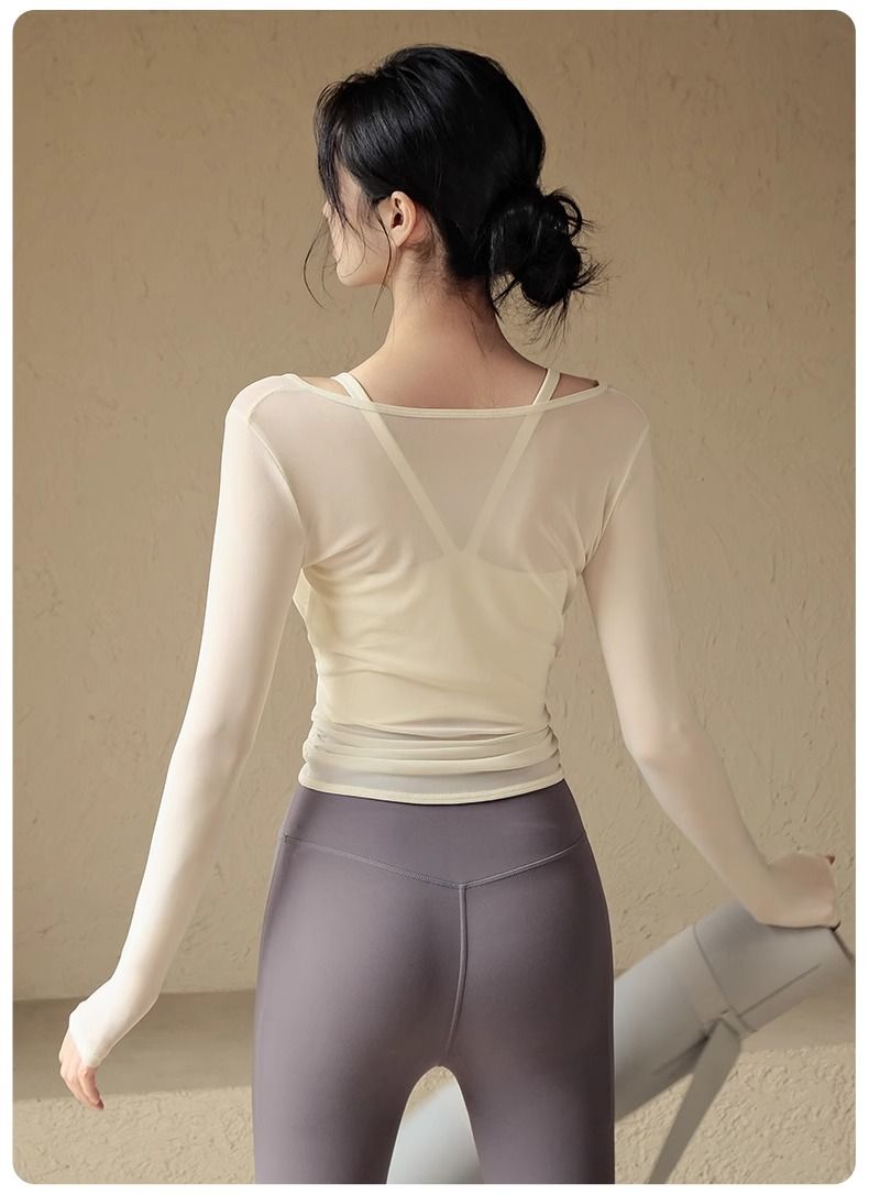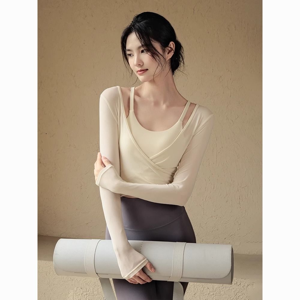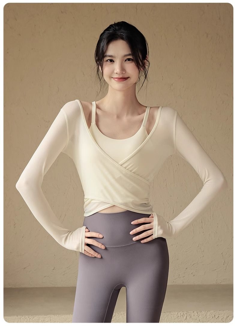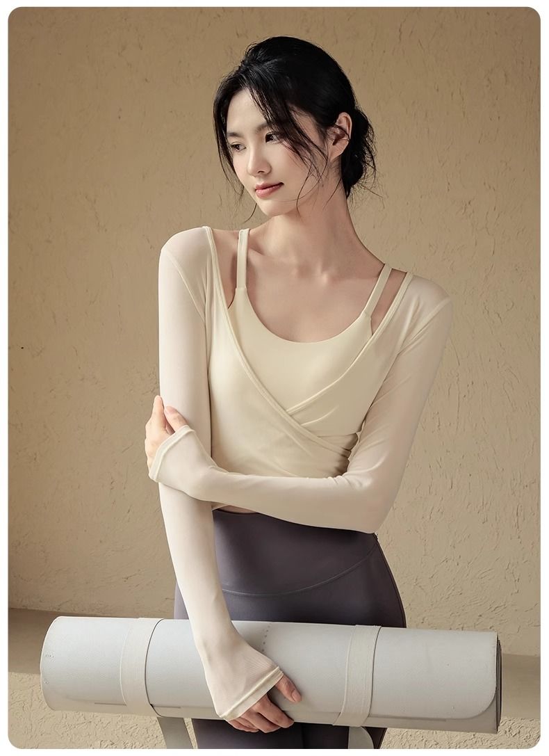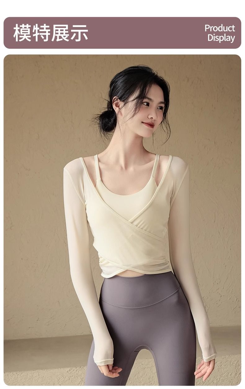 瑜伽服套装女春夏带胸垫运动上衣气质显瘦罩衫普拉提训练健身长袖
