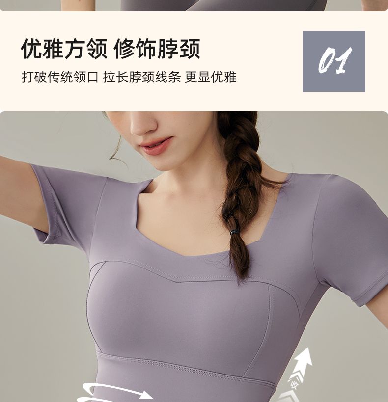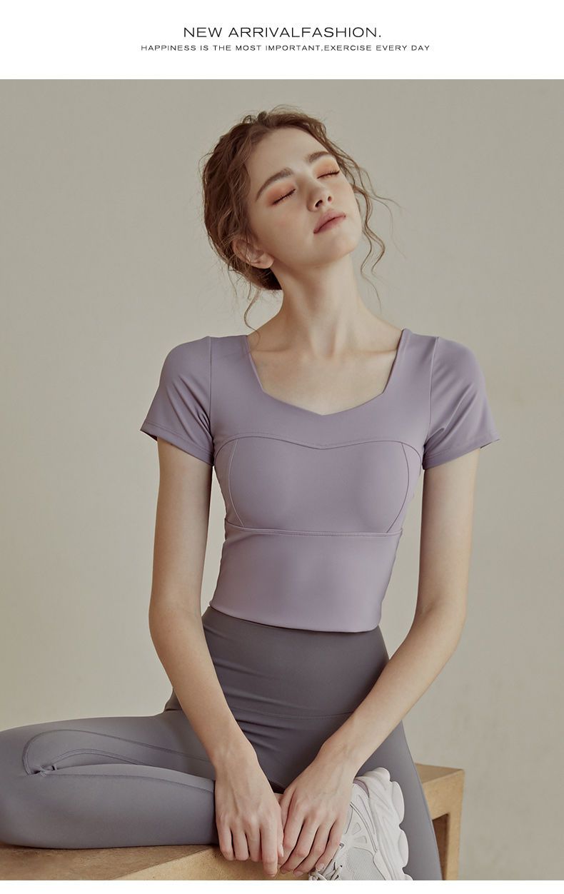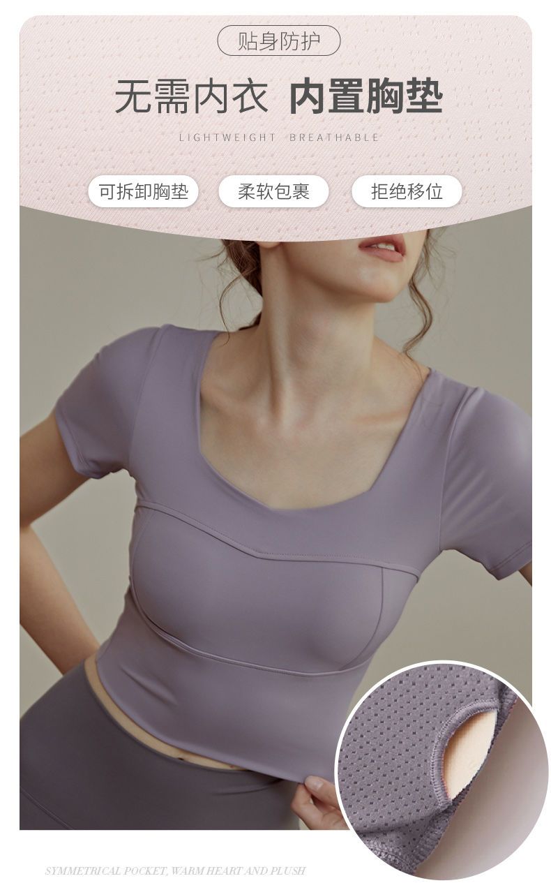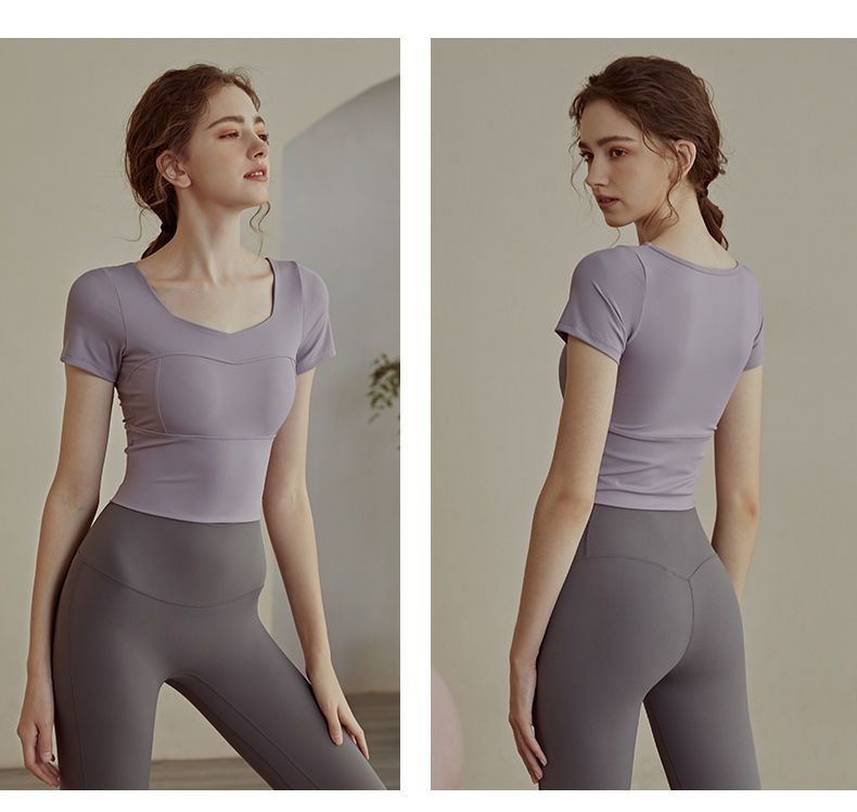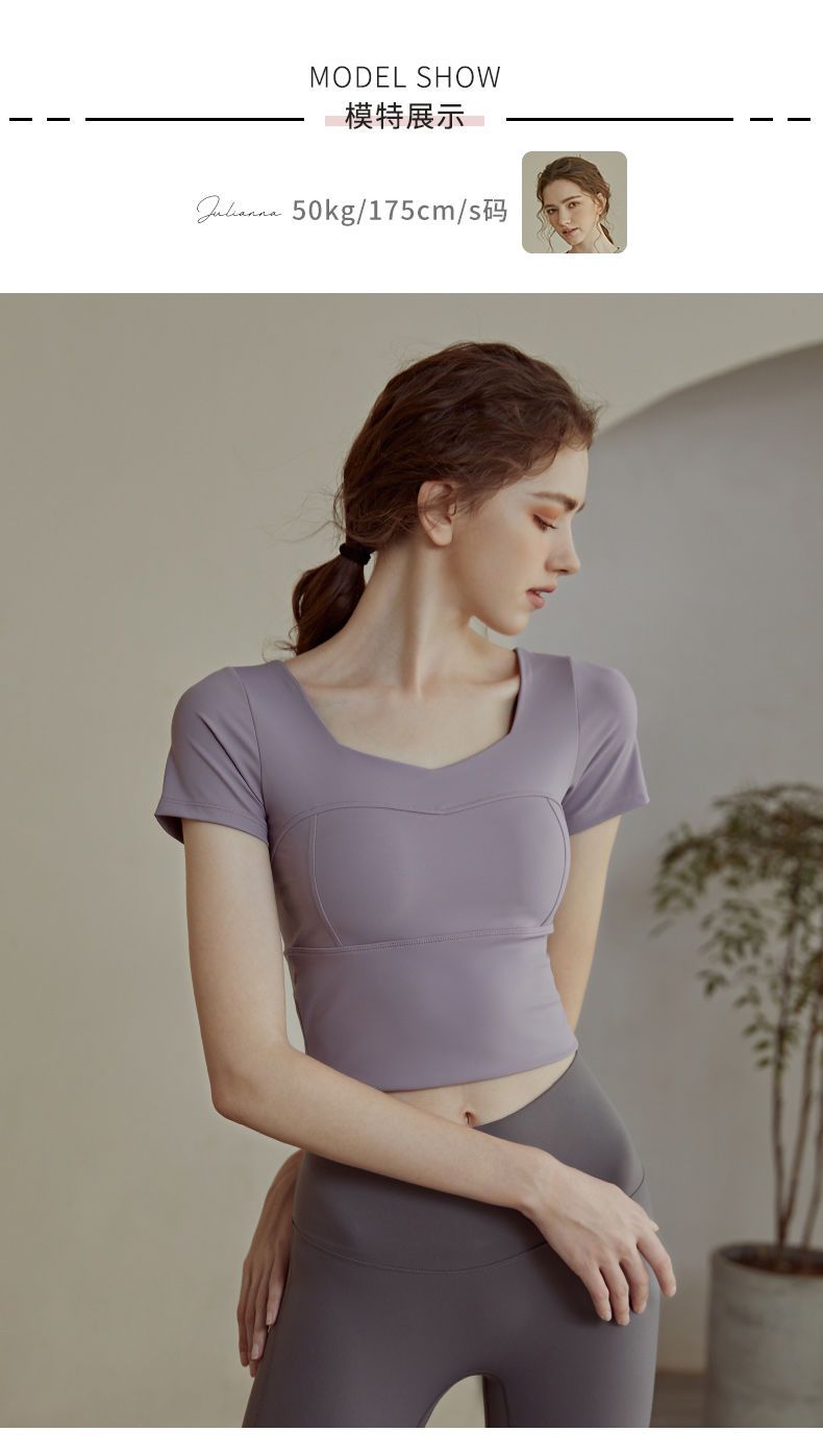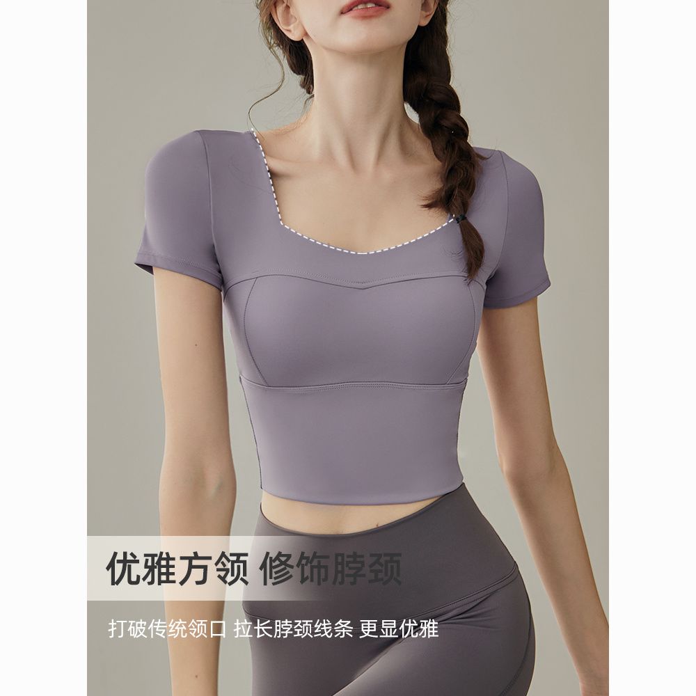 带胸垫瑜伽服女夏季跑步运动上衣短袖高级感普拉提训练健身服套装