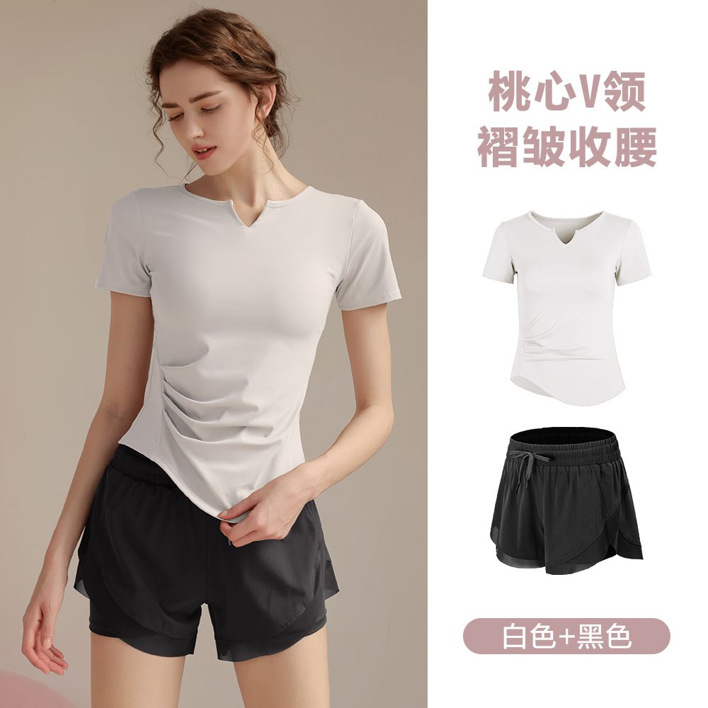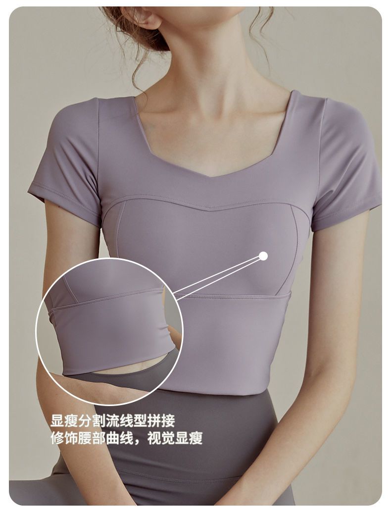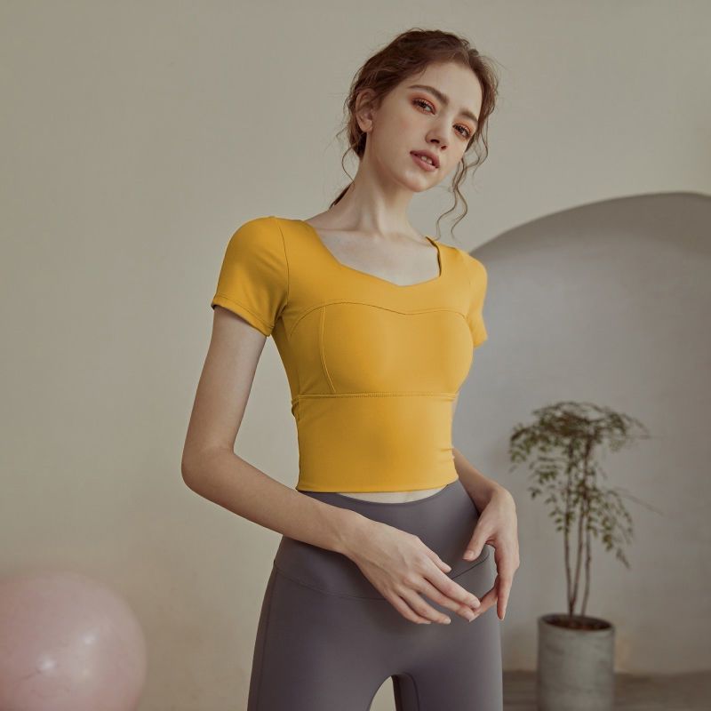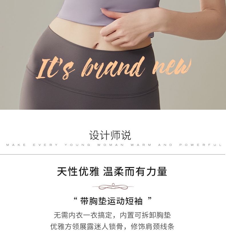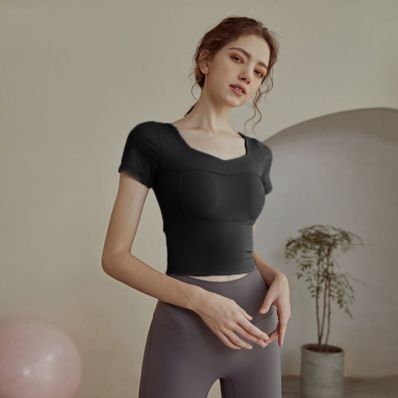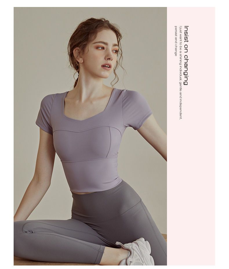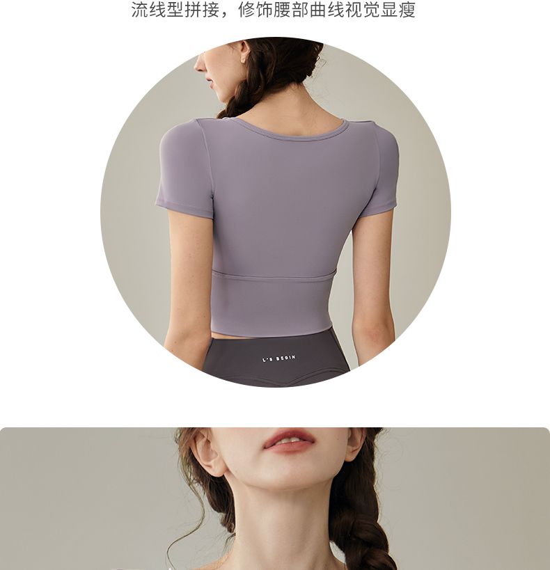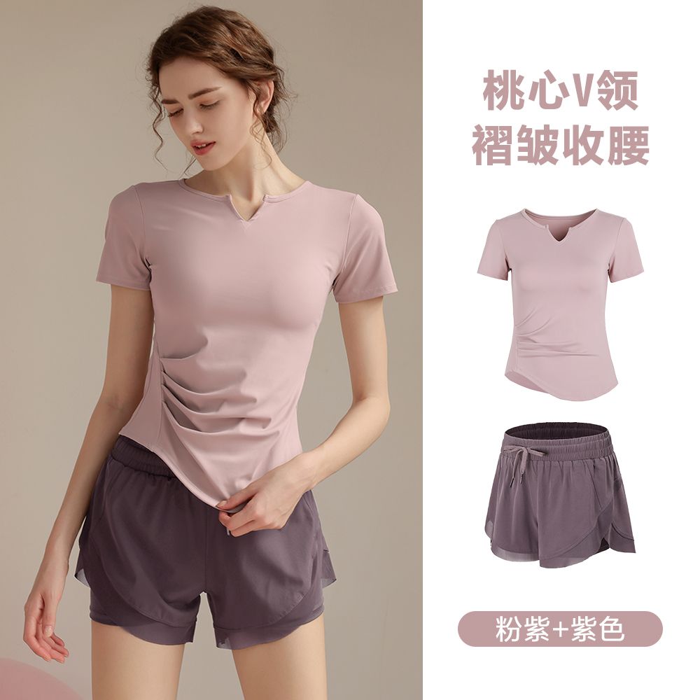 带胸垫瑜伽服女夏季跑步运动上衣短袖高级感普拉提训练健身服套装