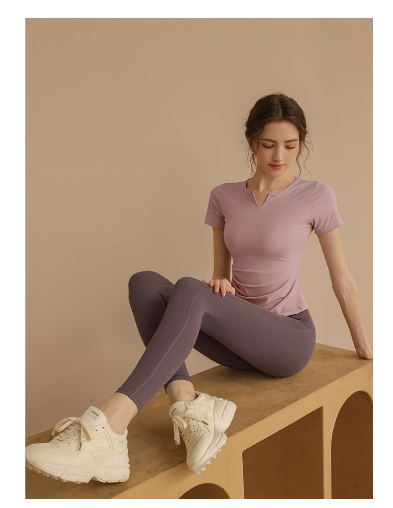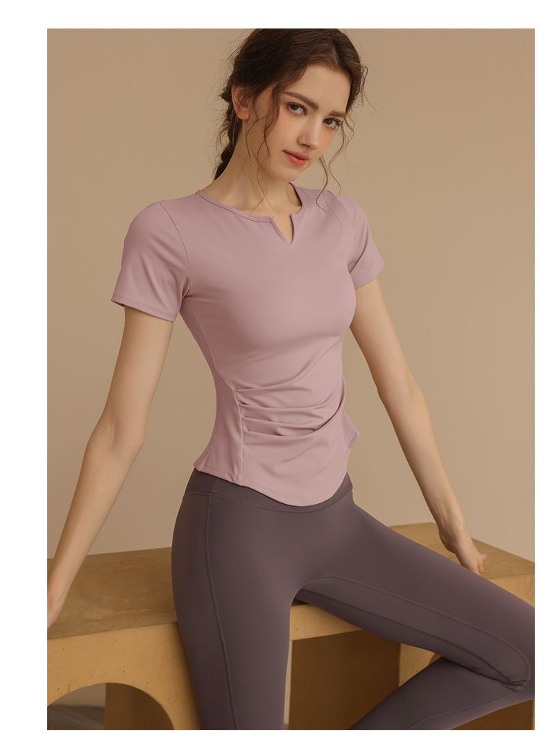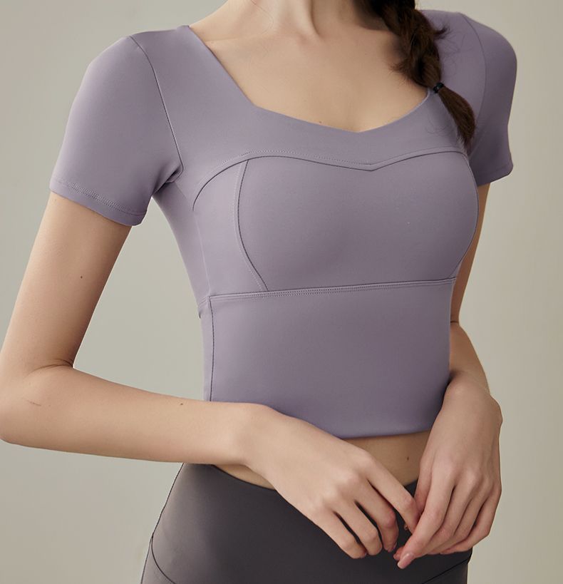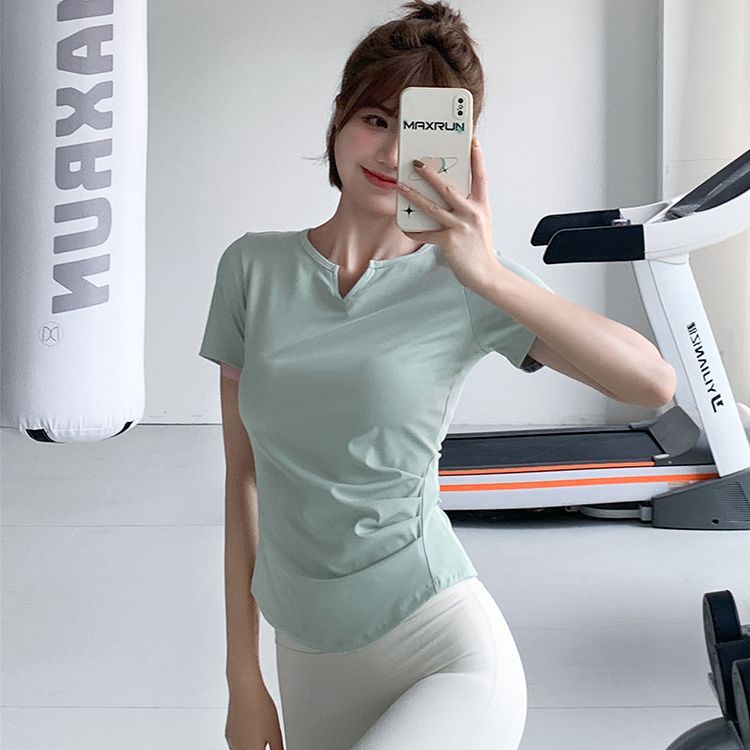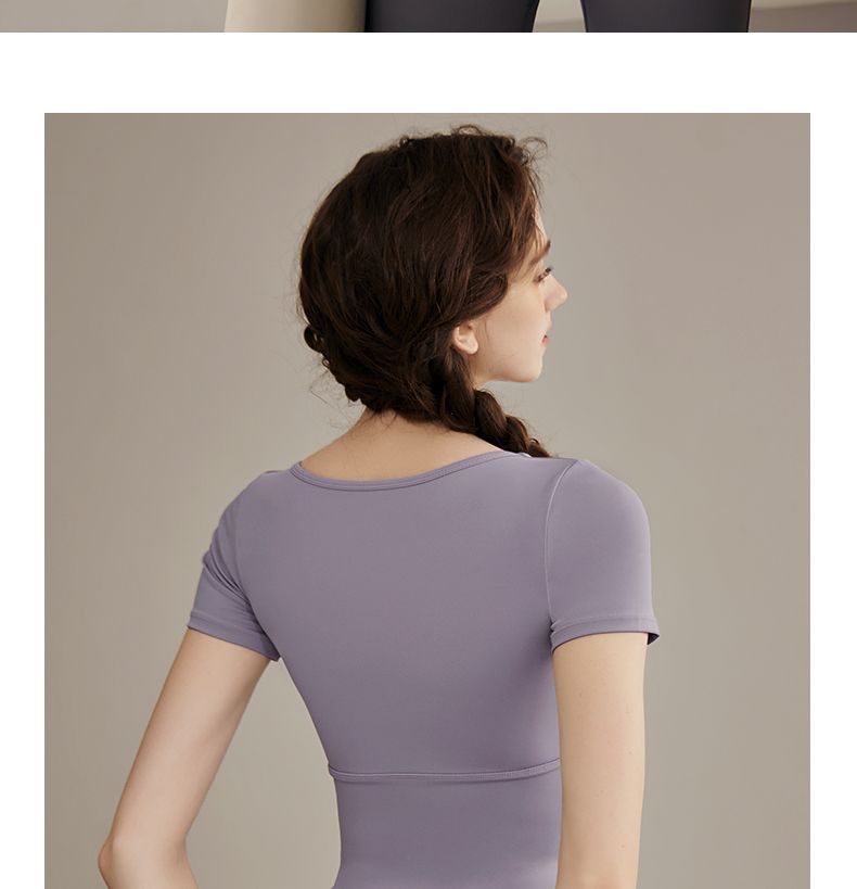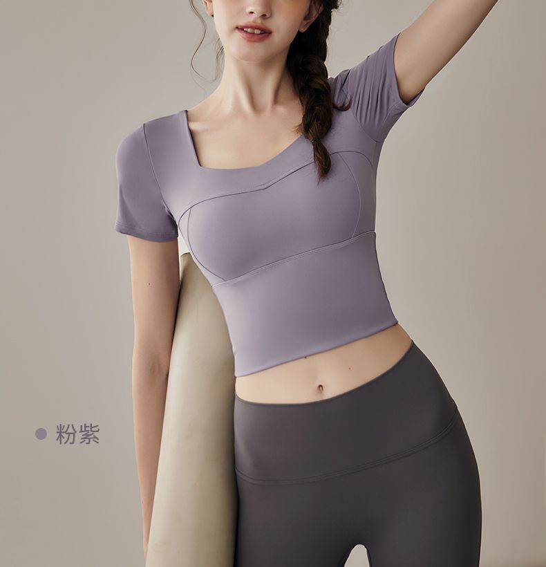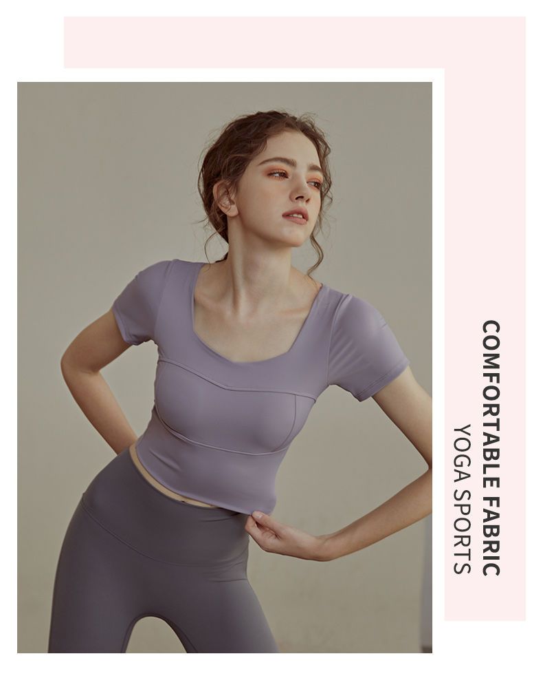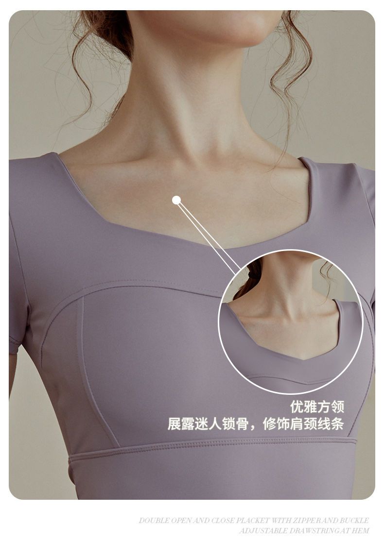 带胸垫瑜伽服女夏季跑步运动上衣短袖高级感普拉提训练健身服套装