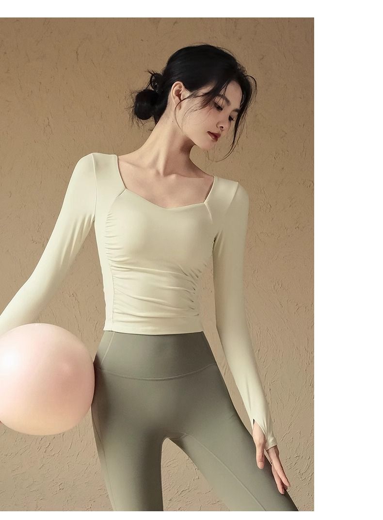 2024新款带胸垫瑜伽服修身百搭长袖女普拉提训练高颜值健身上衣