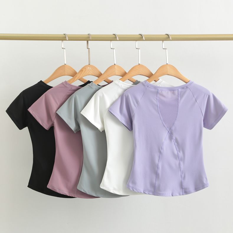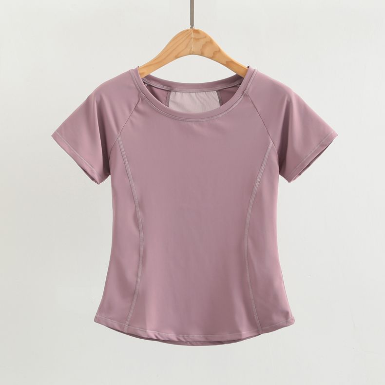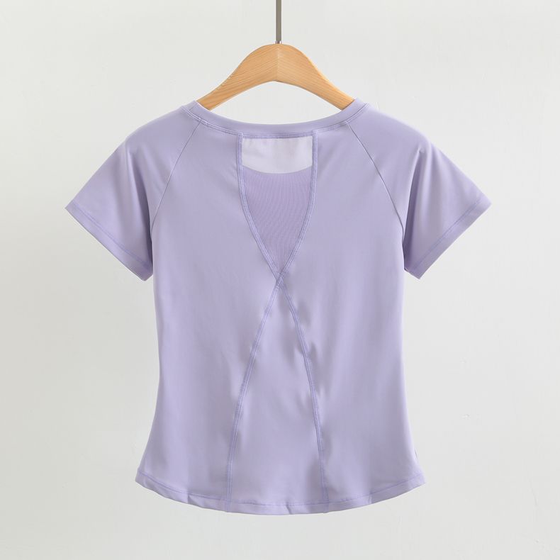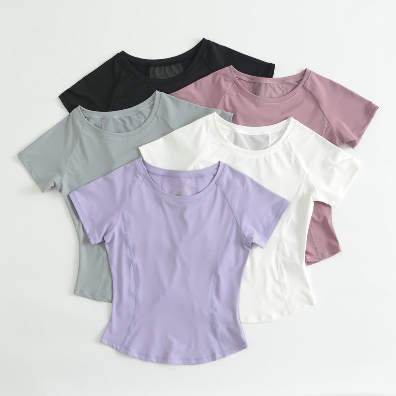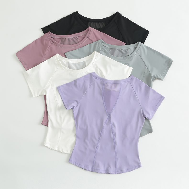瑜伽服女短袖紧身运动上衣网纱美背健身跑步罩衫训练t恤春夏2024