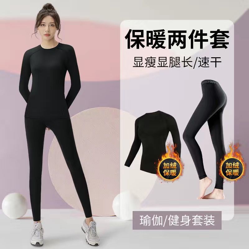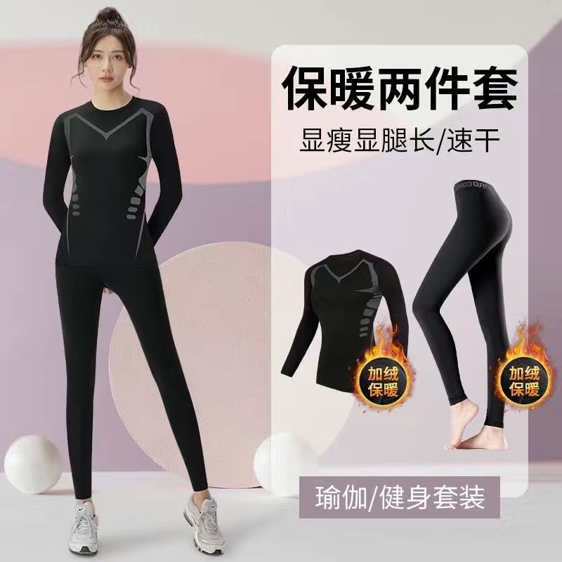 保暖衣女套装运动紧身训练长袖速干冬季上衣加绒跑步健身瑜伽服女