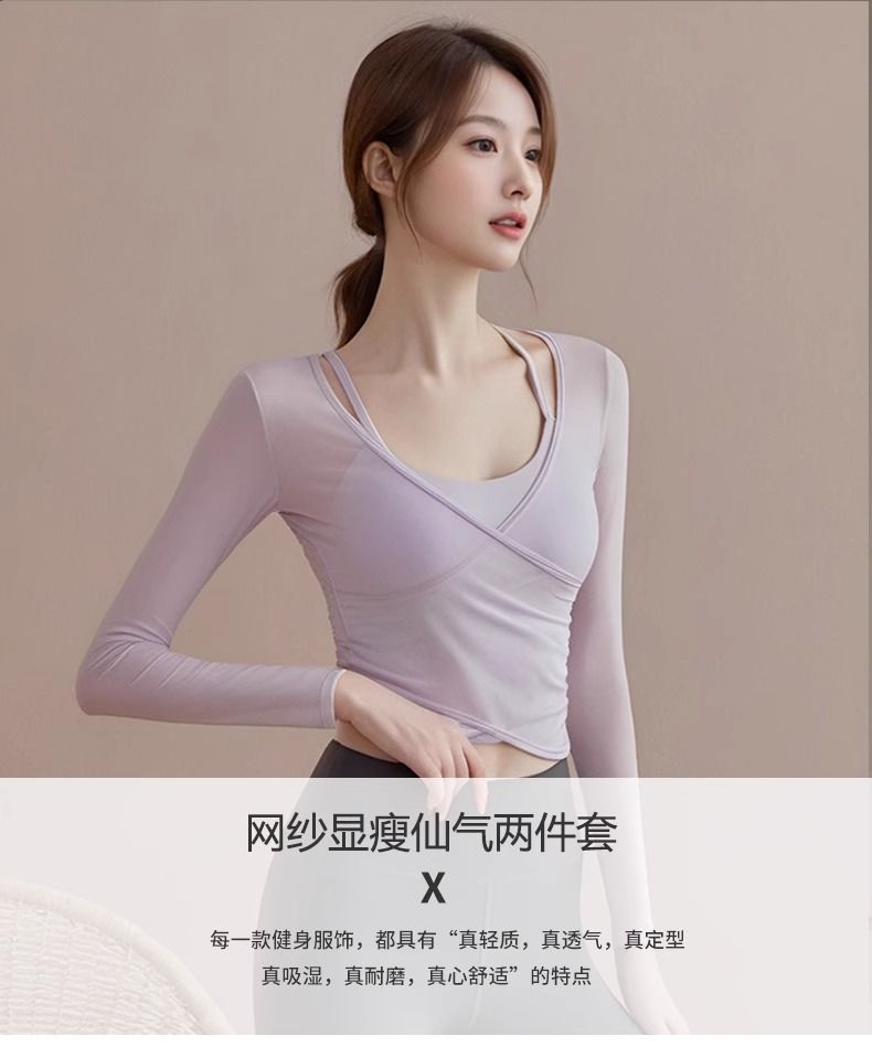瑜伽服女春夏2024新款高级感普拉提训练服健身套装运动长袖上衣
