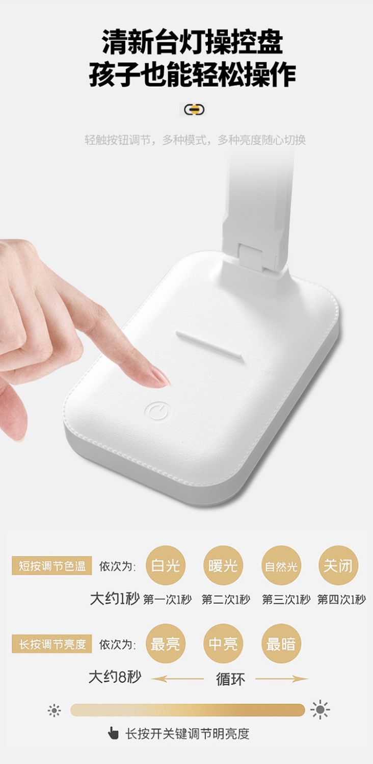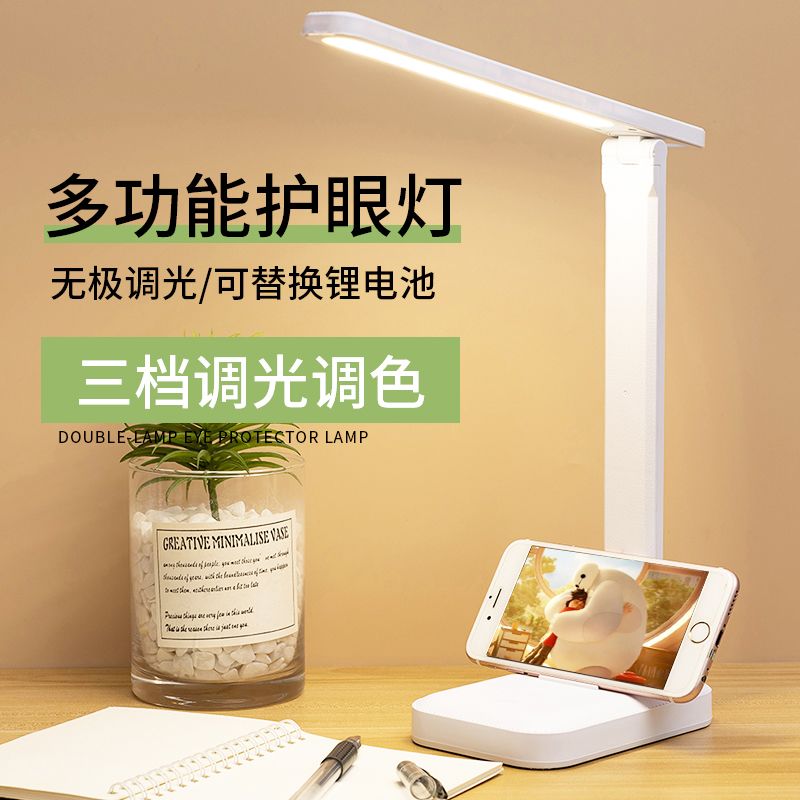 宝量台灯护眼折叠学习灯学生宿舍充电插电两用保护视力LED阅读灯