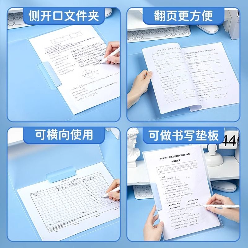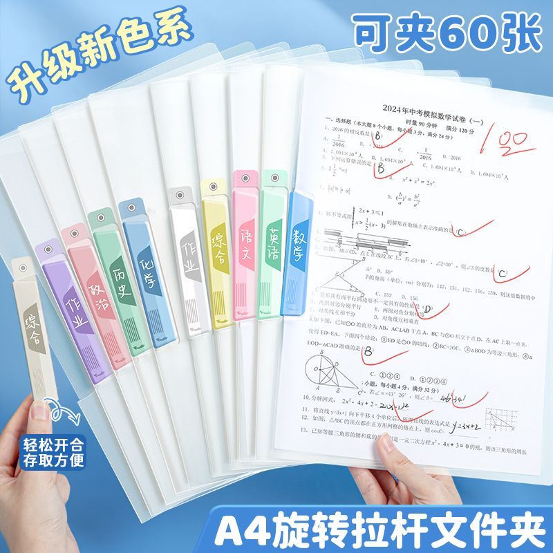 A4旋转拉杆夹文件夹试卷收纳袋文件夹侧开扣式学生收纳资料夹透明
