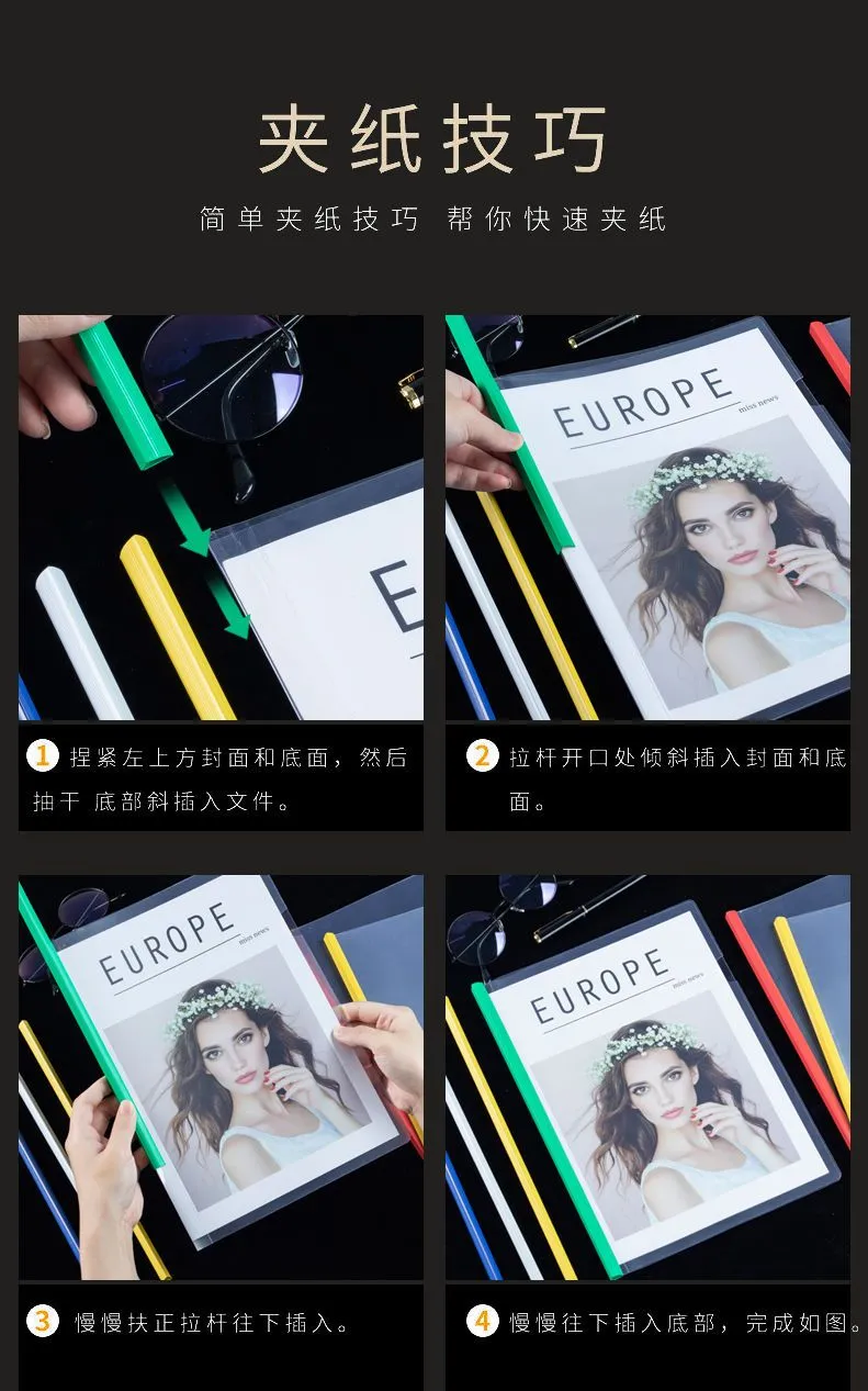 A4文件夹拉杆夹透明抽杆夹资料册夹简历试卷学生文件袋办公用品