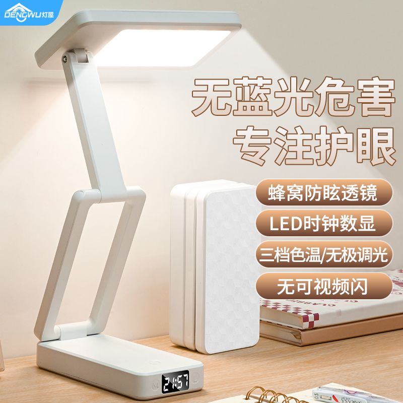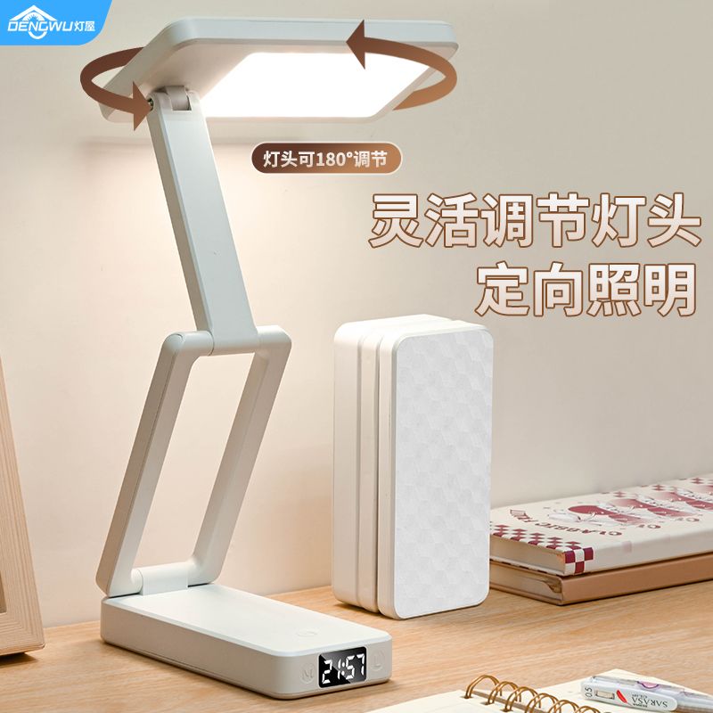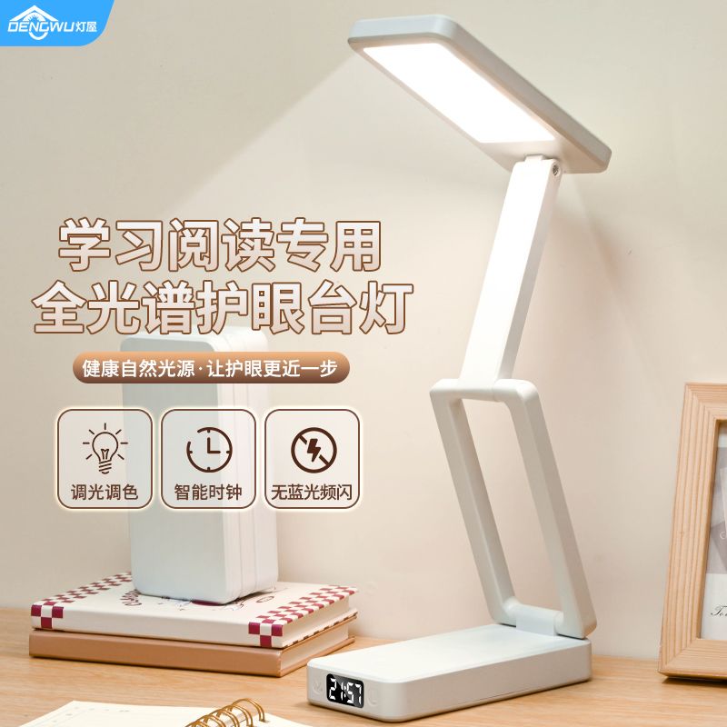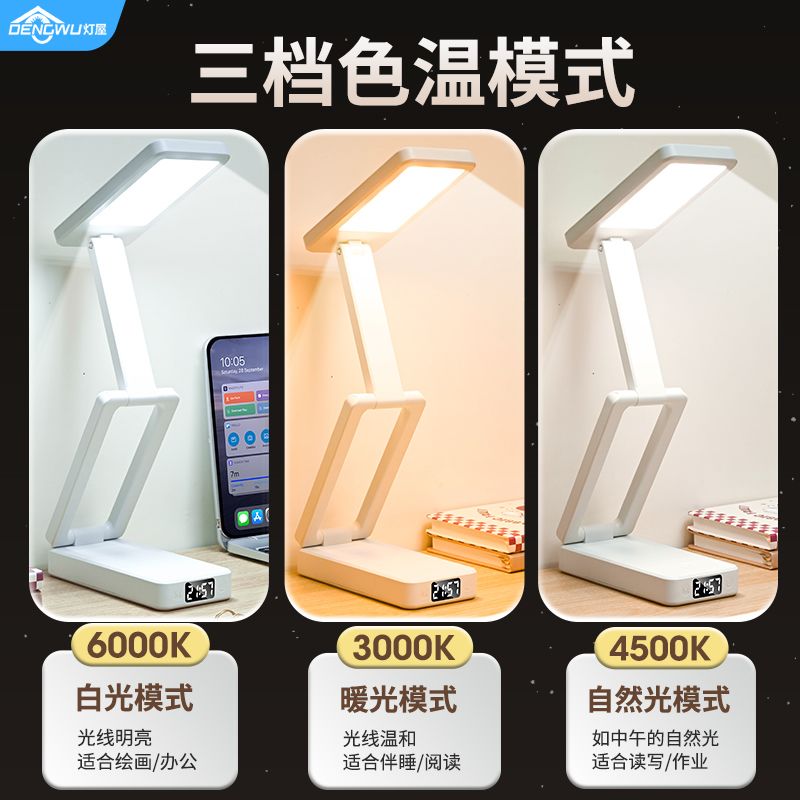 灯屋折叠式大学生智能时钟功能护眼学习学生宿舍台灯床头阅读台灯