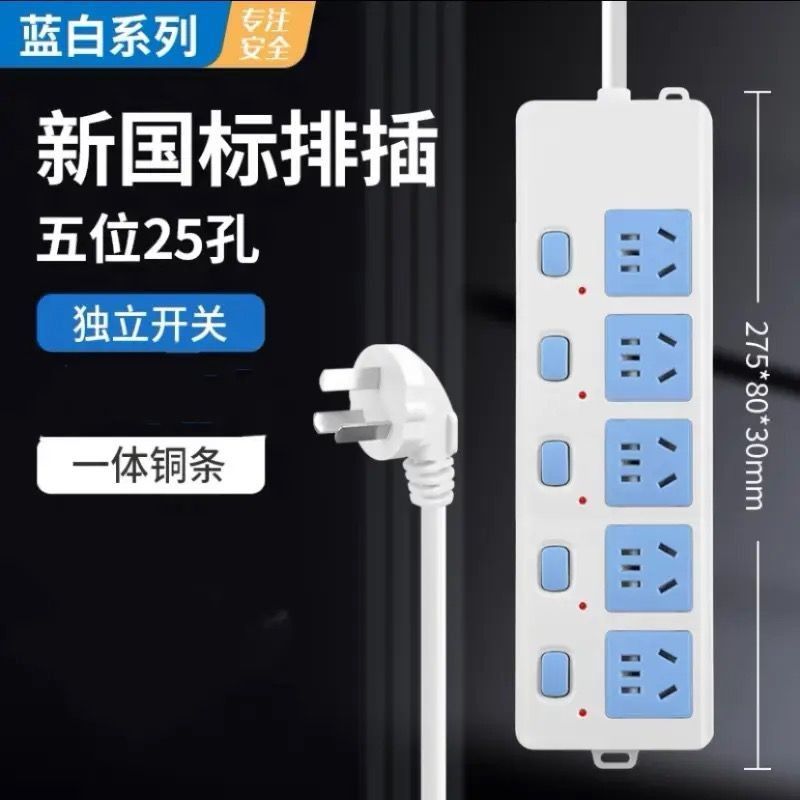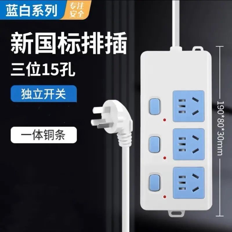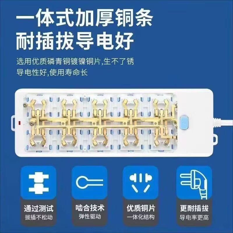 办公纯铜插座排插大功率插排插板线板无线插板带线家用电源接线板