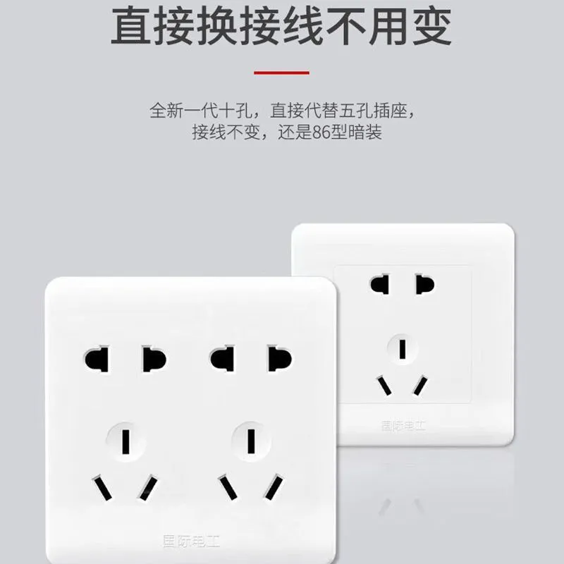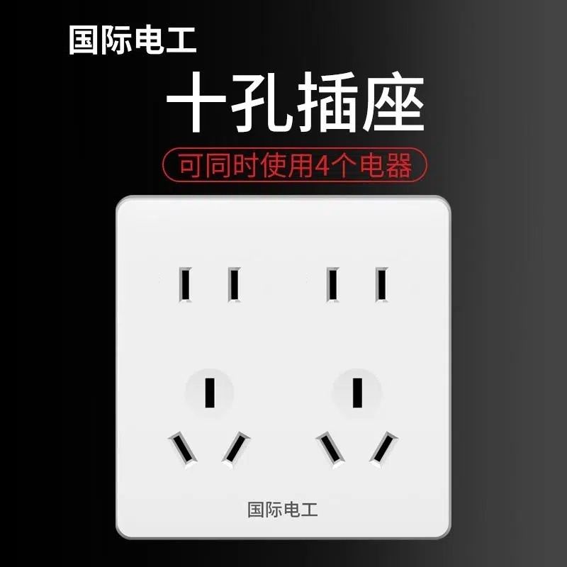 86型暗装十孔新国标大间距十孔插座多孔10孔墙壁开关插座面板