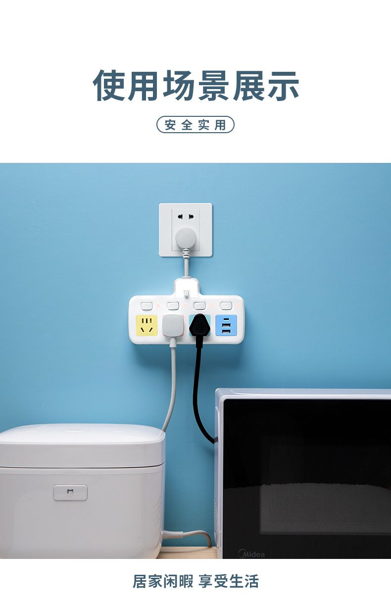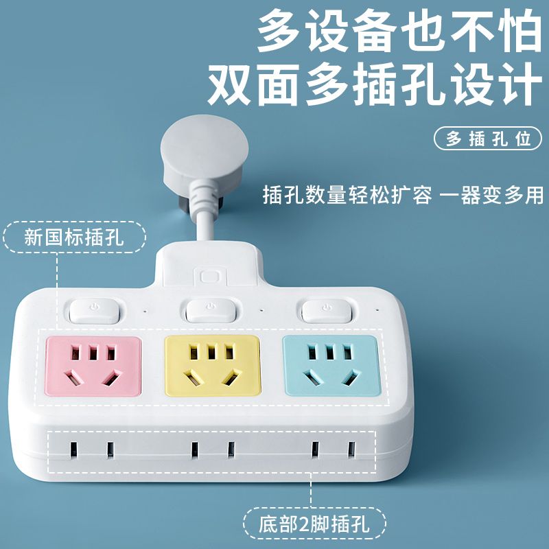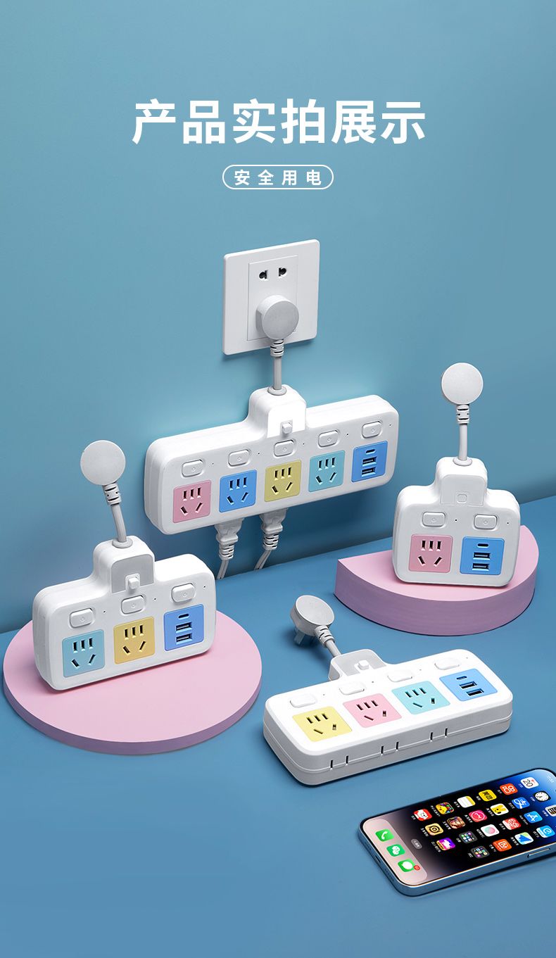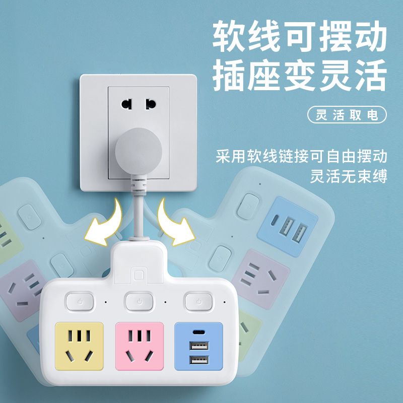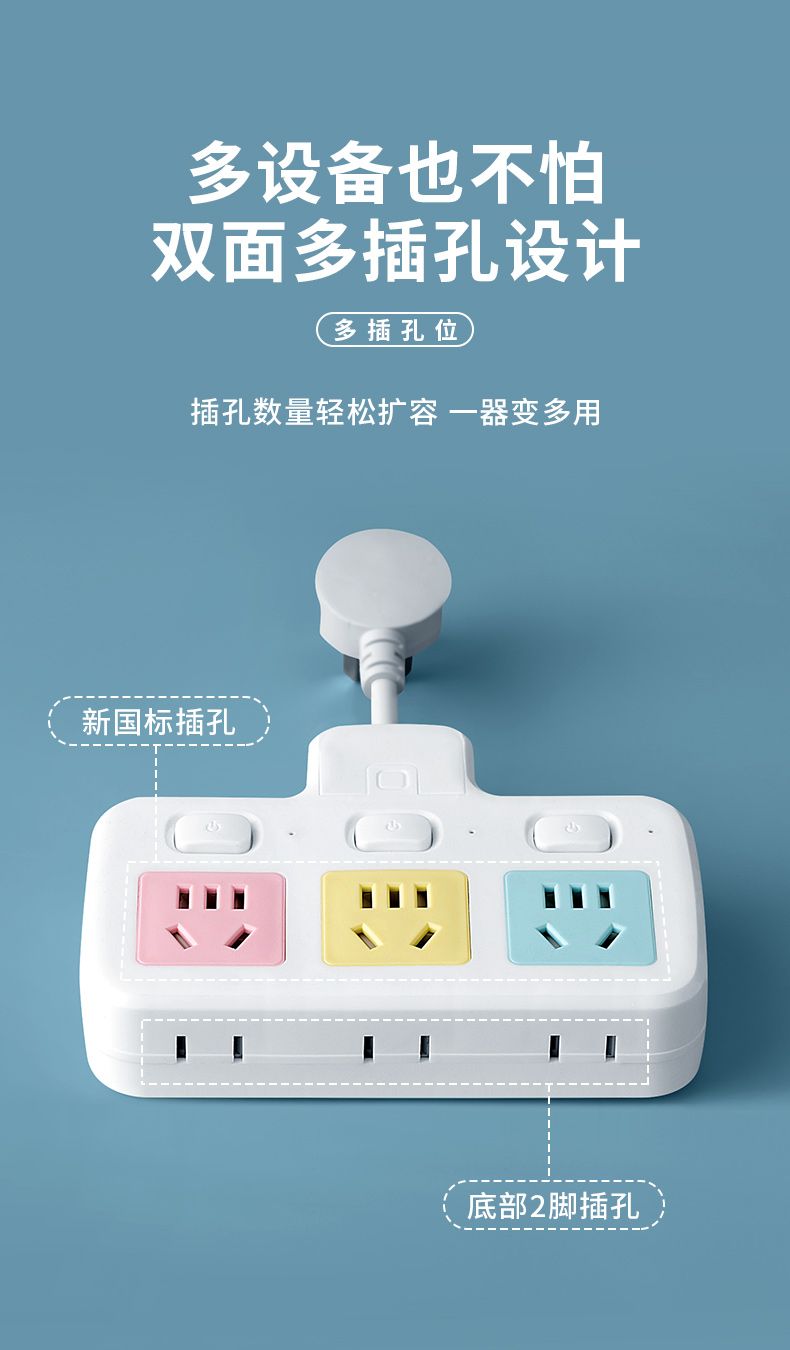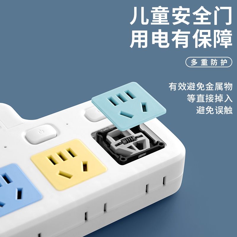 USB多用插座多功能多孔家用转换器带夜灯无线插板贴墙排插接线板
