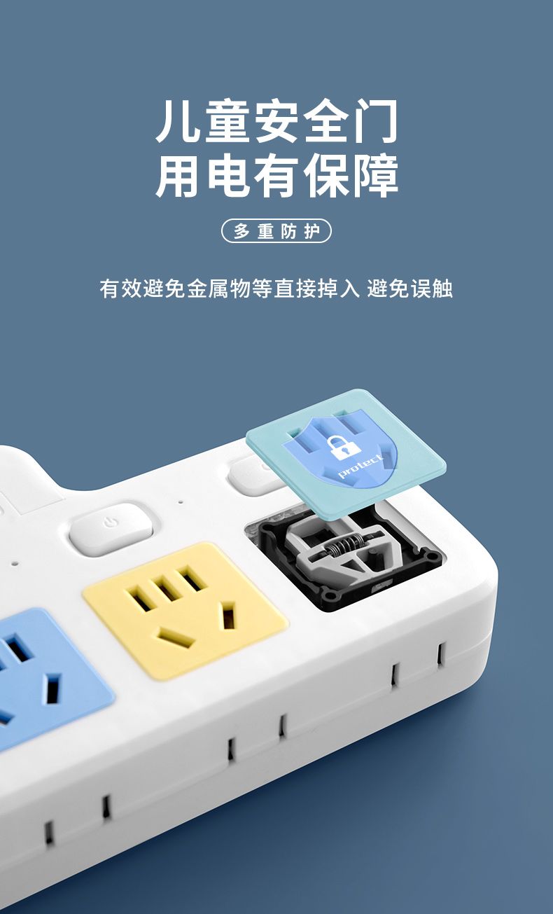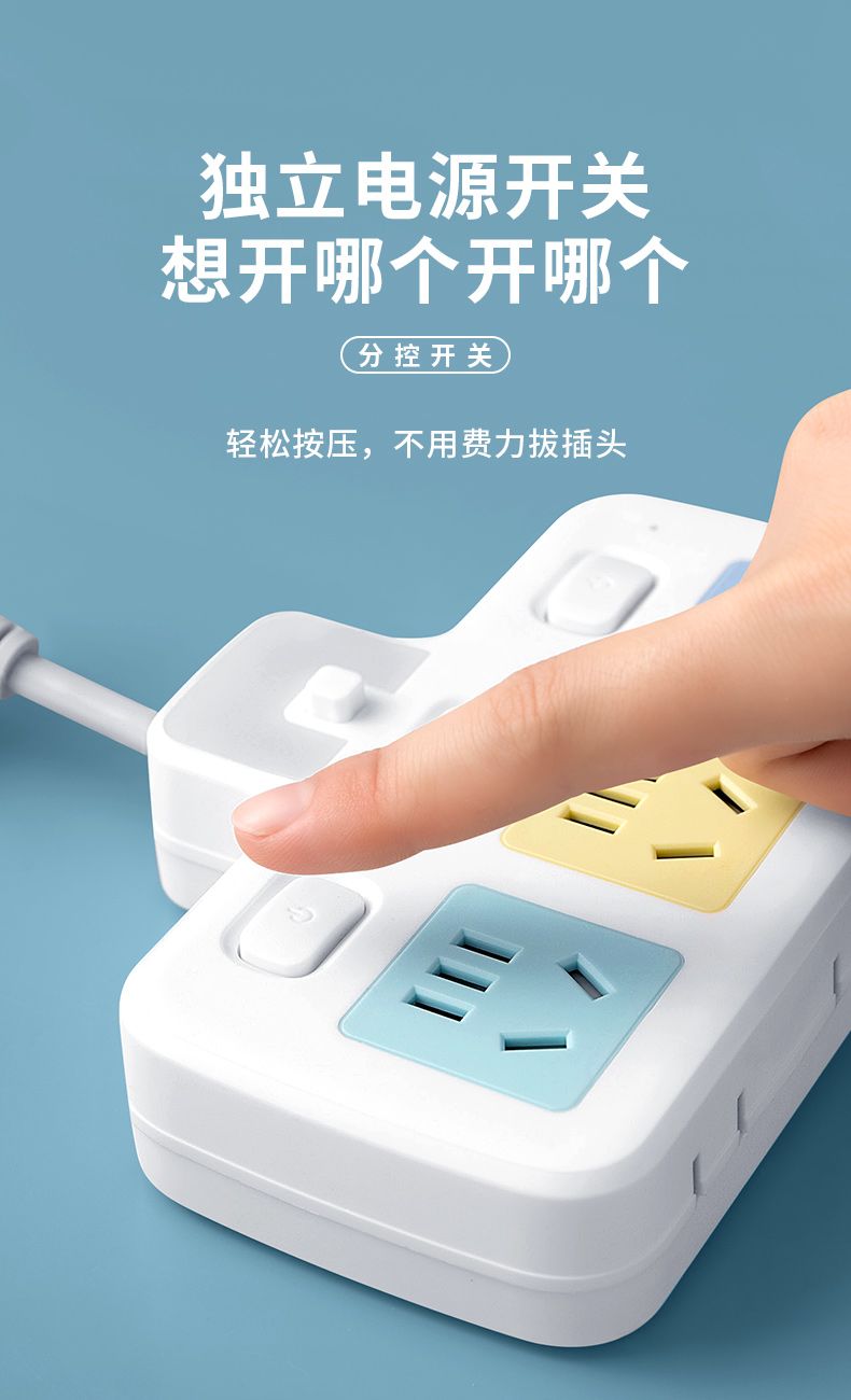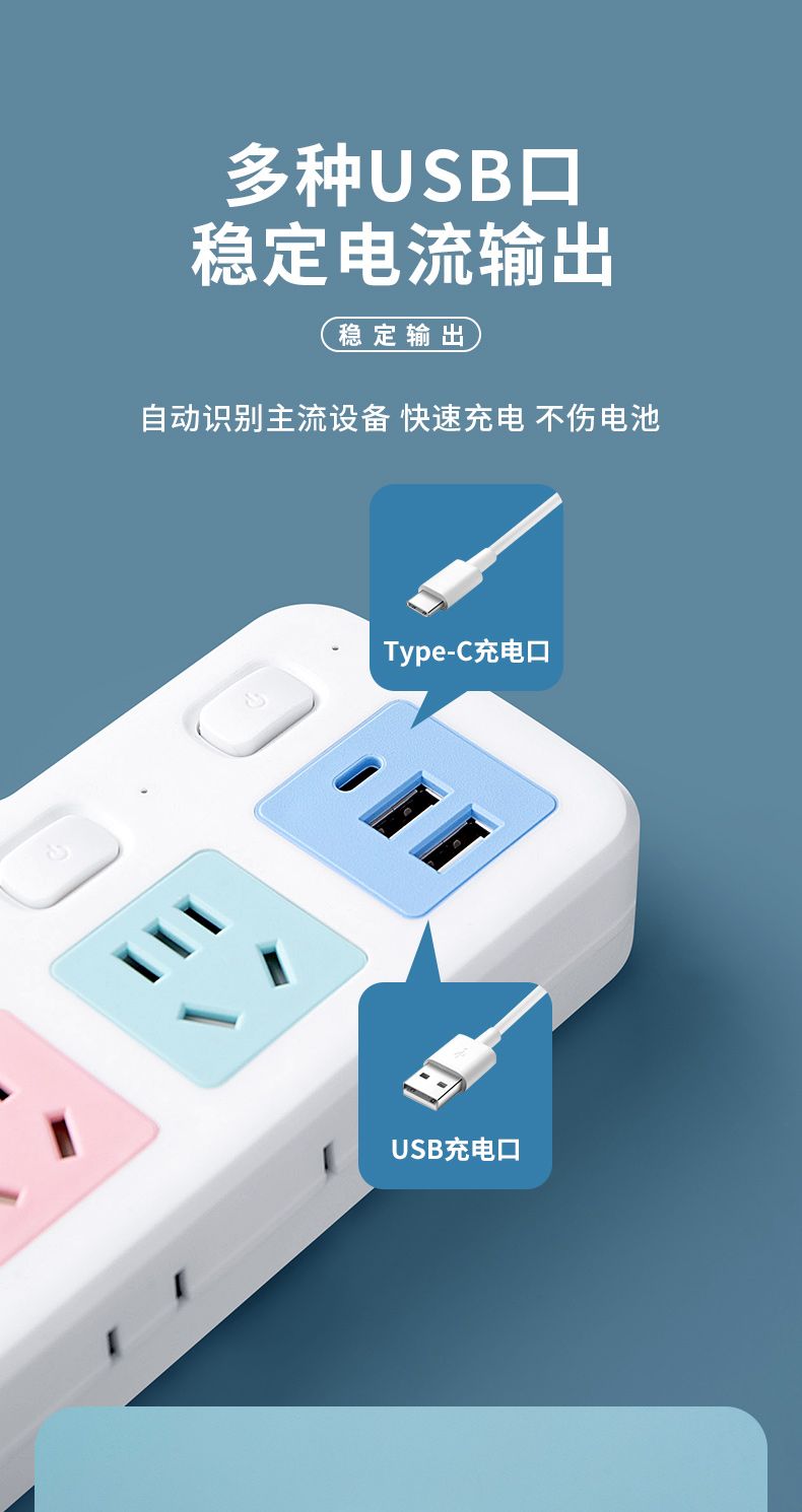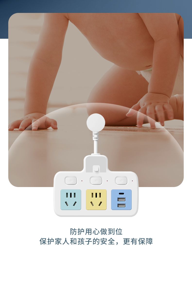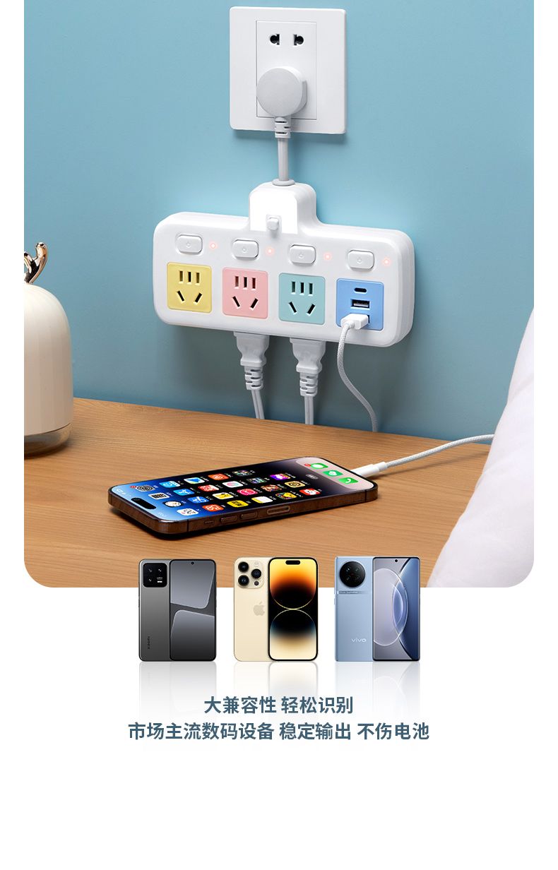 USB多用插座多功能多孔家用转换器带夜灯无线插板贴墙排插接线板
