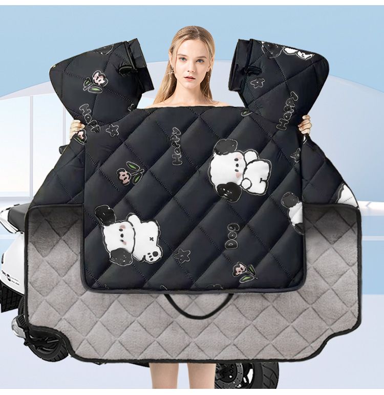 | black double bears + side wing widened + double handle cover + winter fleece-lined + pocket(黑色双熊+侧翼加宽+双把套+冬季加绒+口袋) | USD $5.38 | 999999 piece available |