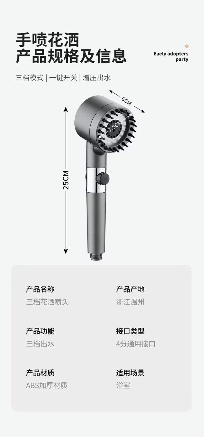 | 增压花洒升级款+免打孔支架 | USD $5.13 | 999999 piece available |