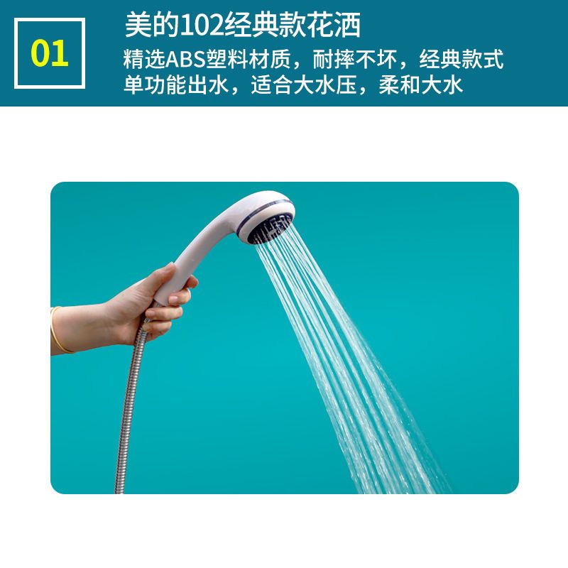 美的通用花洒喷头塑料淋浴花洒浴室工程家庭通用塑料淋浴软管套装
