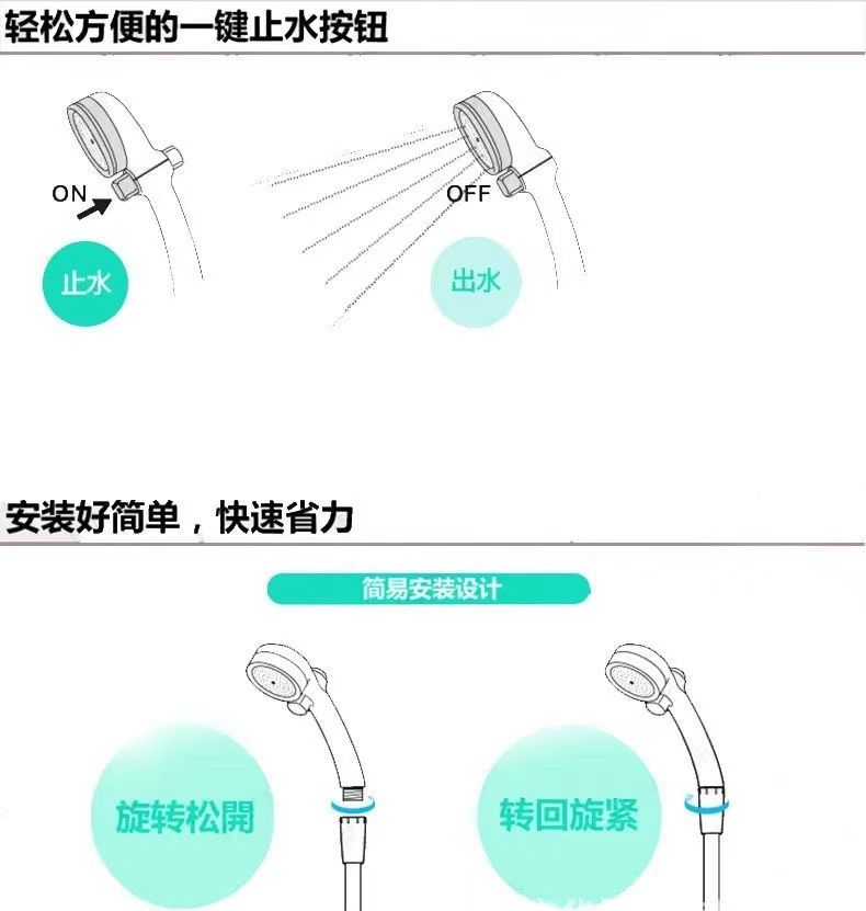 日本精装手持耐摔增压花洒一键止水淋浴淋雨喷头套装家用洗澡通用