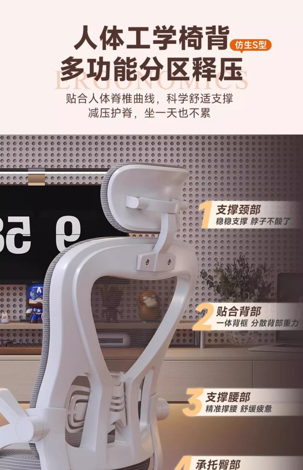 电脑椅家用办公椅舒适久坐学生人体工学椅卧室椅子靠背升降电竞椅