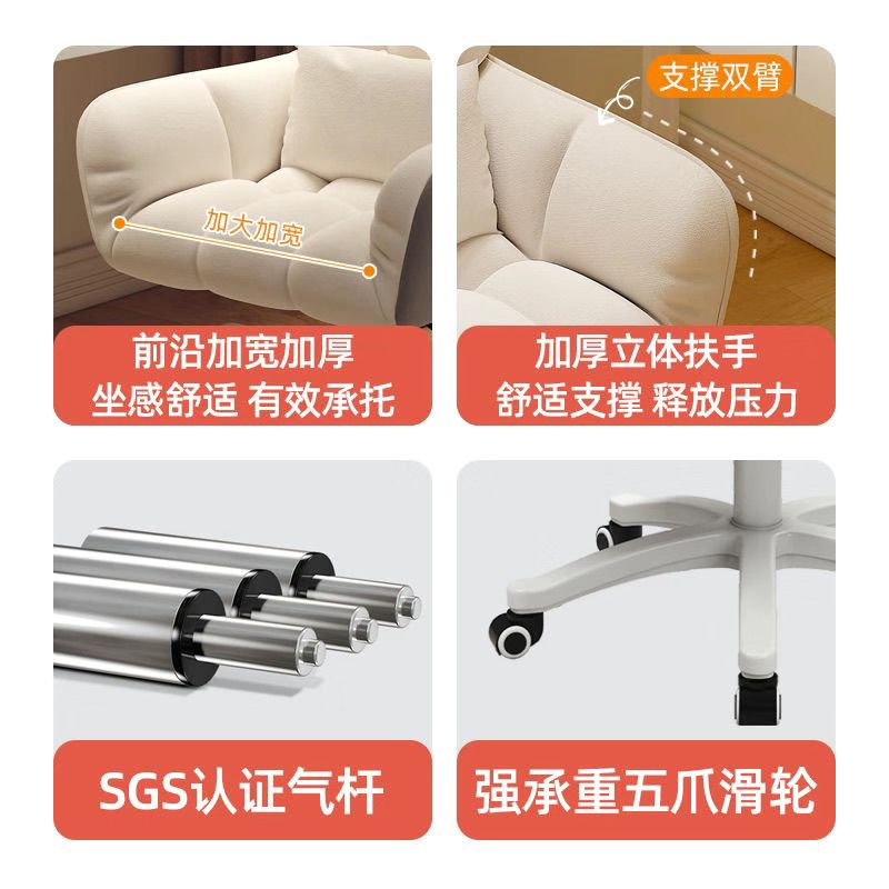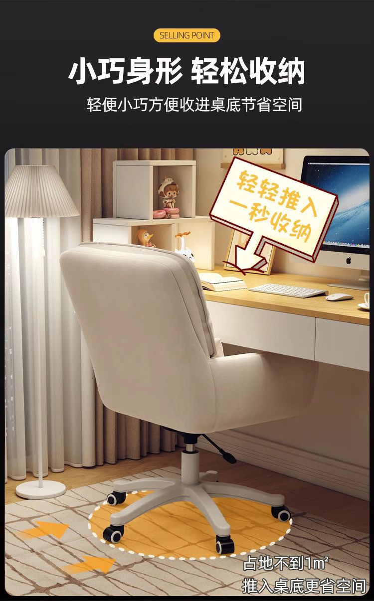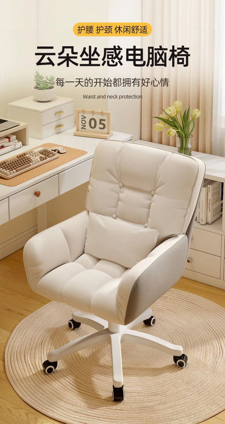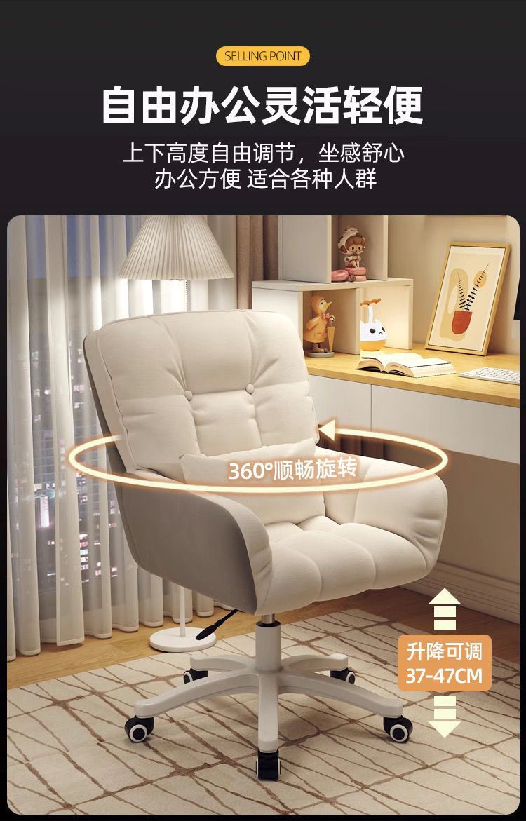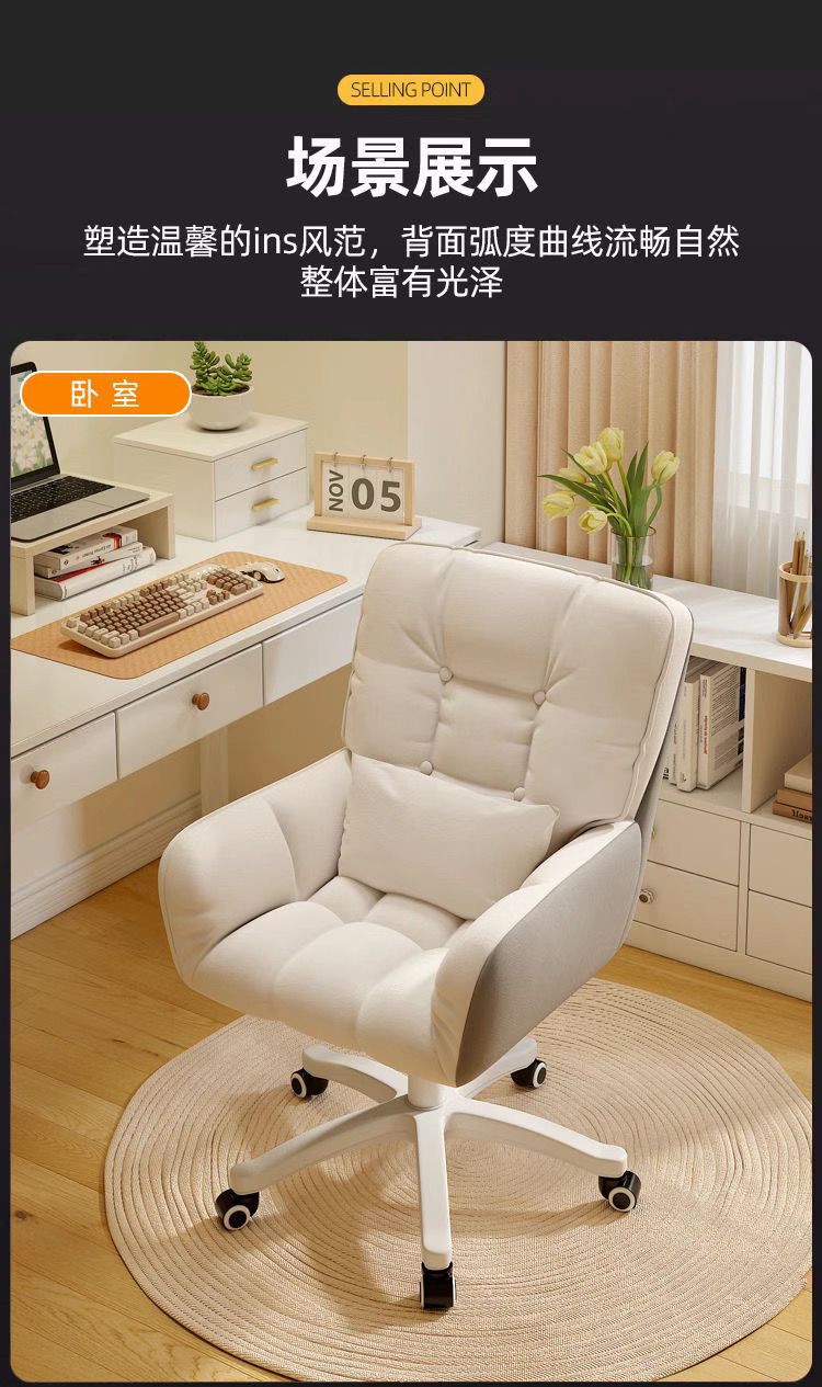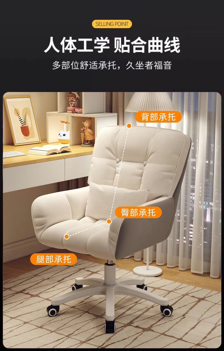 电脑舒适久坐椅子宿舍大学生学习家用书房靠背椅女生寝室懒人转椅