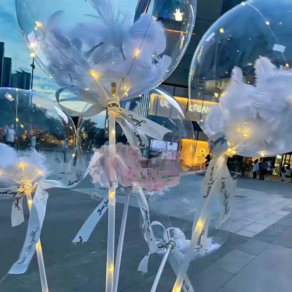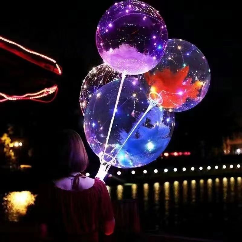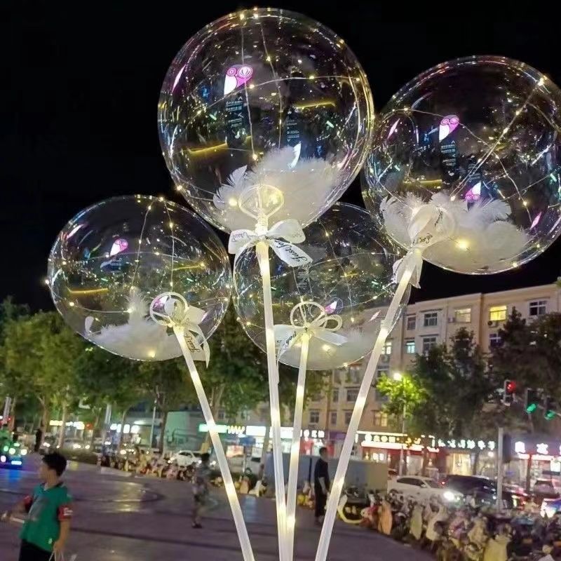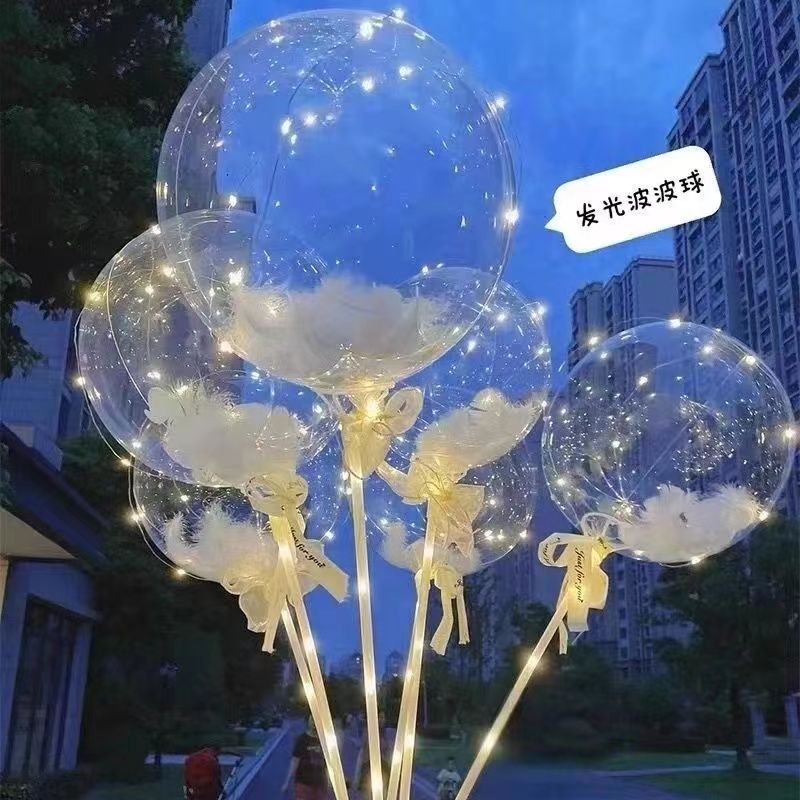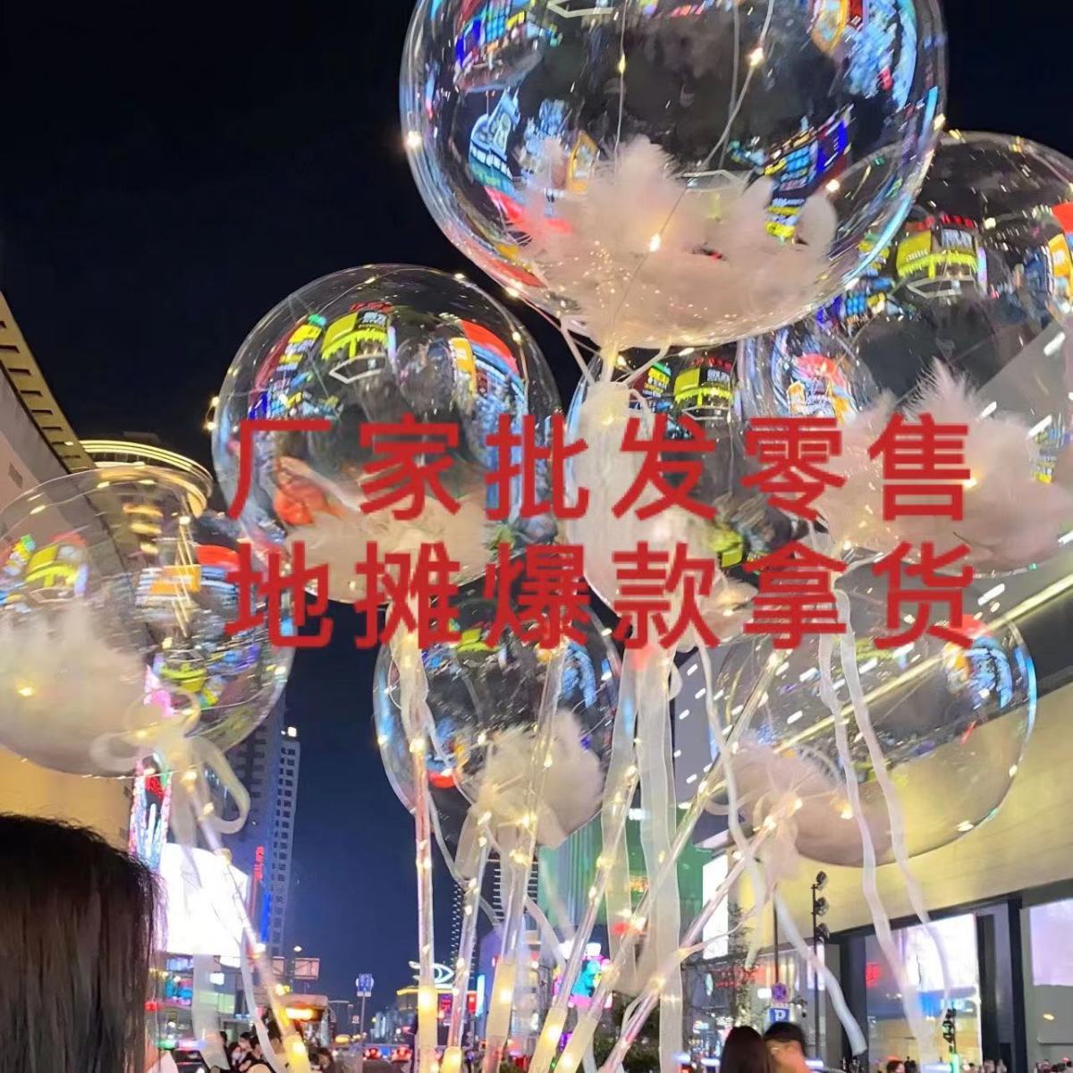 【地摊爆款】羽毛带灯透明波波球发光气球批发街卖摆摊卡通波波球