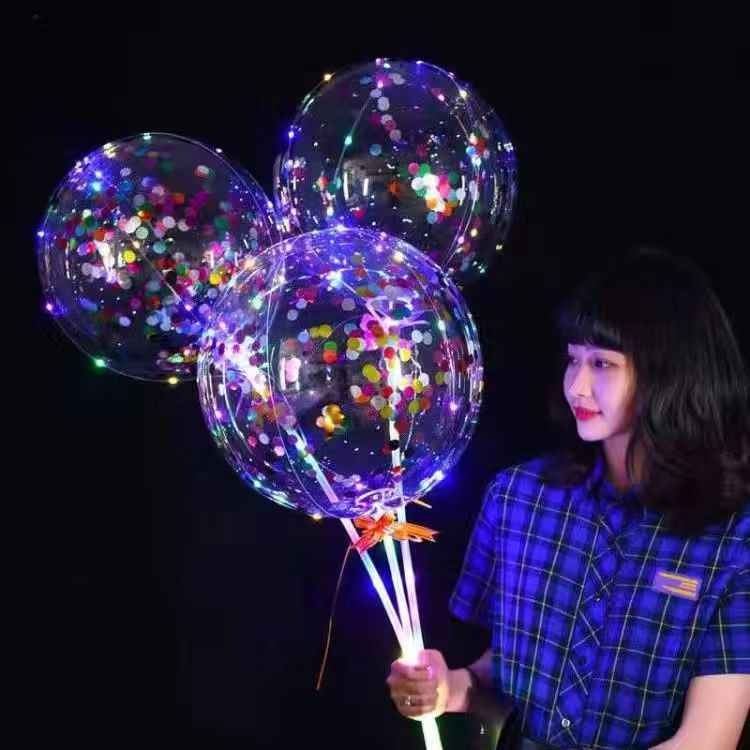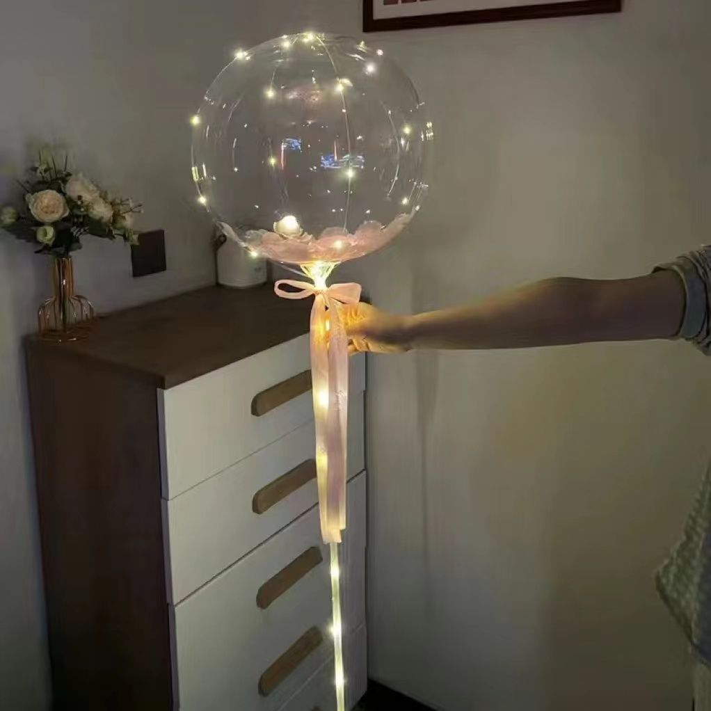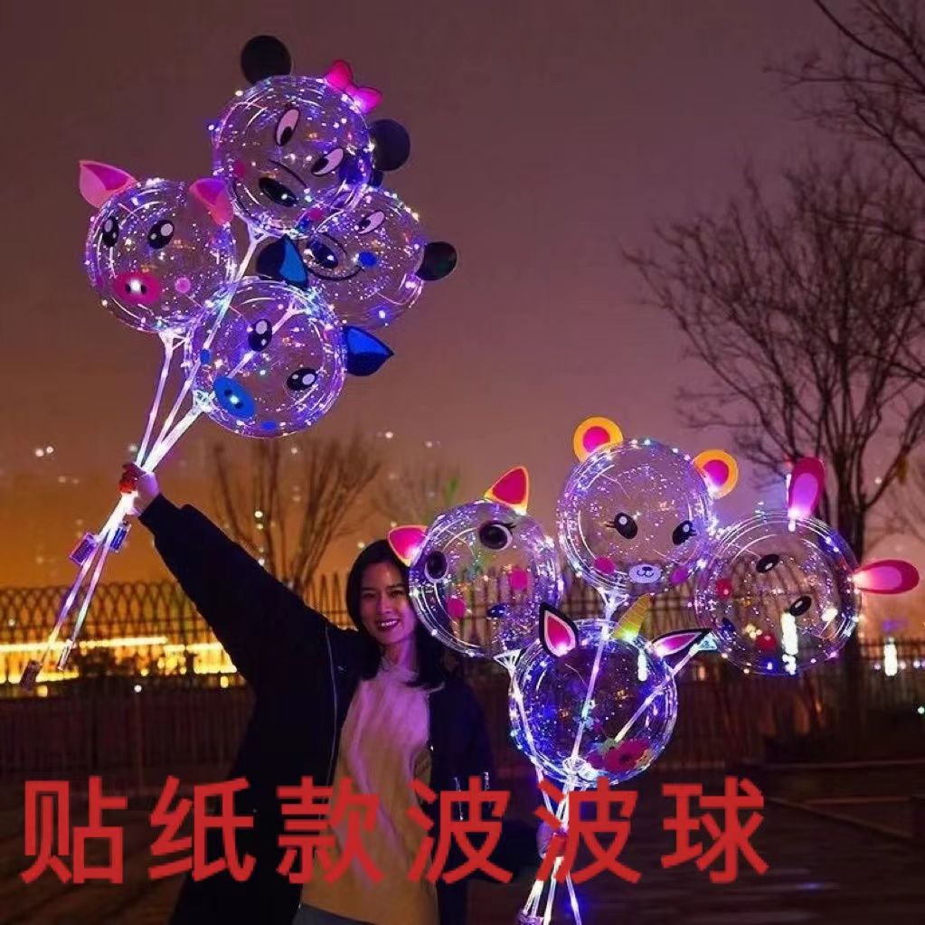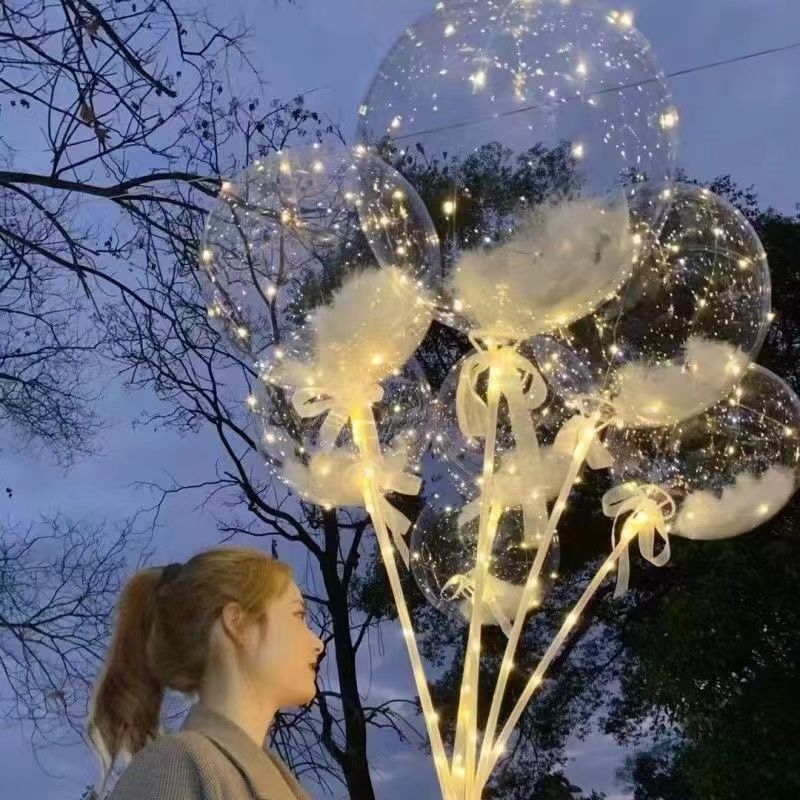 【地摊爆款】羽毛带灯透明波波球发光气球批发街卖摆摊卡通波波球