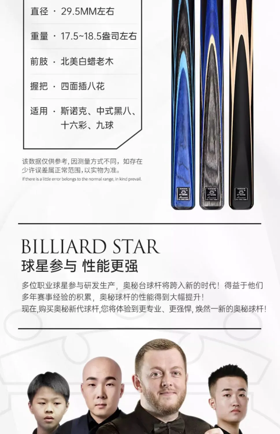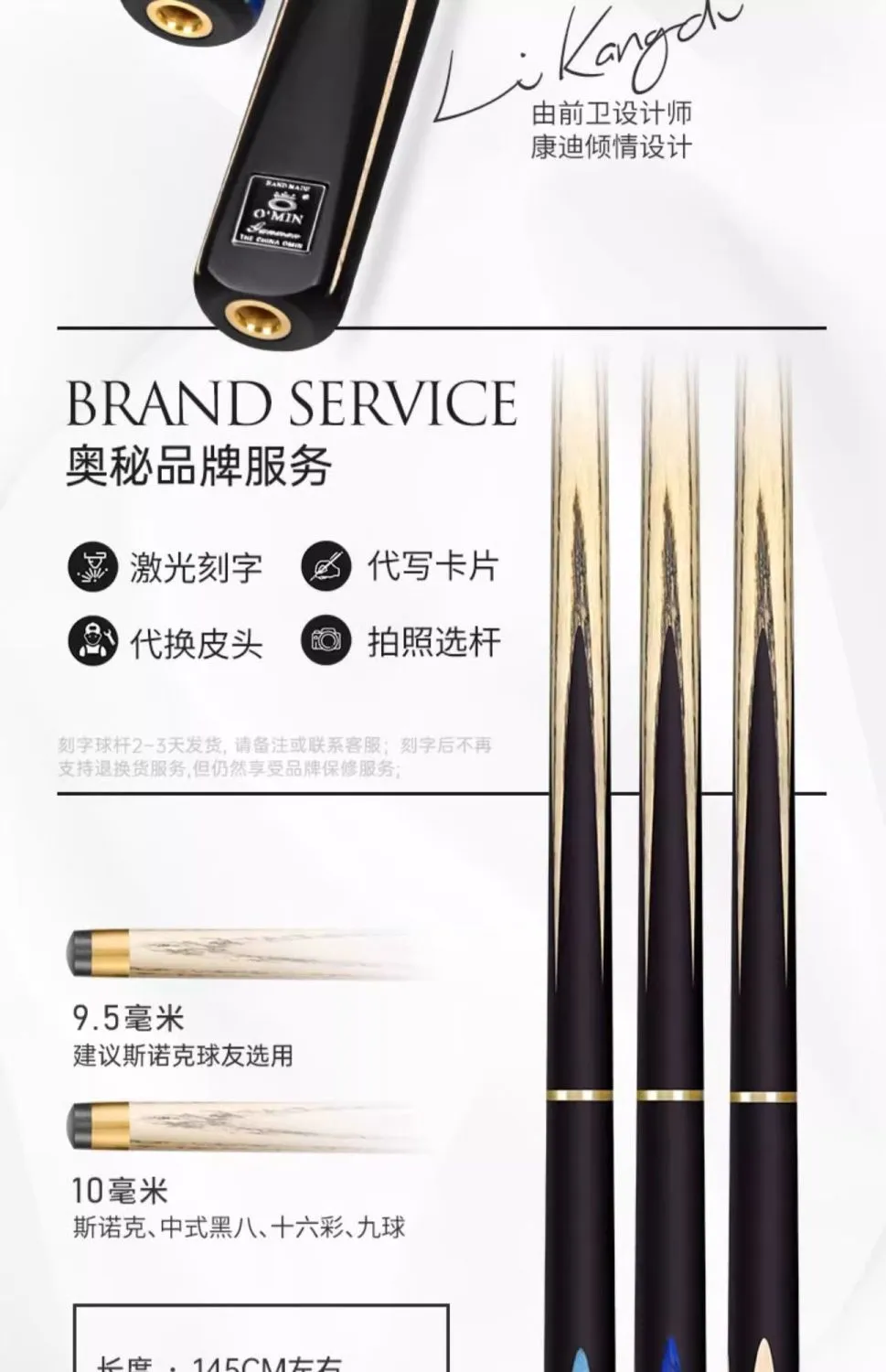 【官方正品】奥秘枪手台球杆小头斯诺克球杆中式黑八球杆桌球杆