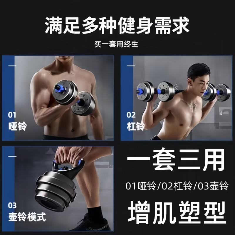 哑铃男士健身家用器材壶铃杠铃亚玲一对多用可调解重量哑铃套装