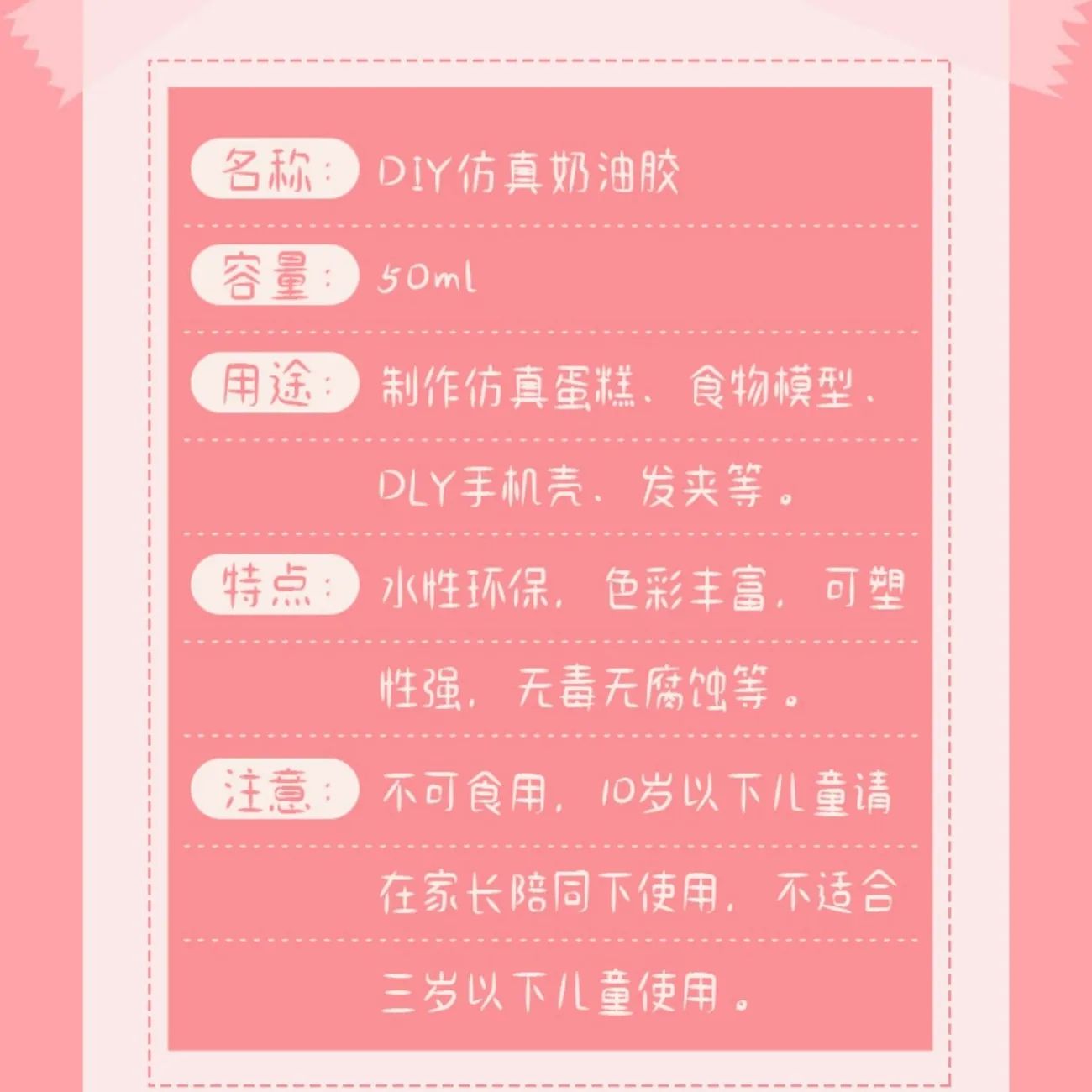 | 奶油胶50ml【送裱花嘴】 | USD $3.6 | 999999 piece available |