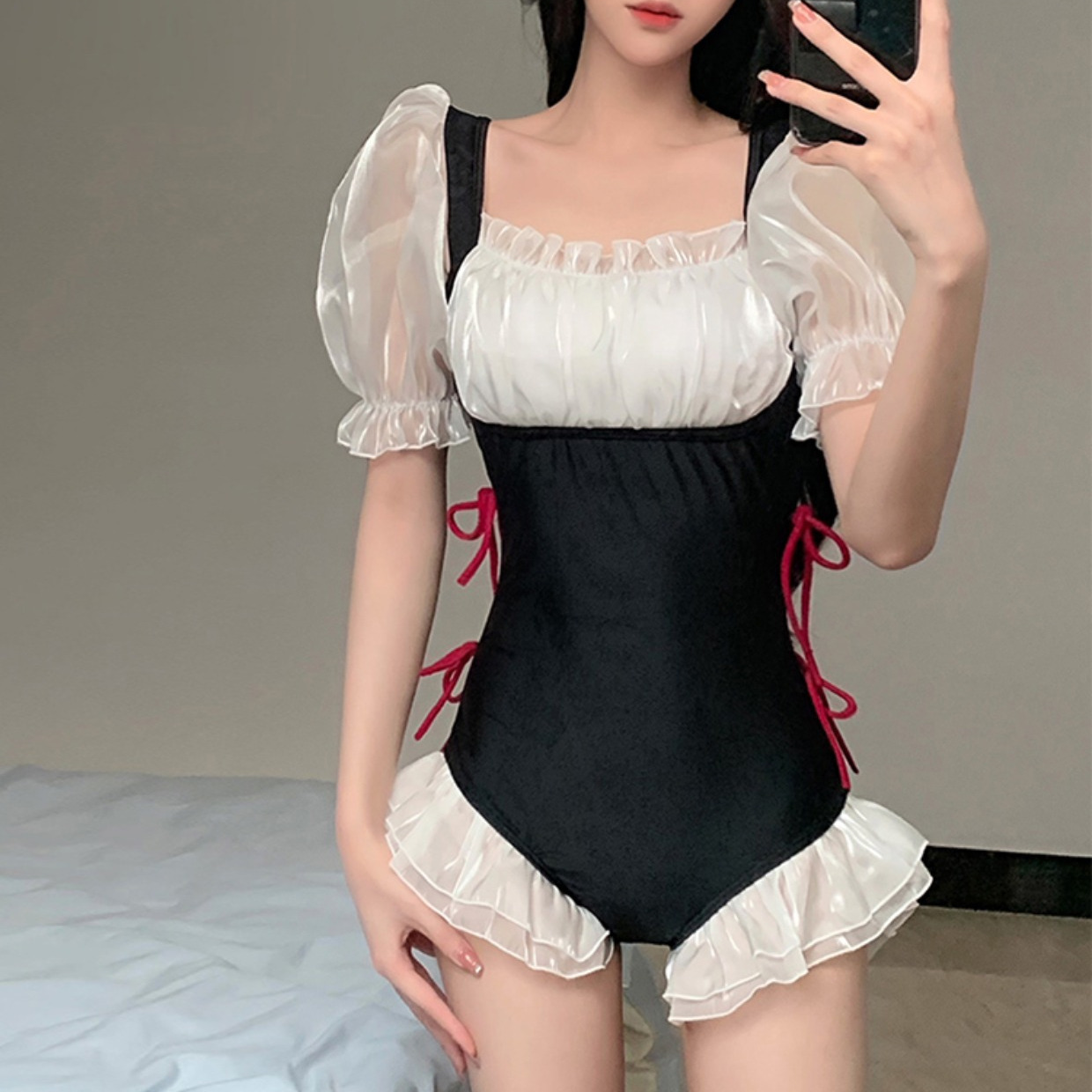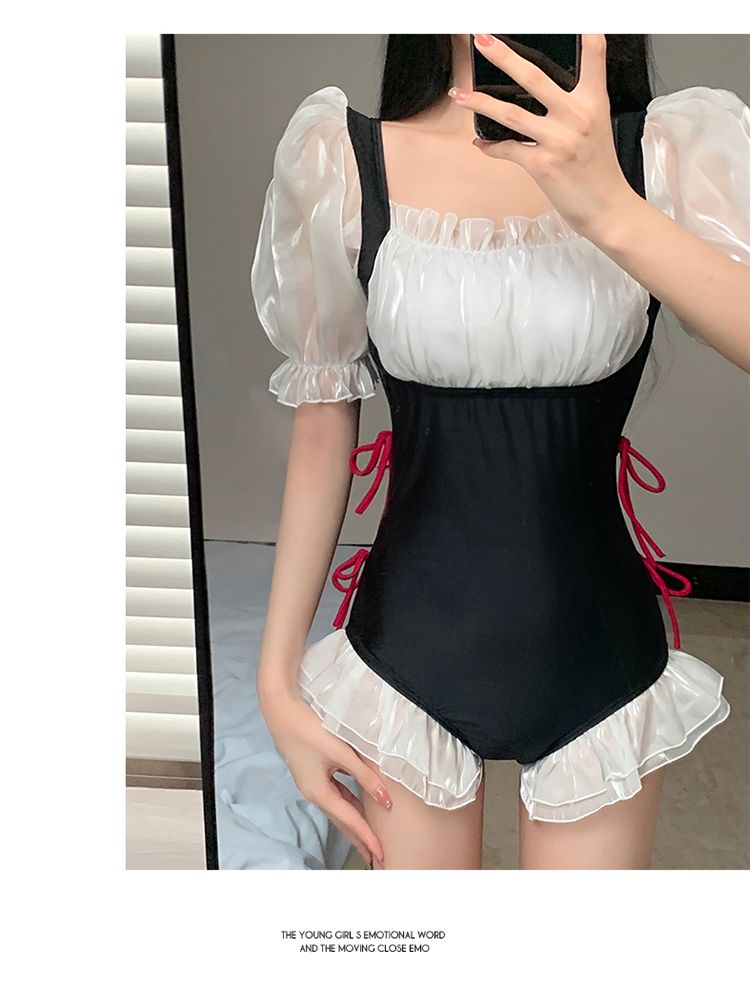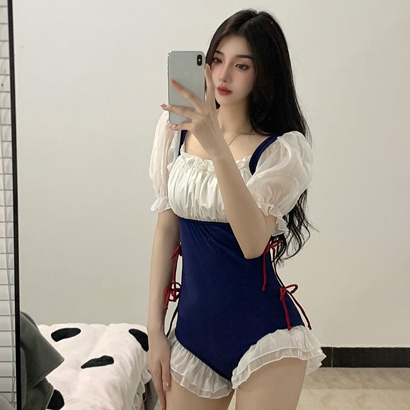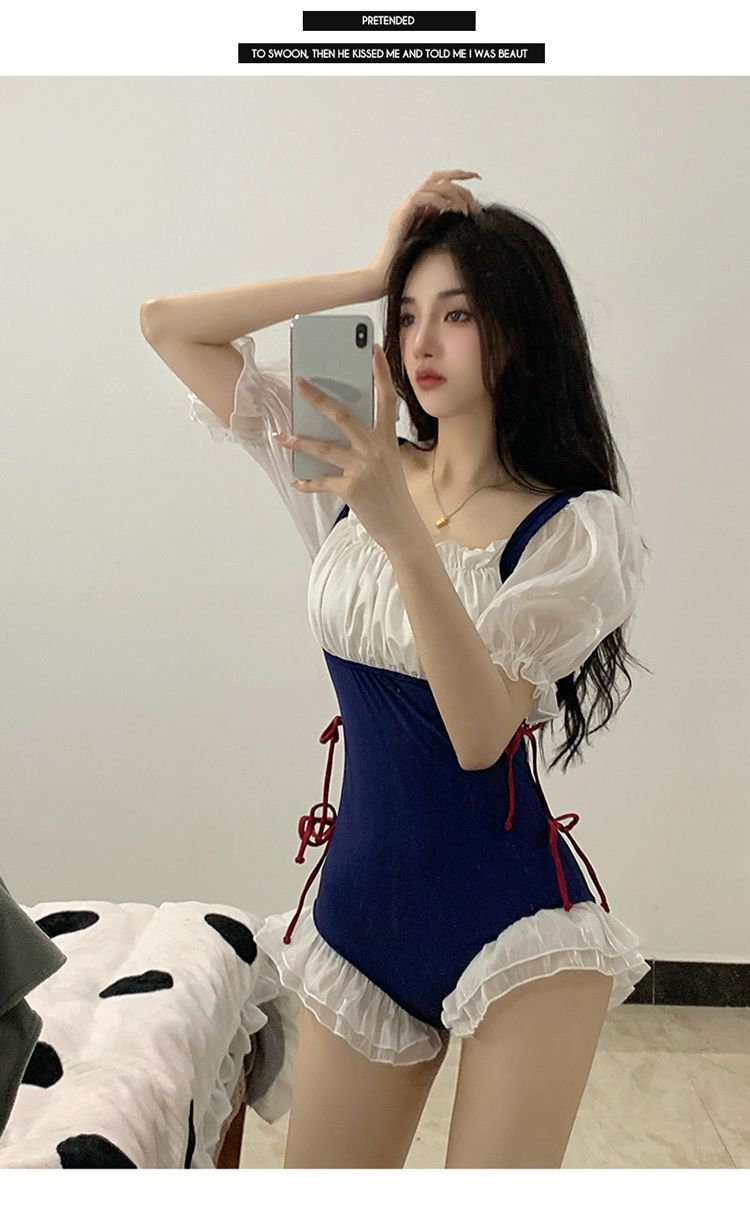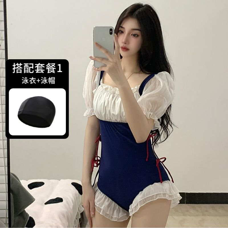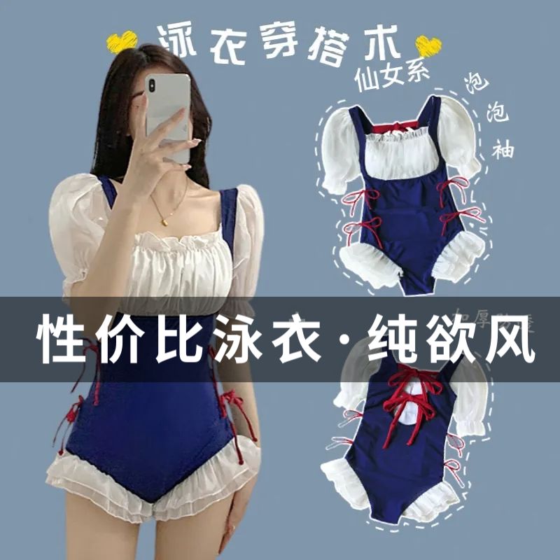 爆泳衣女夏2024新款连体遮肚显瘦可爱日系纯欲风学生少女温泉泳装