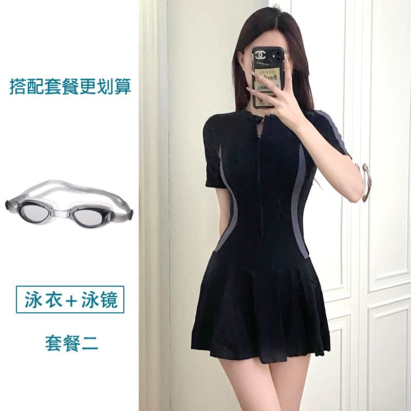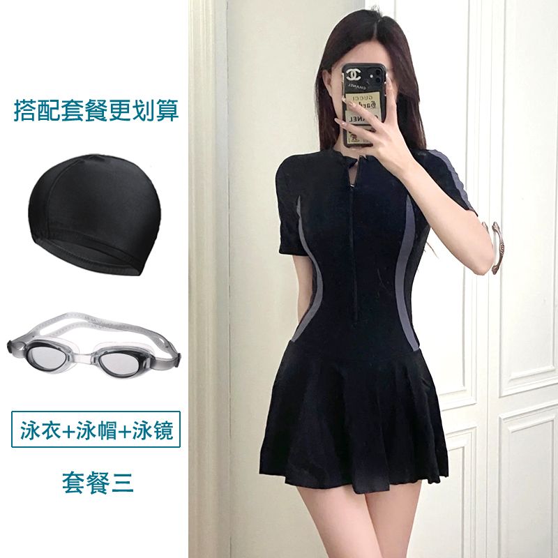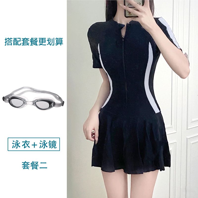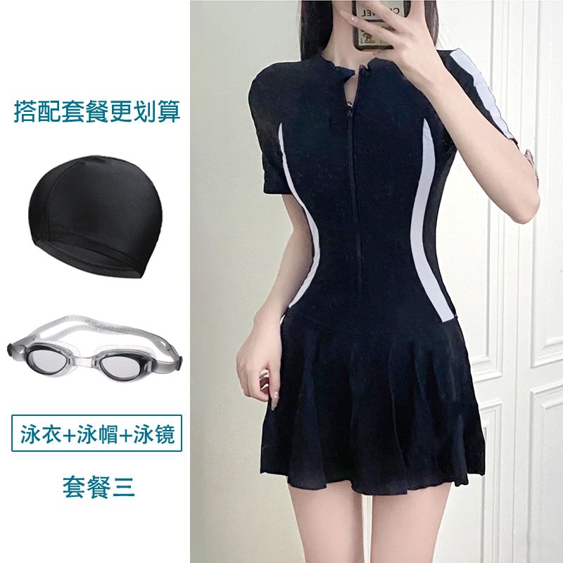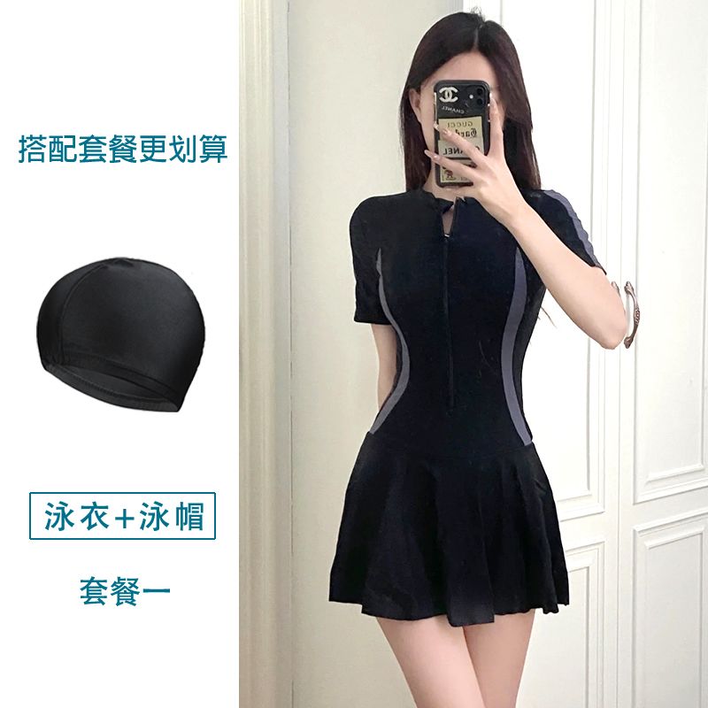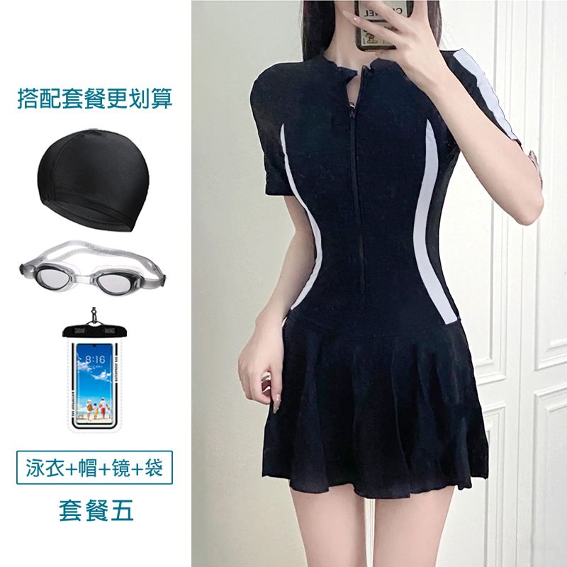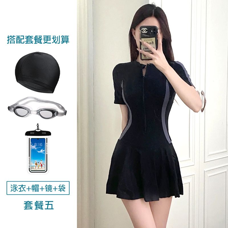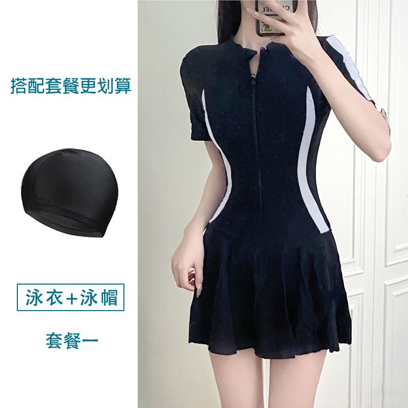 大码运动游泳衣女士温泉保守连体超仙ins风遮肚显瘦学生小清新胖m
