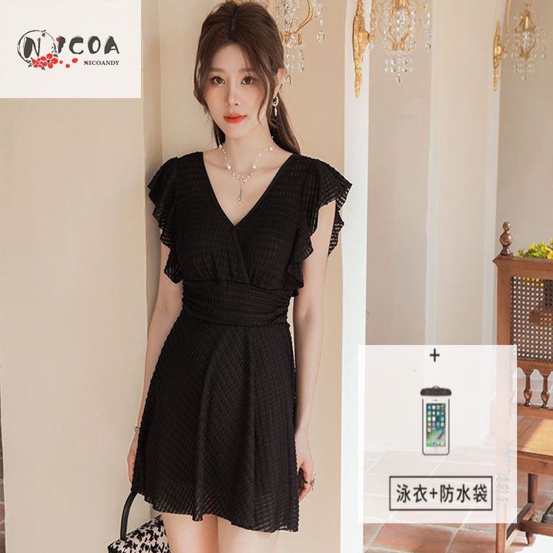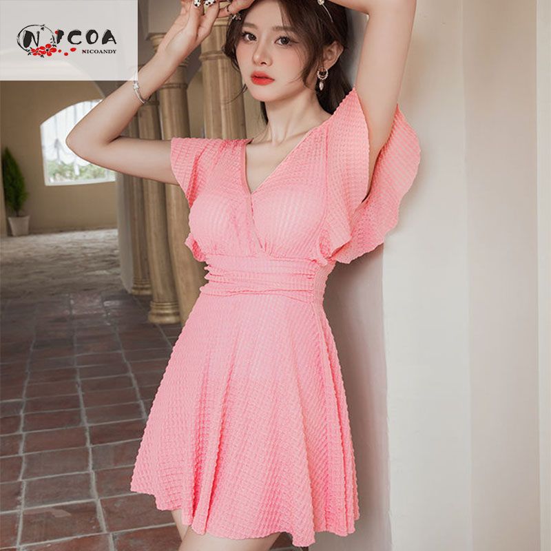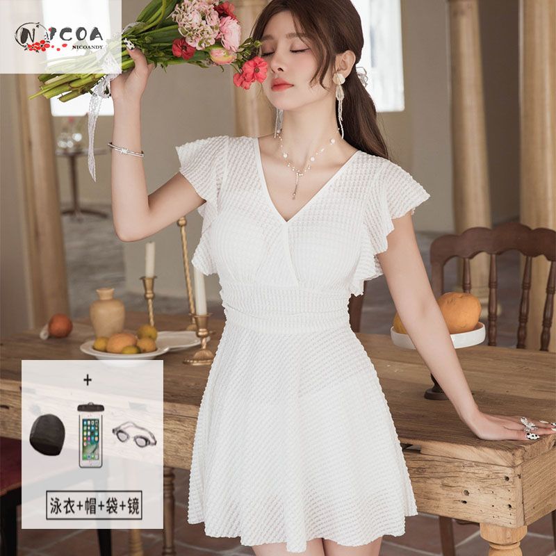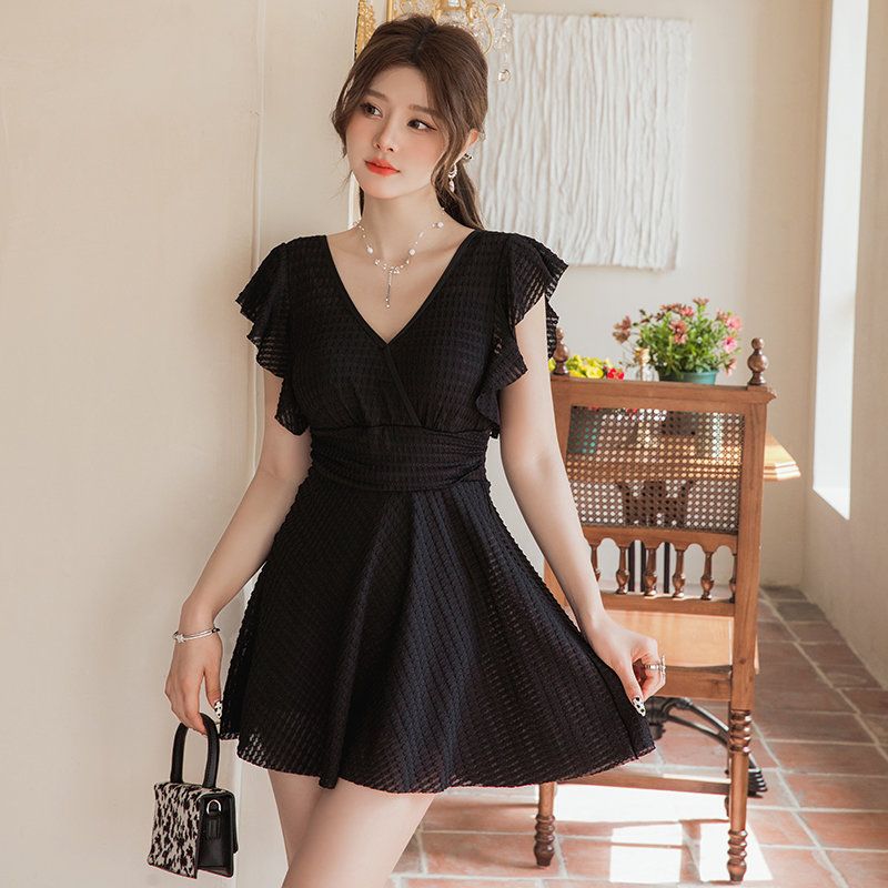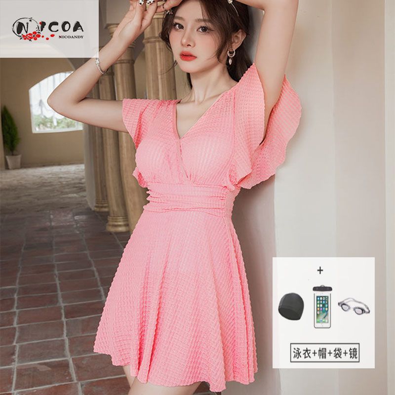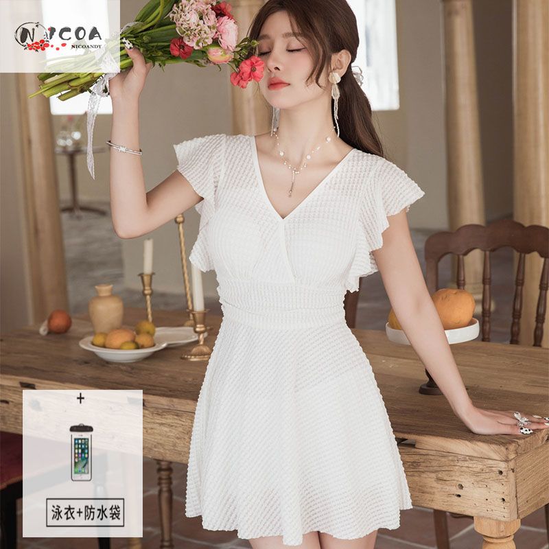 连体泳衣时尚专业纯欲风可爱带胸垫镂空显瘦聚胸沙滩度假学生泳装