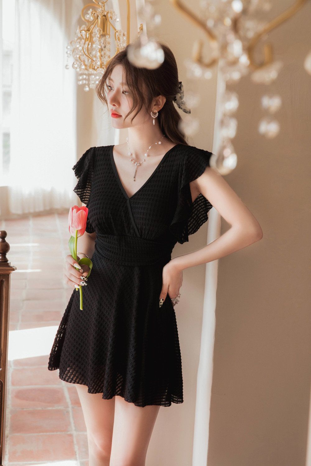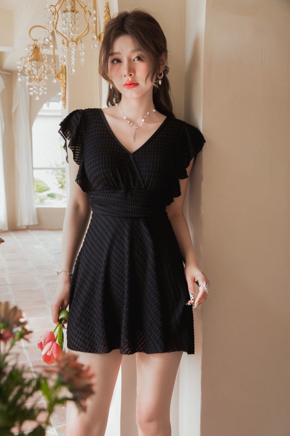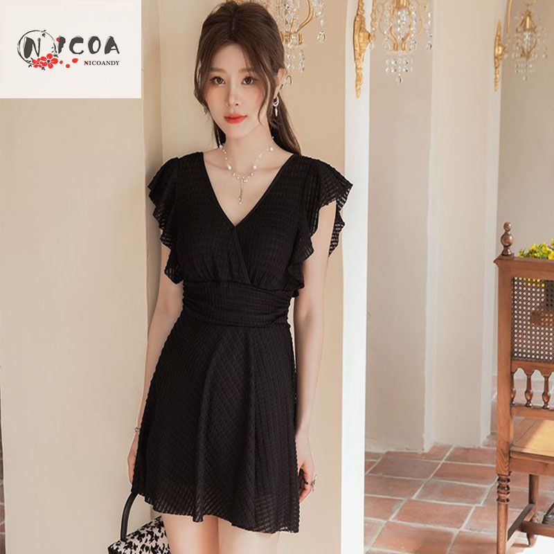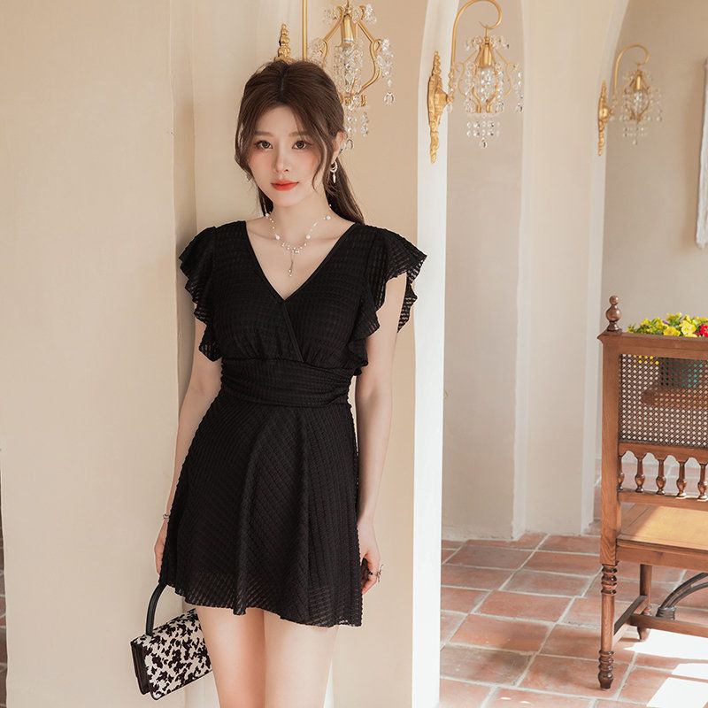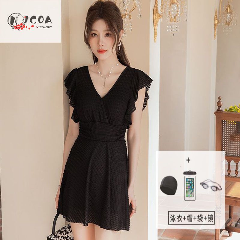 连体泳衣时尚专业纯欲风可爱带胸垫镂空显瘦聚胸沙滩度假学生泳装