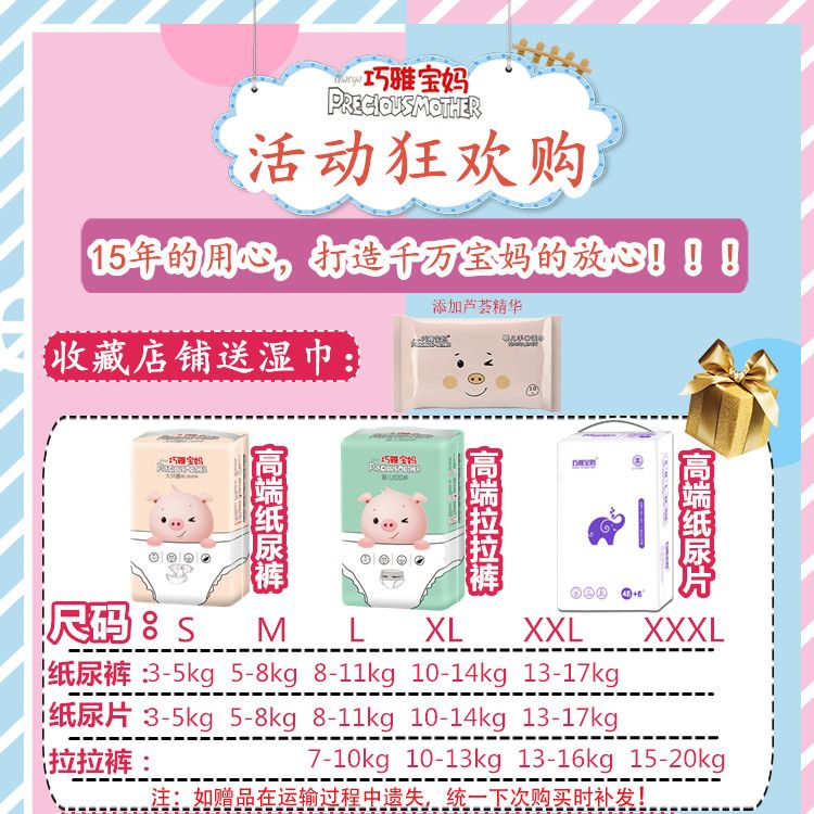 正品巧雅宝妈纸尿裤婴儿绵柔尿不湿拉拉裤超薄透气纸尿片SMLXLXXL