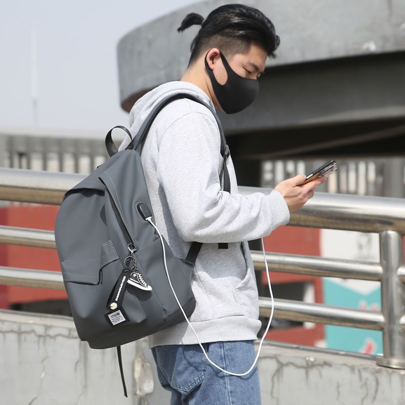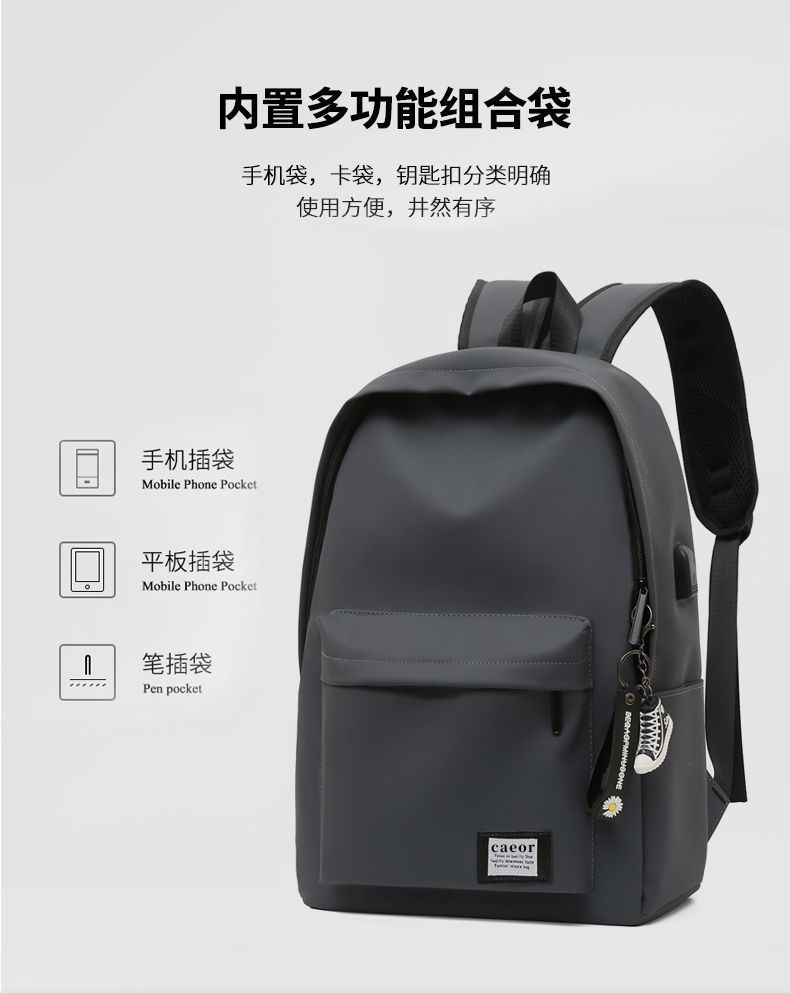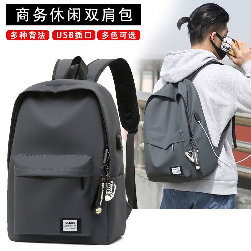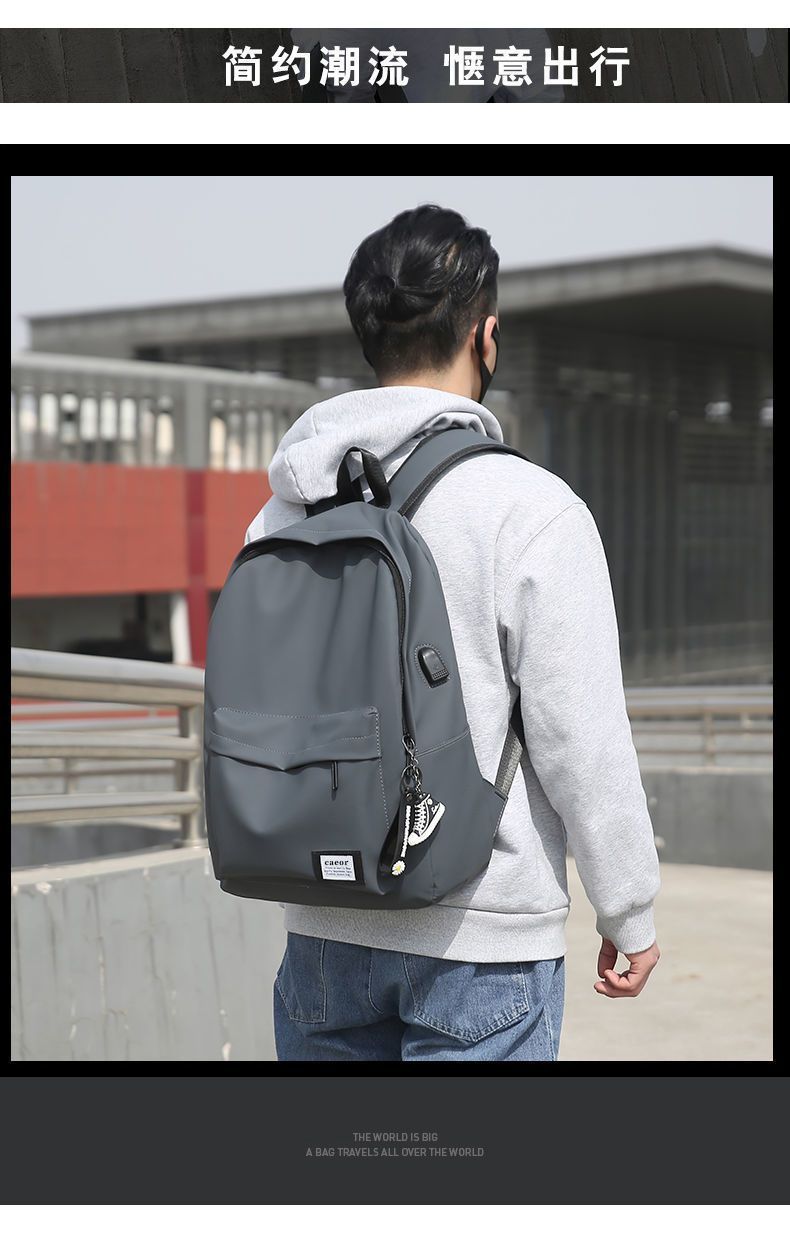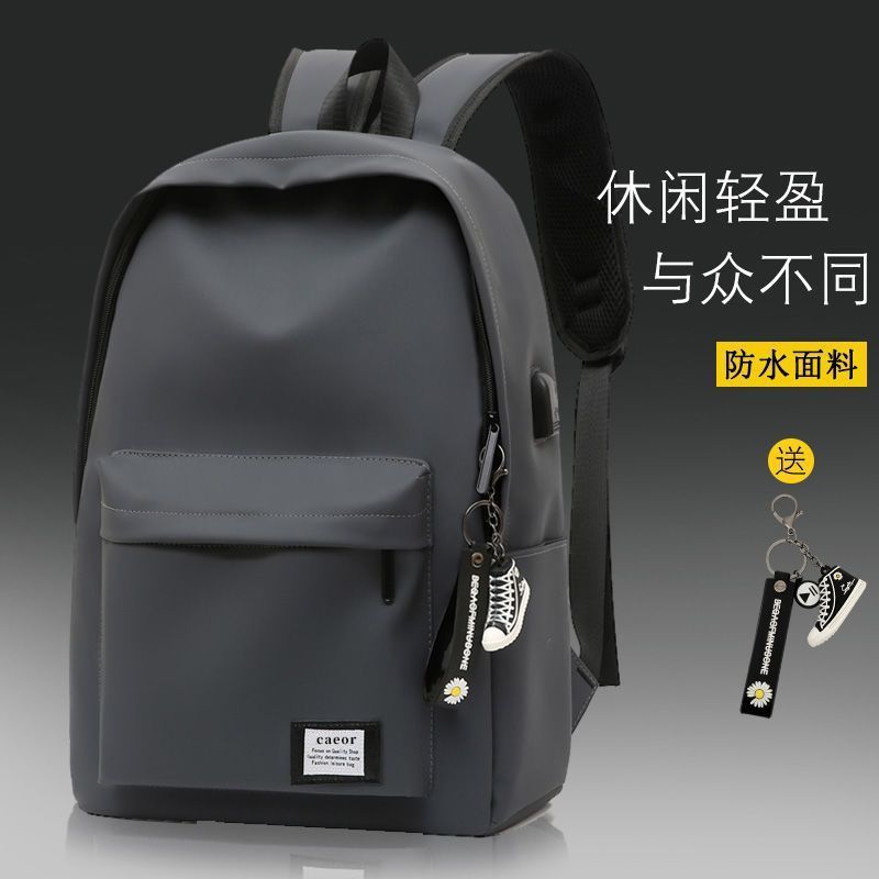 防水休闲书包男简约双肩包男韩版背包男潮大容量中学生书包旅行包