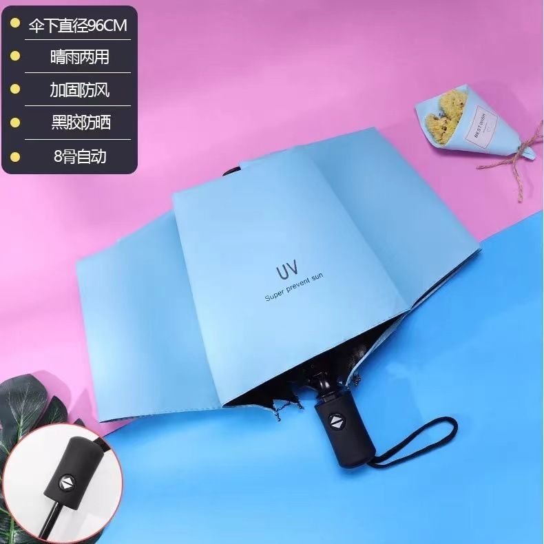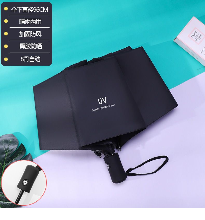 UV黑胶防晒太阳伞折叠晴雨两用广告礼品全黑胶雨伞