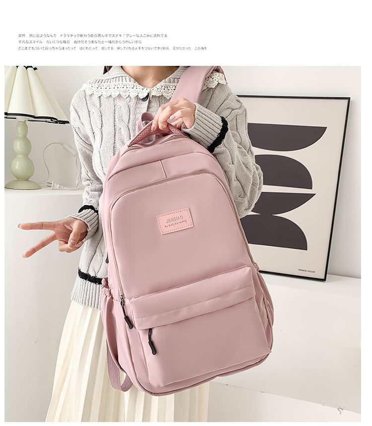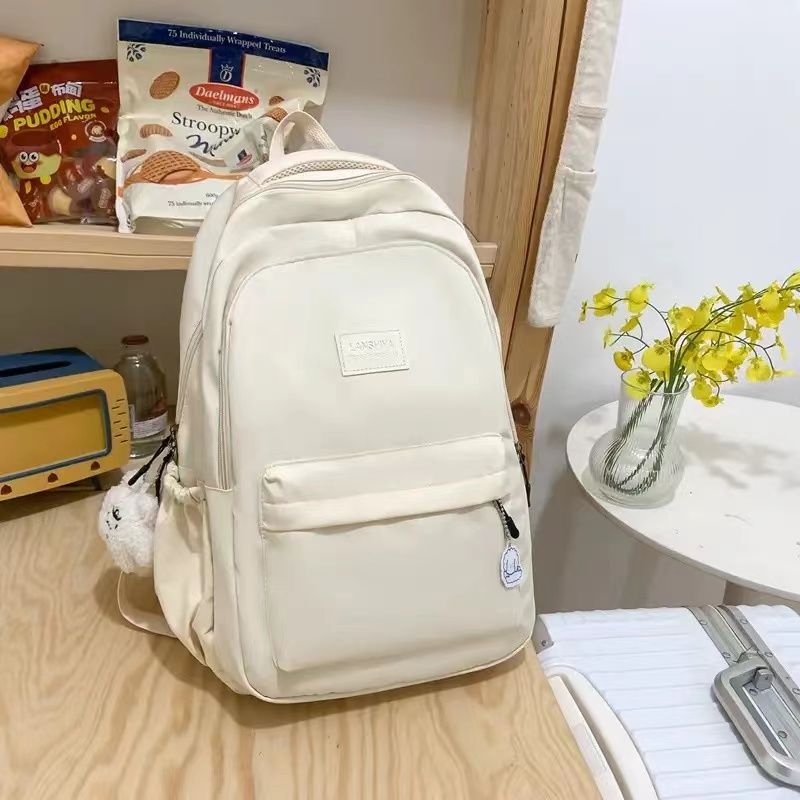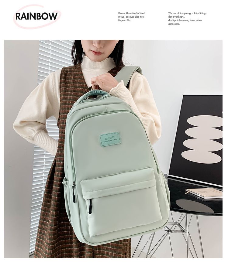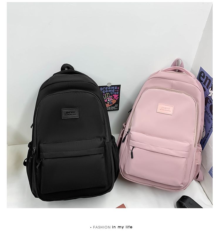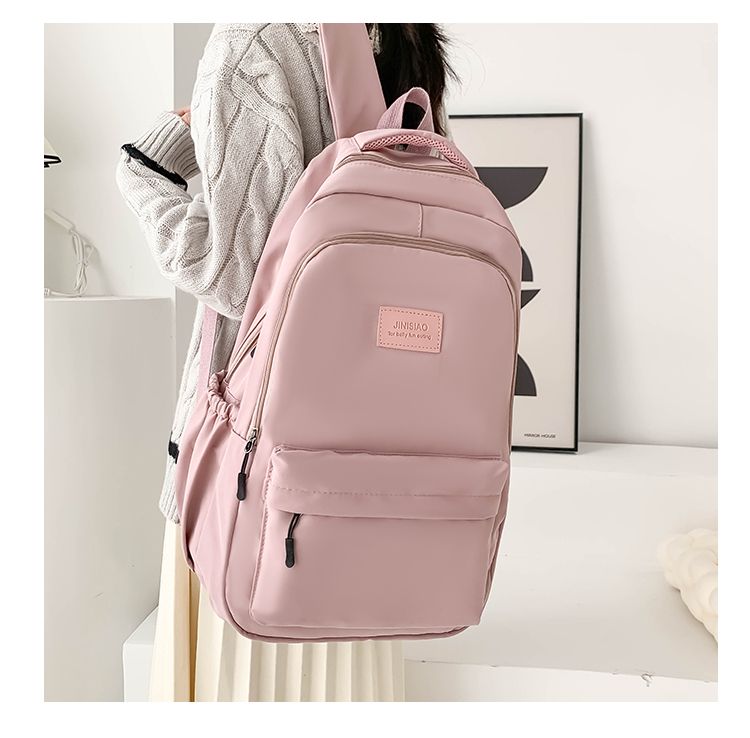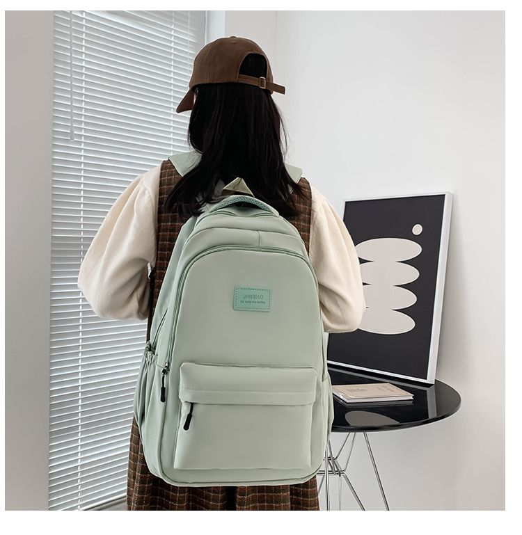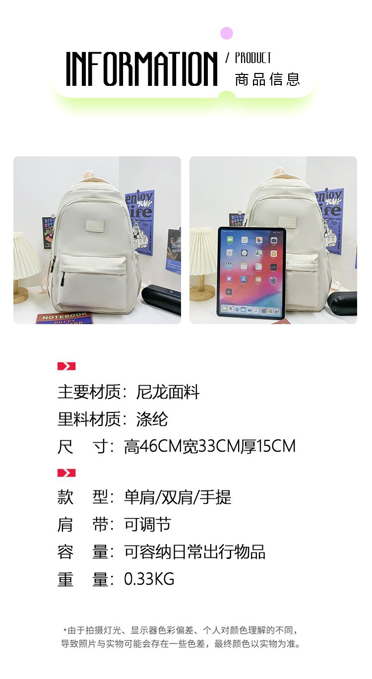 简约百搭ins校园风双肩包女 纯色大容量高中学生书包旅行电脑背包
