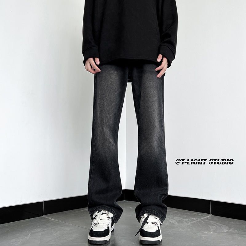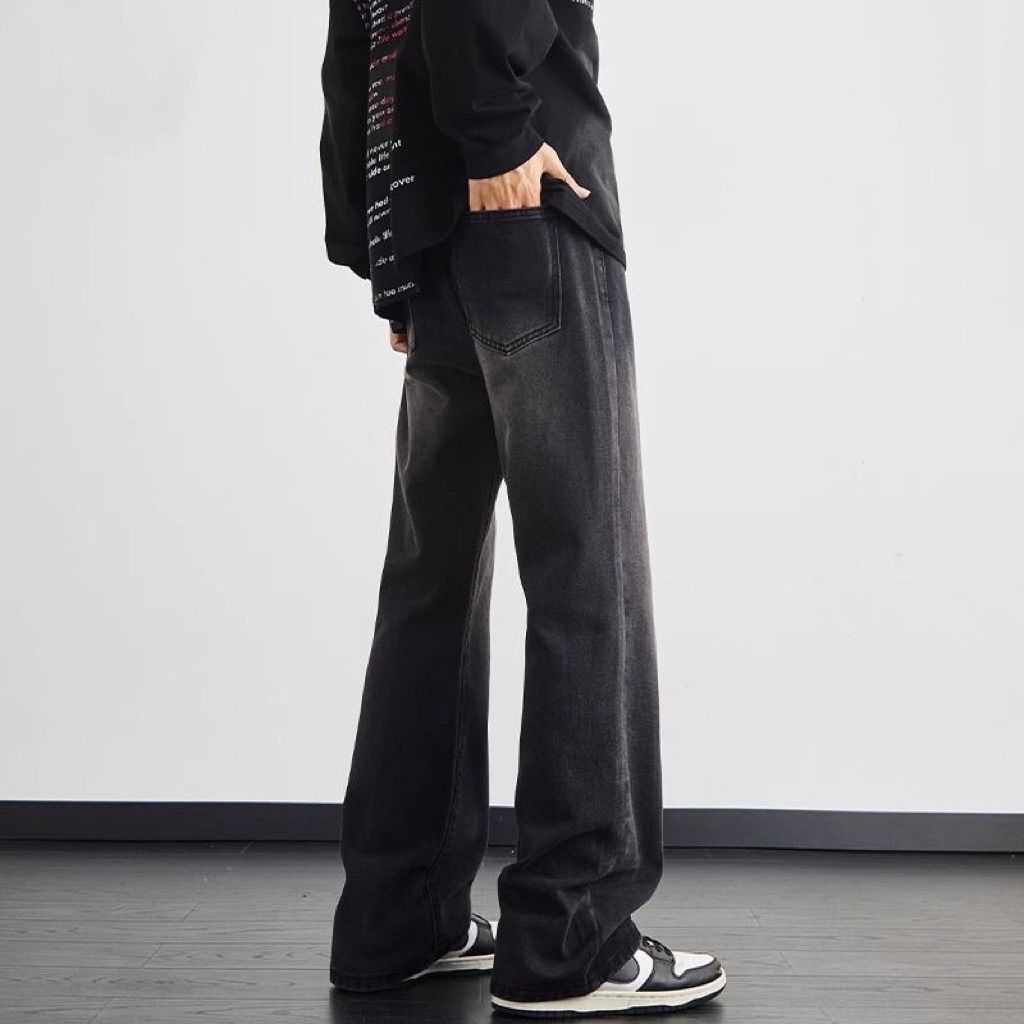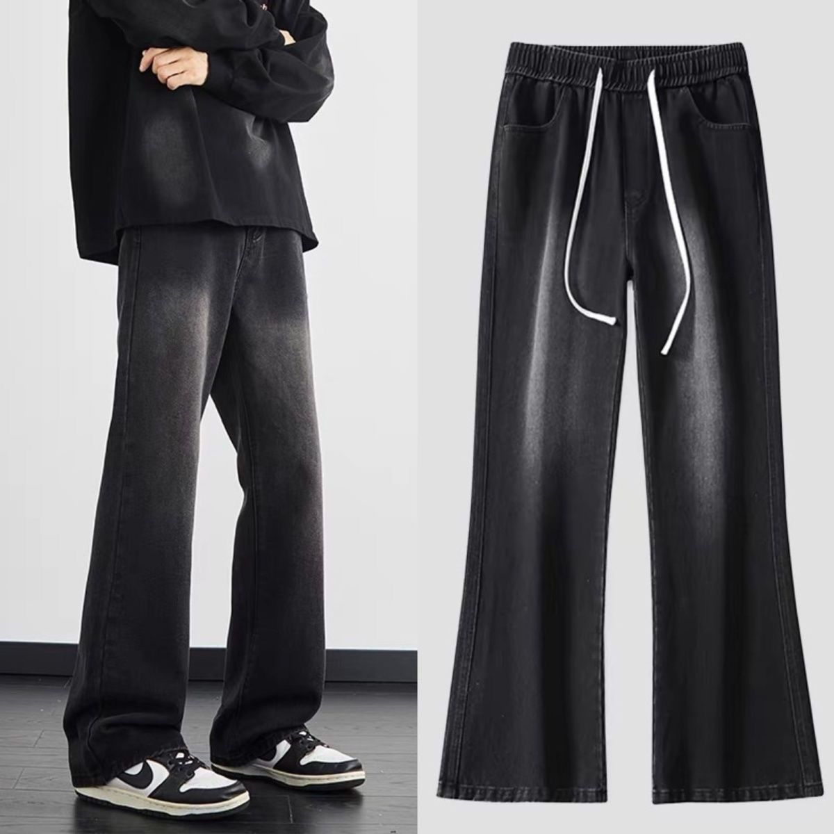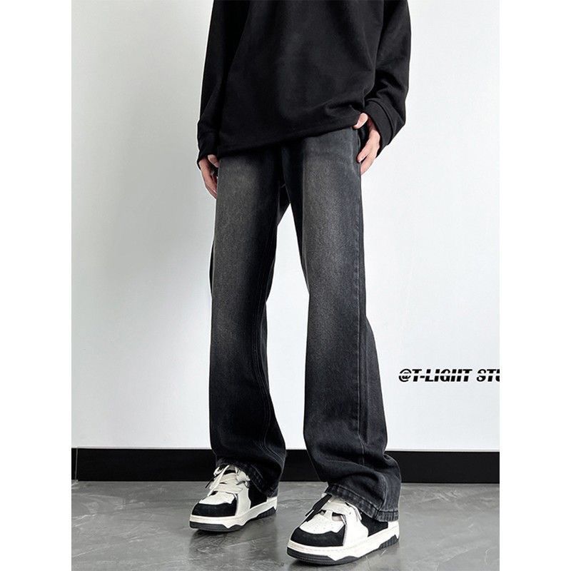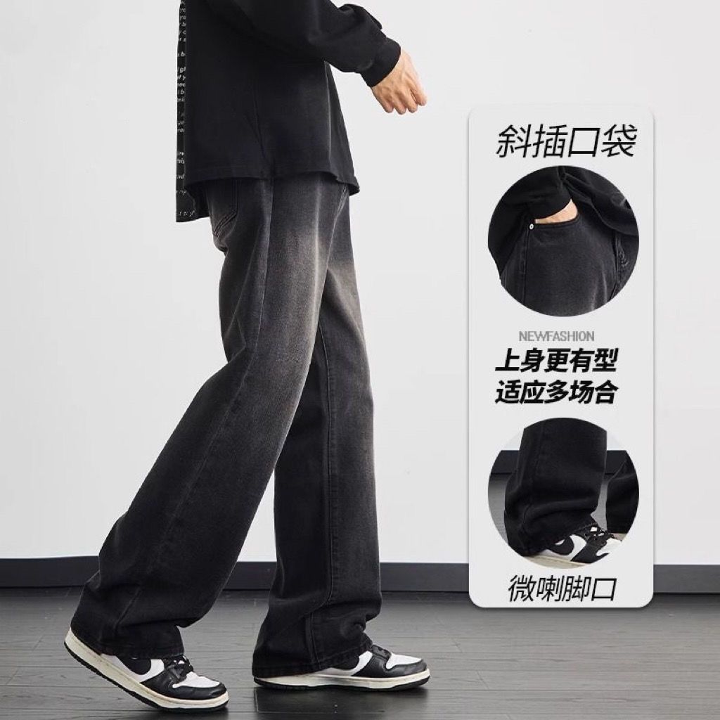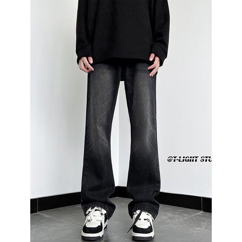 黑灰色微喇牛仔裤男直筒修身秋冬新款美式高街vibe百搭潮流长裤子