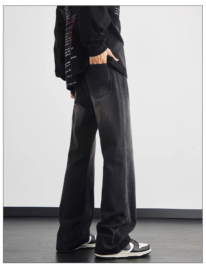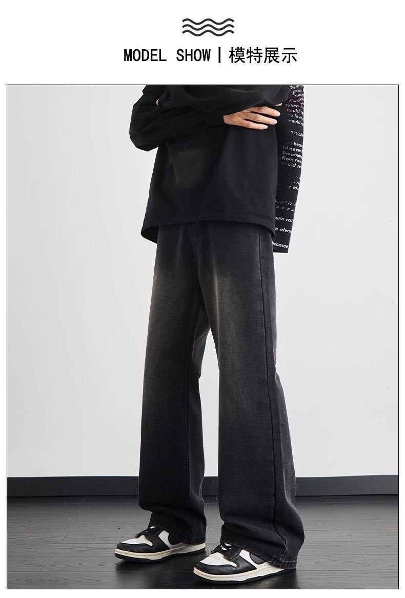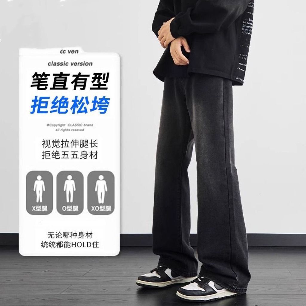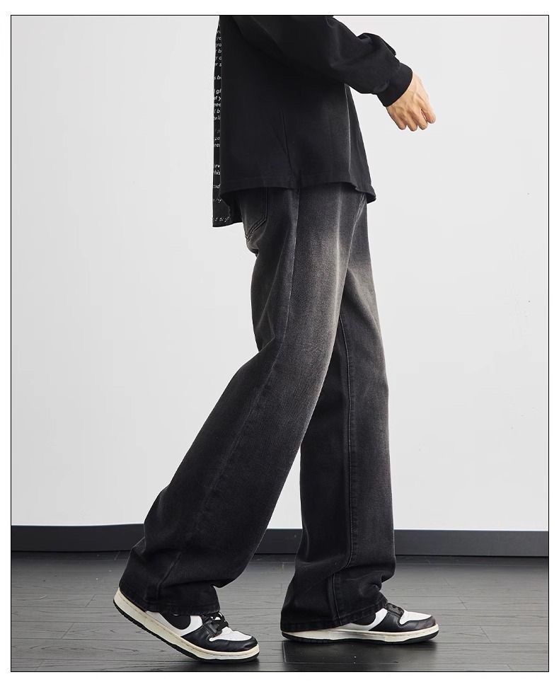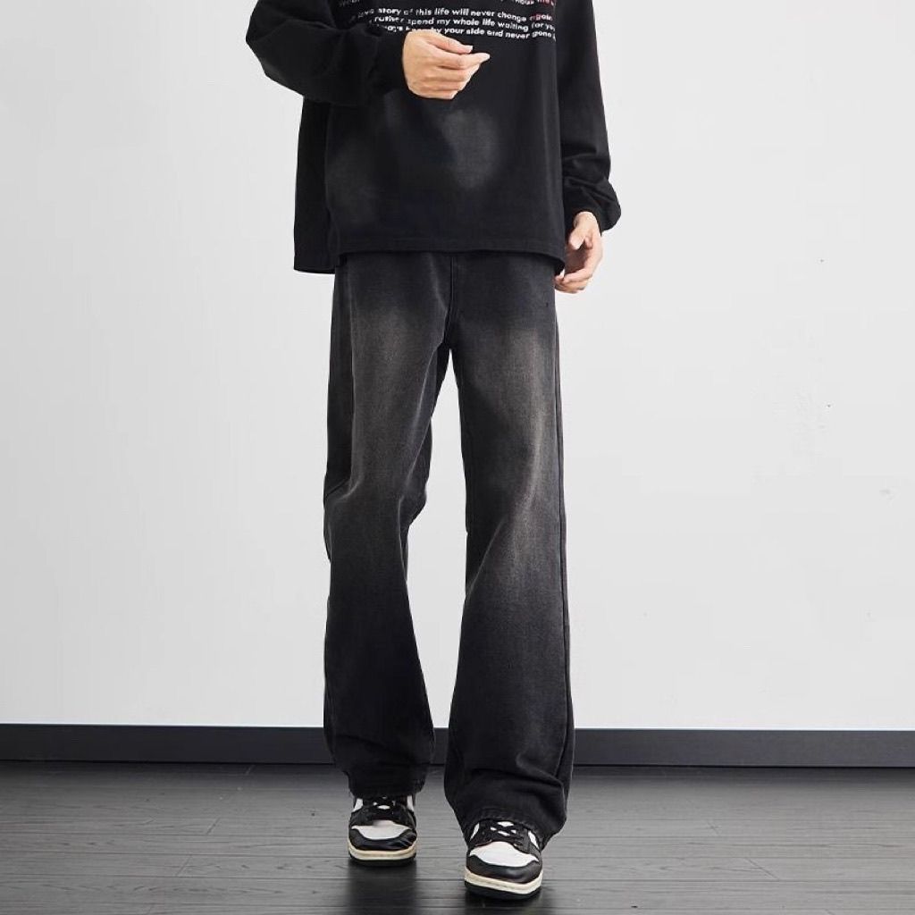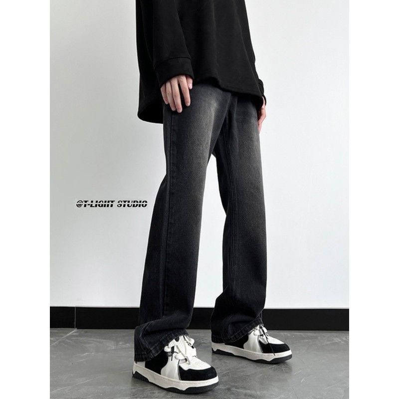 黑灰色微喇牛仔裤男直筒修身秋冬新款美式高街vibe百搭潮流长裤子